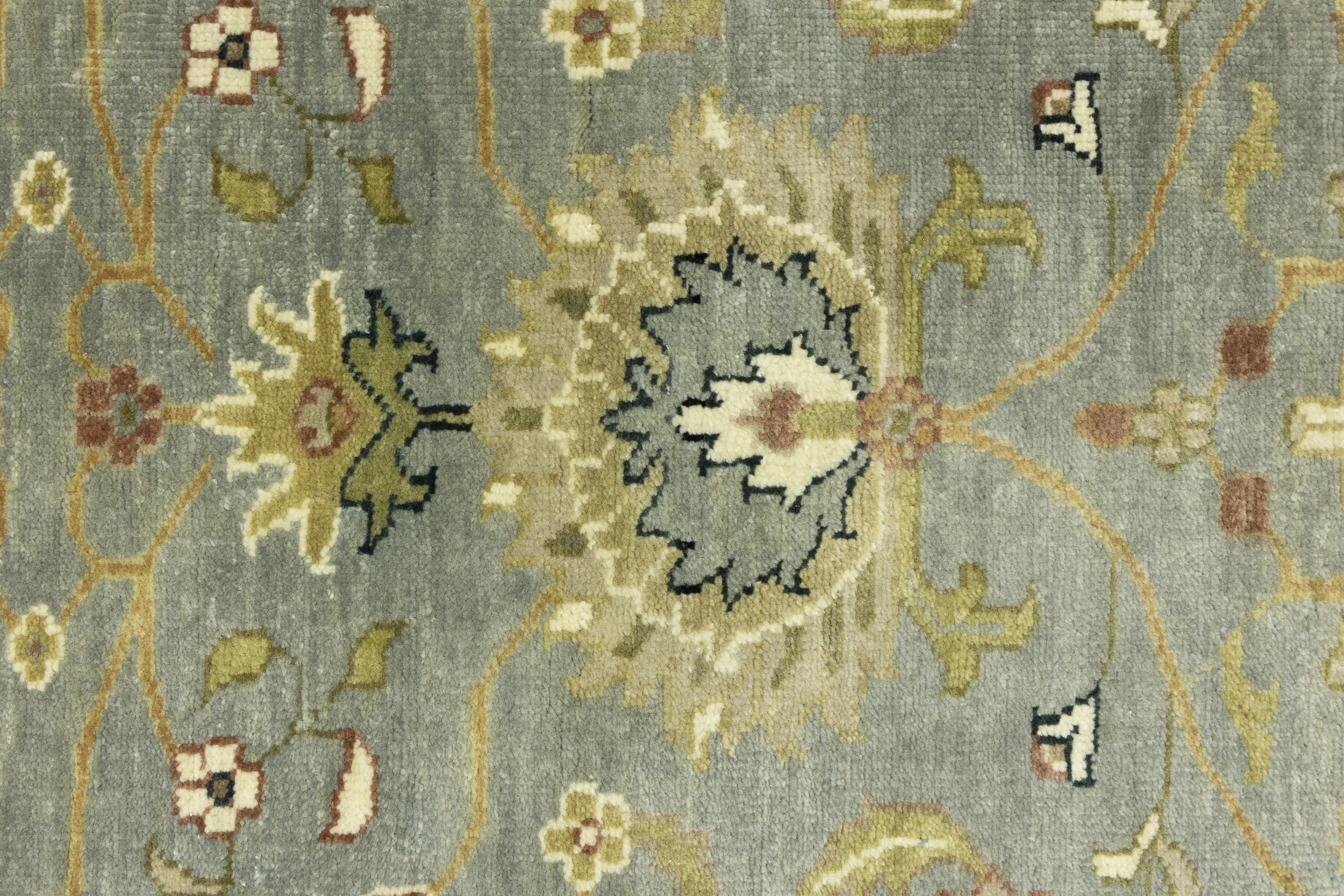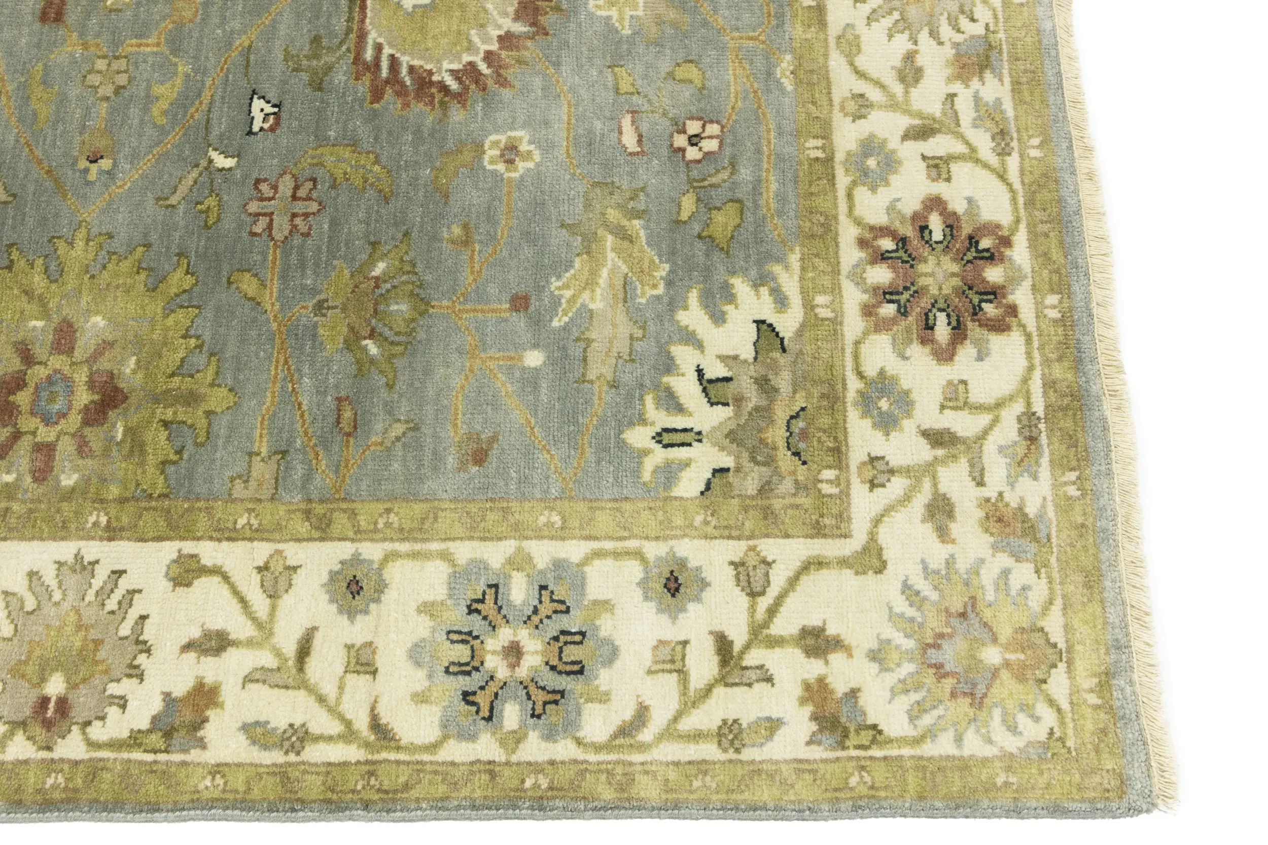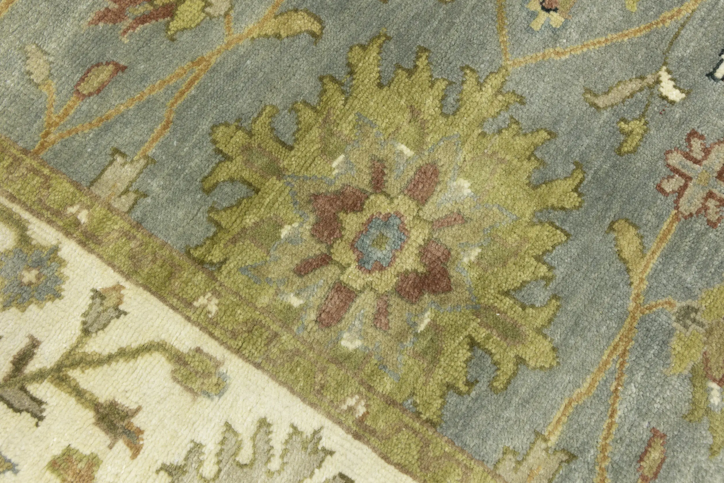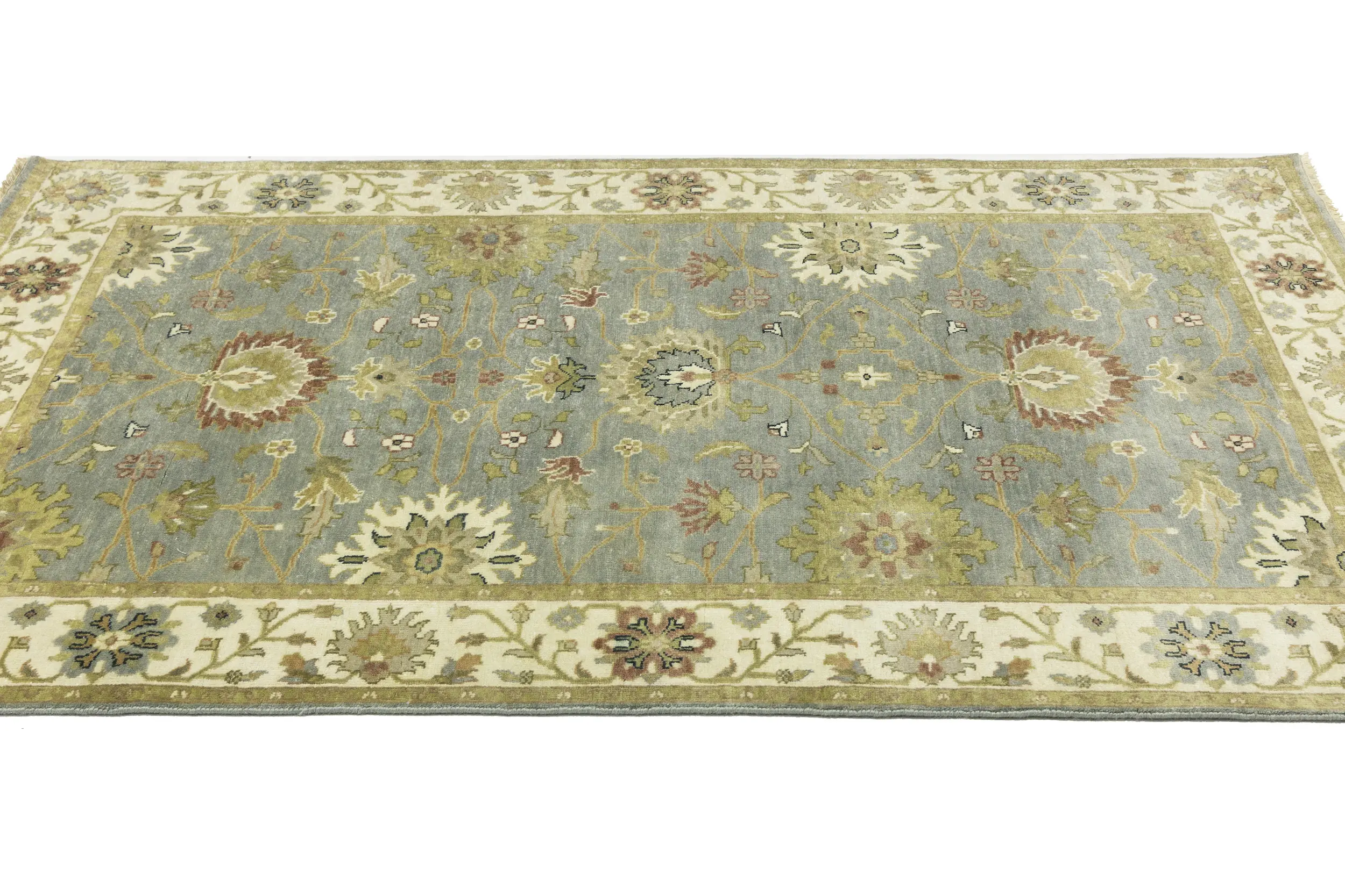 Light Blue Floral Transitional 5X8 Oushak Chobi Oriental Rug