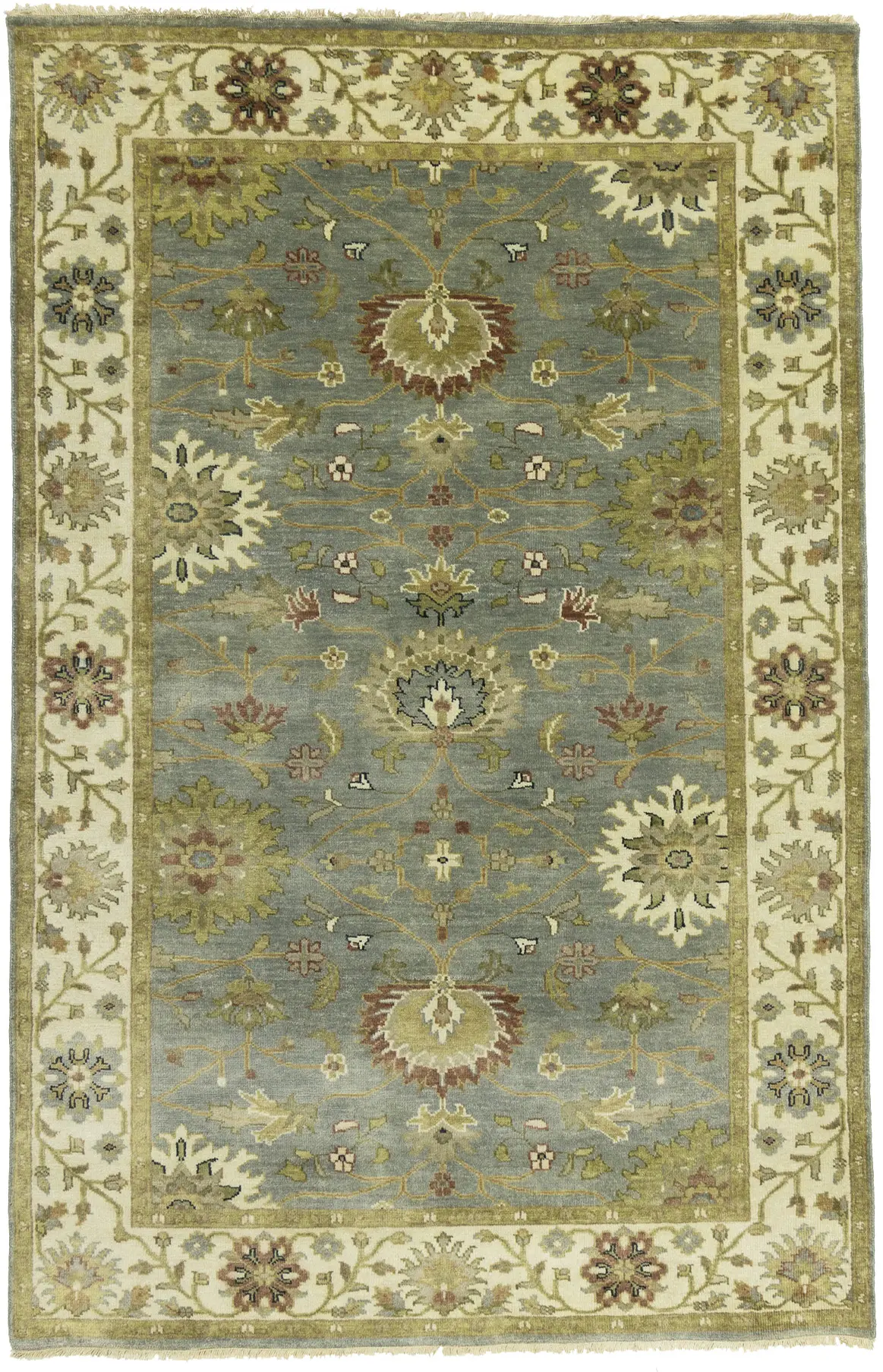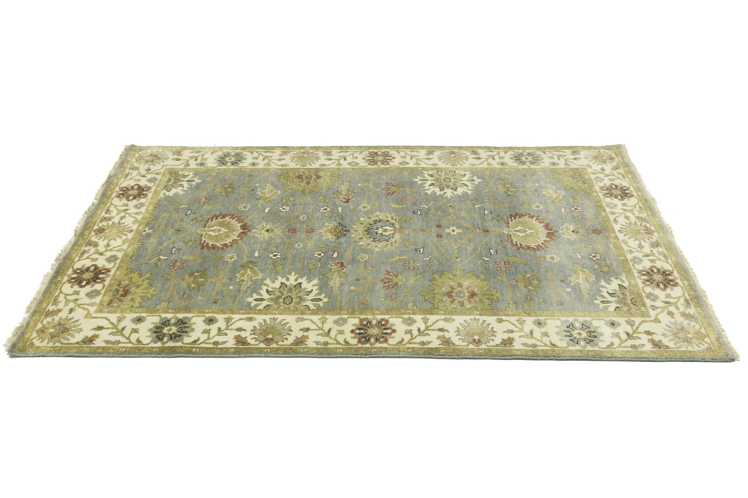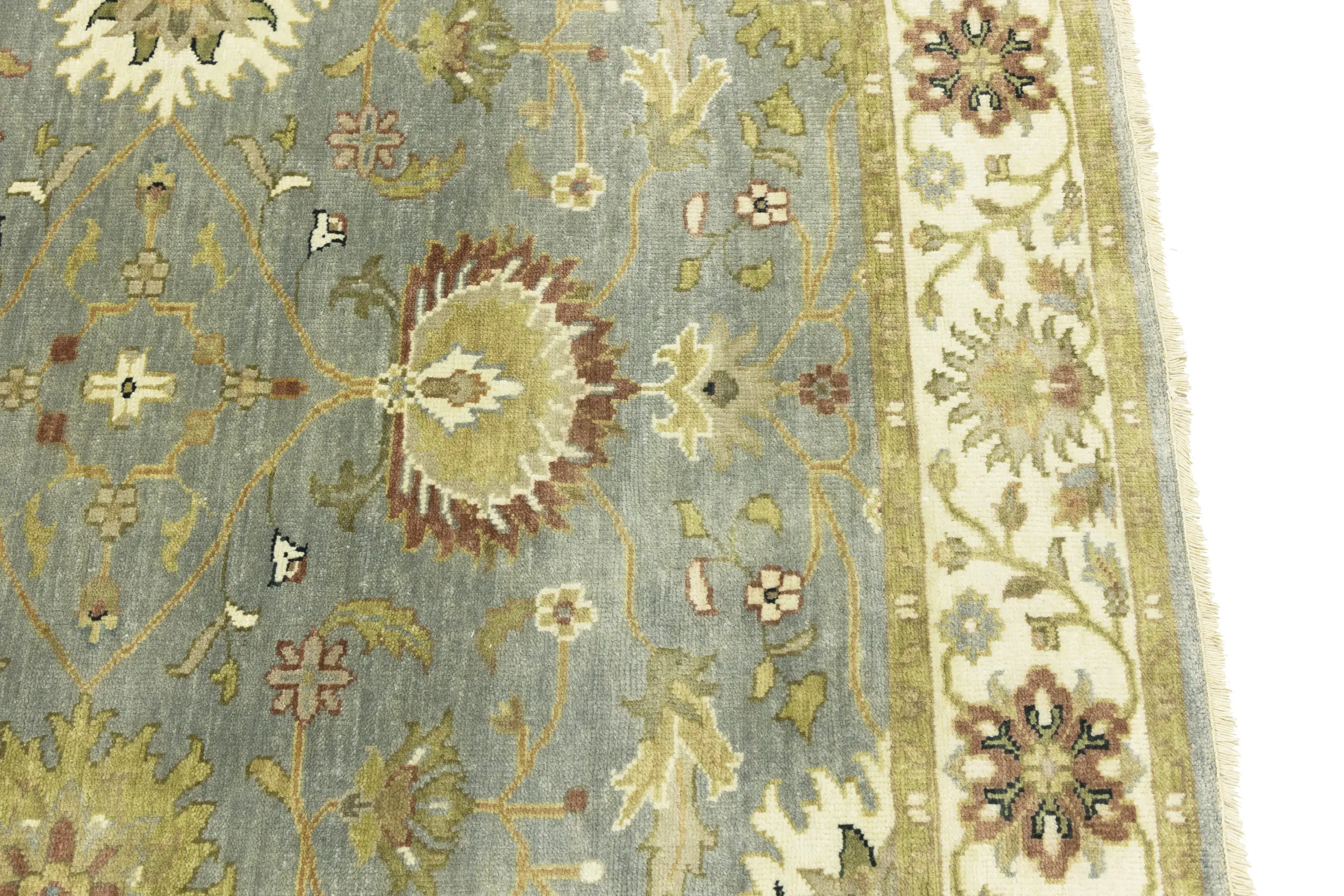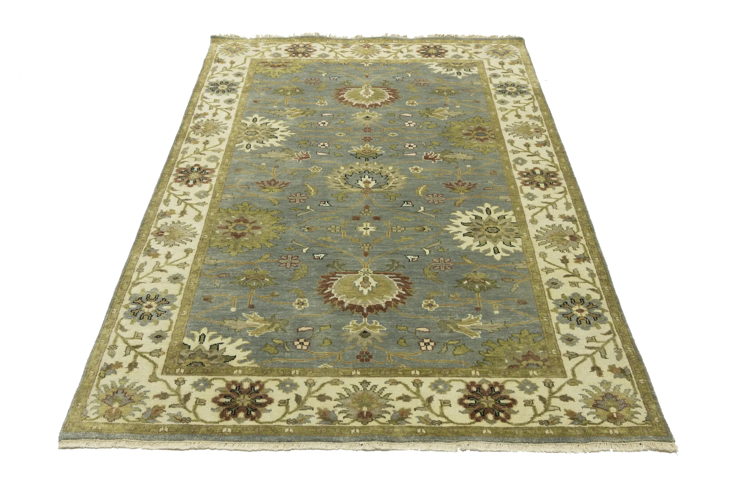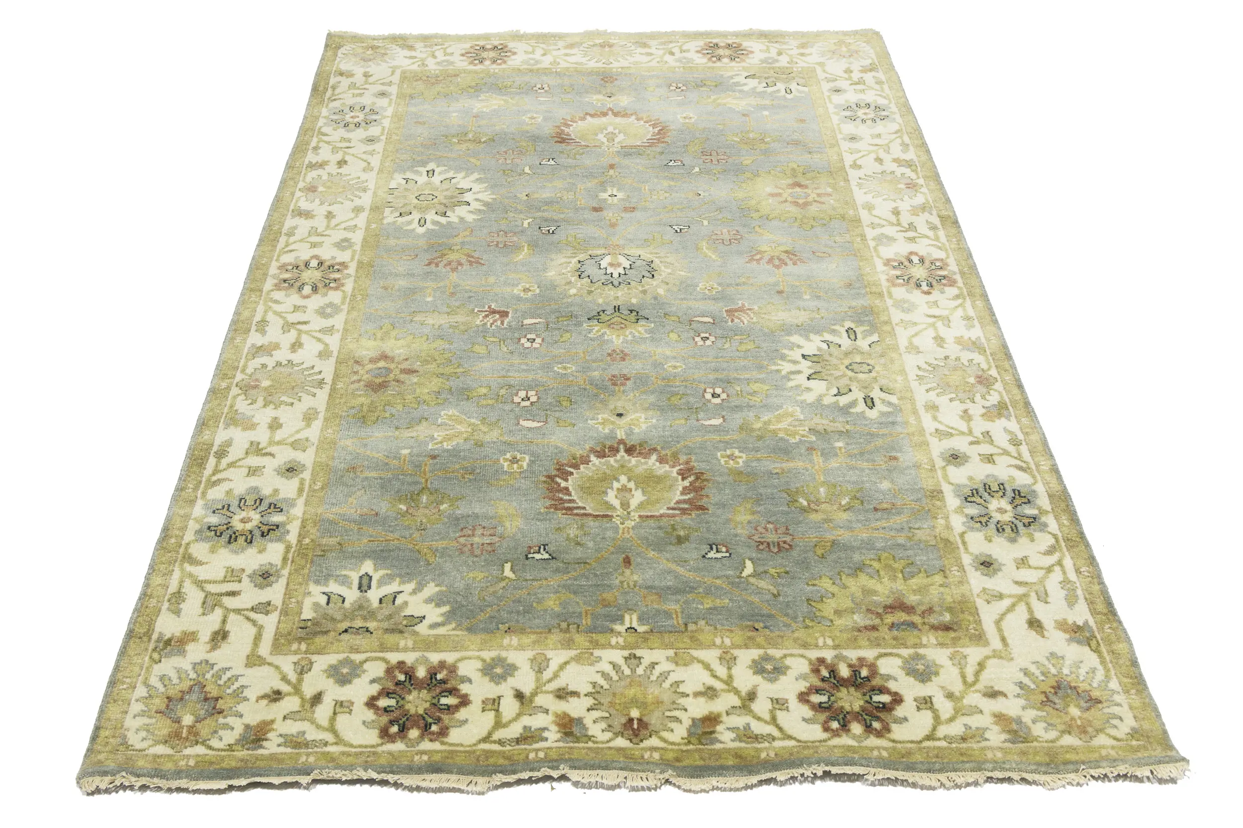 Light Blue Floral Transitional 5X8 Oushak Chobi Oriental Rug