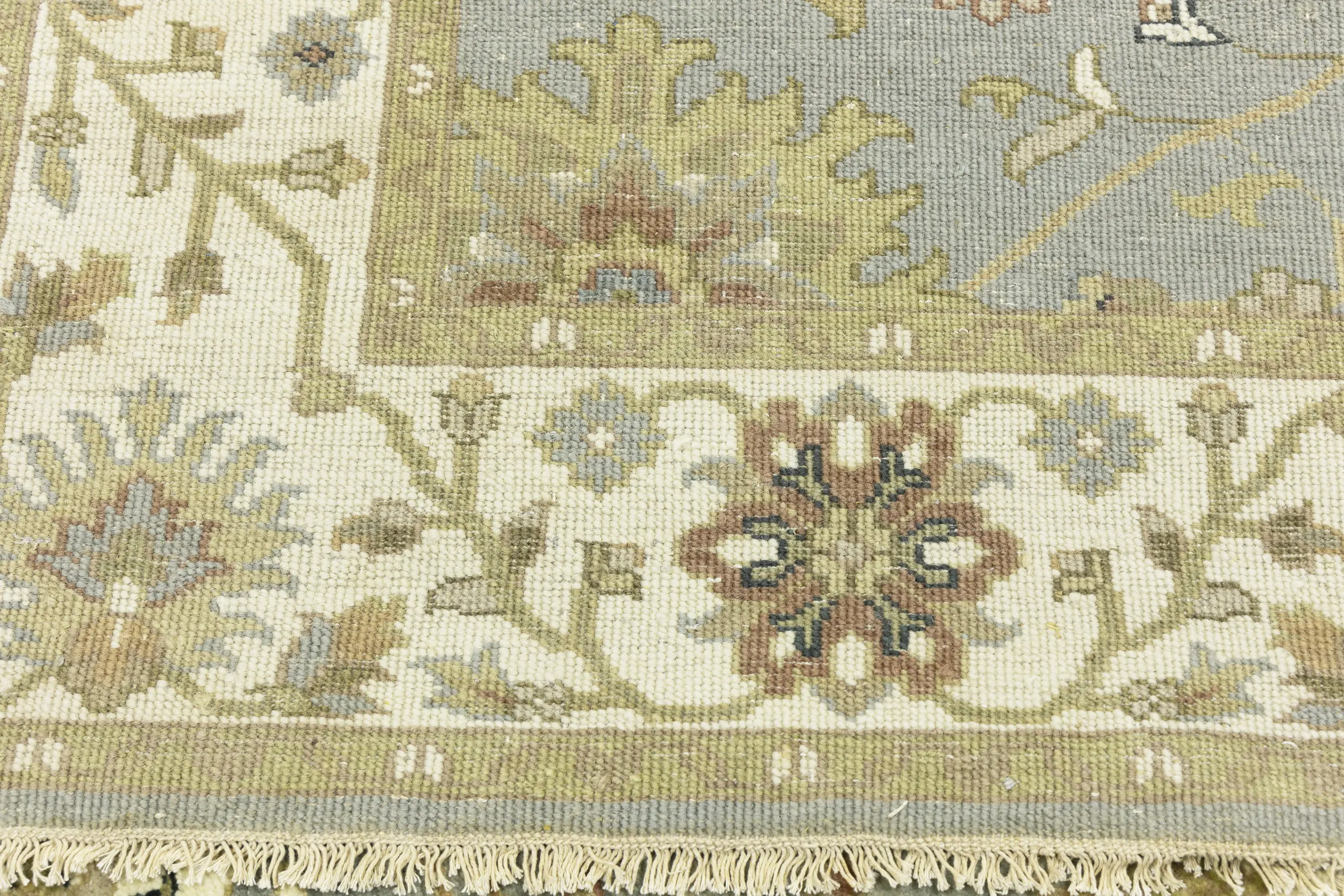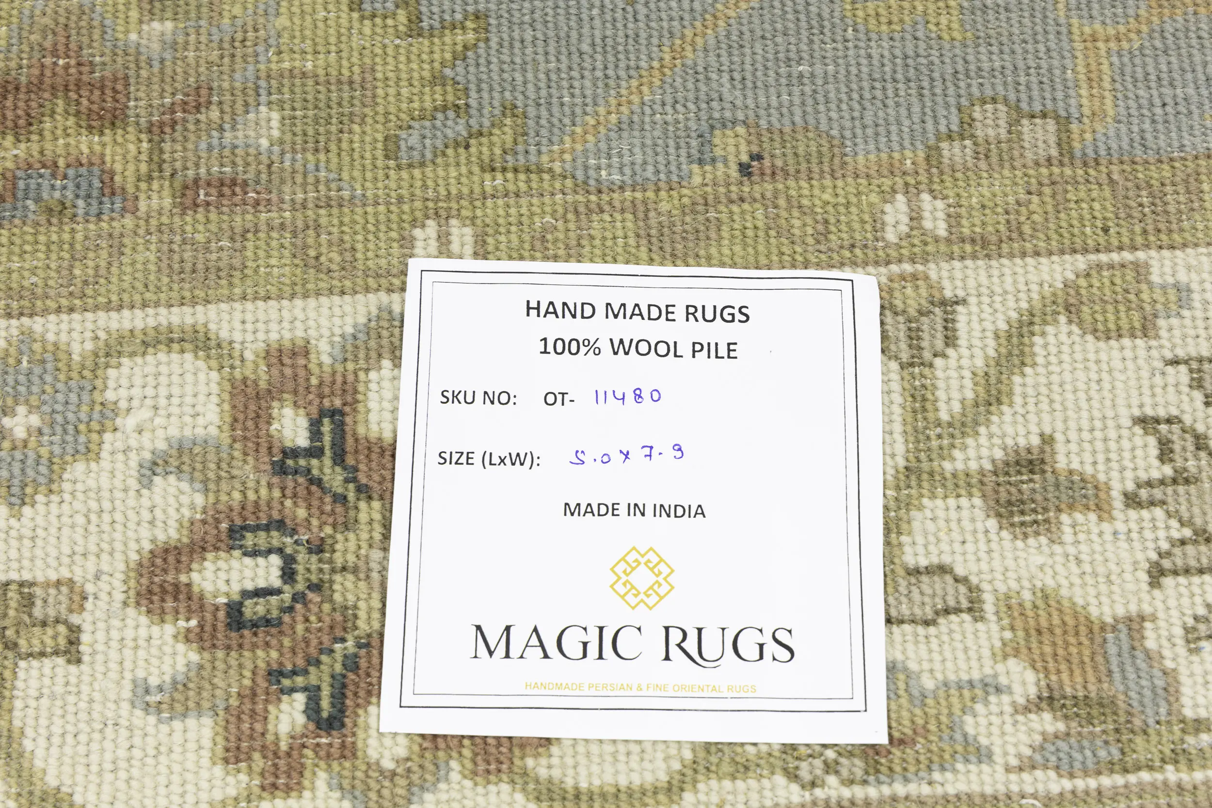 This genuine 5X8 light blue new Oriental rug was made by the hands of gifted weavers inspired by a variety of spectacular artistic designs, to recreate the aged look of the original piece with a richness of color and ornately patterned background field. What set this vintage style Oriental area rug from the others are the material and dye used (wool pile and cotton foundation), knot count, ancient designs, fantastic grades, and its regional historical connection: it has deep roots, from the story of the people who produced it to the meaning of the symbols and colors displayed across its canvas that have been praised for centuries. This Indian home décor carpet will be completely cozy and inviting that never will go out of style! Also, this Oriental rug would be among your most valuable treasures, it is a great investment that accrues value over time, and it will last for generations because was woven with high-quality, all-natural wool. Environmentally friendly, opulent yet affordable; this rug will give you a thorough amount of character to help define your living space with elegance and warmth that will capture the eyes and attention of your audience (homeowners, designers, decorators, family and friends). OT-11480