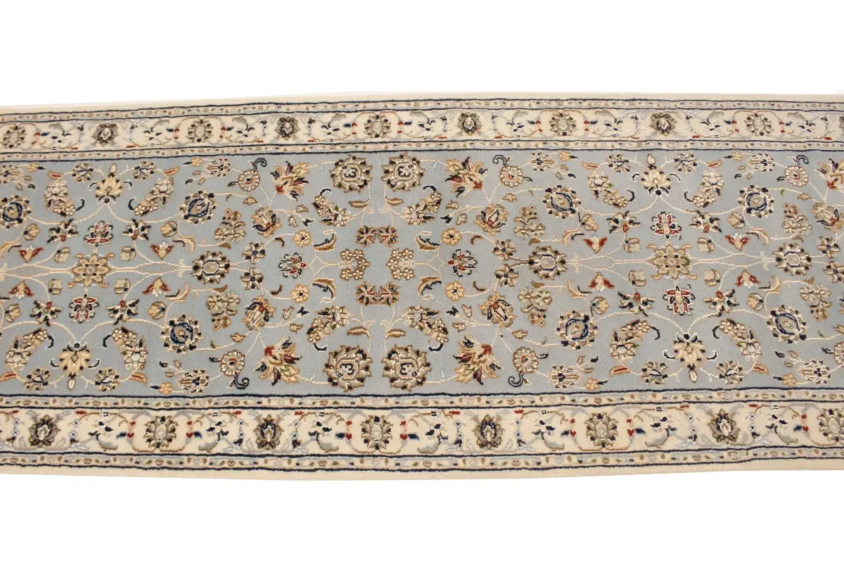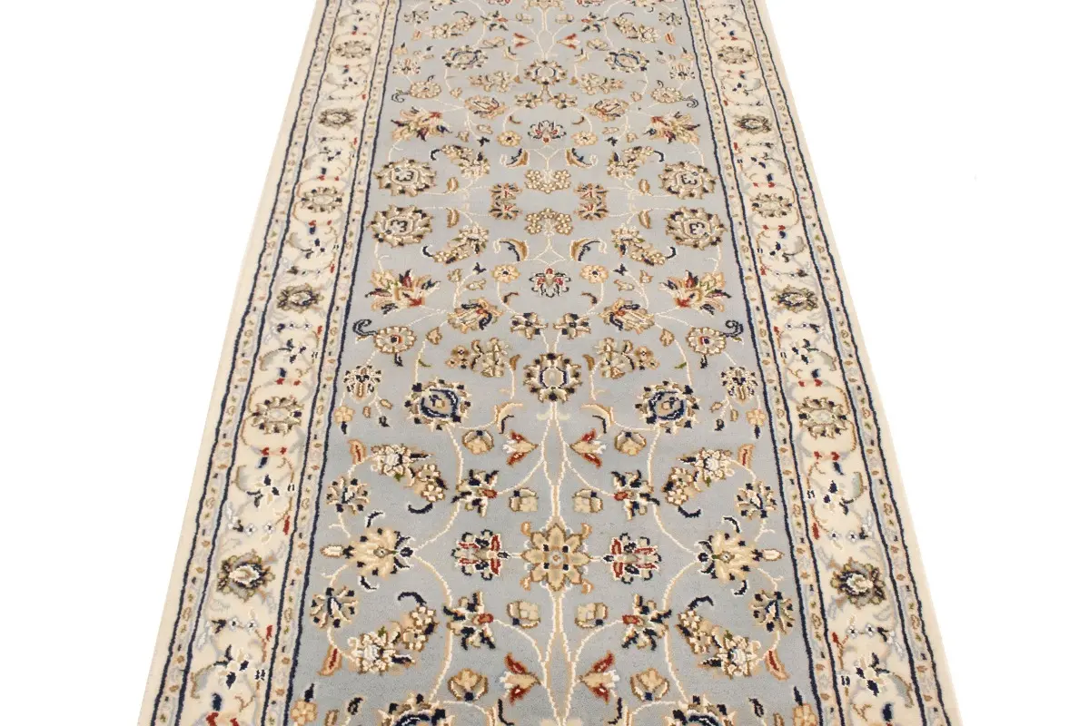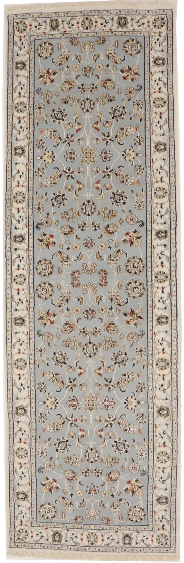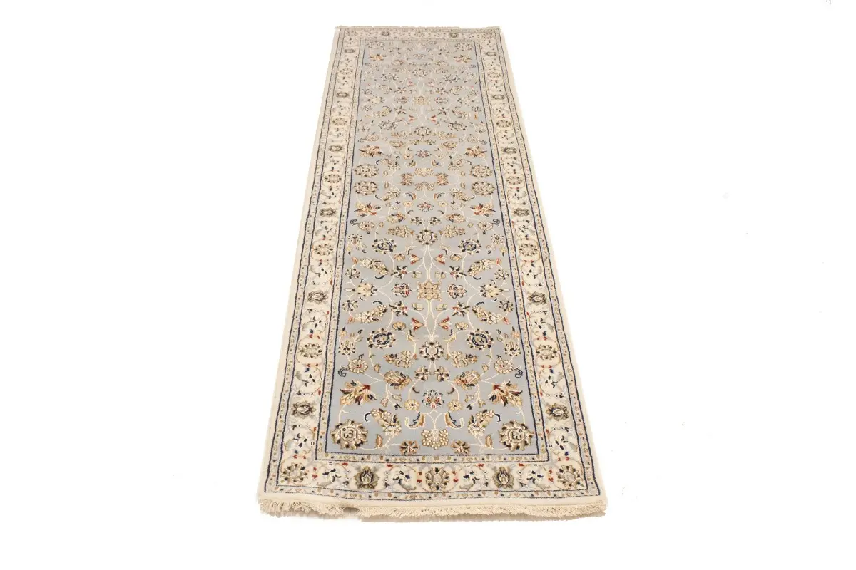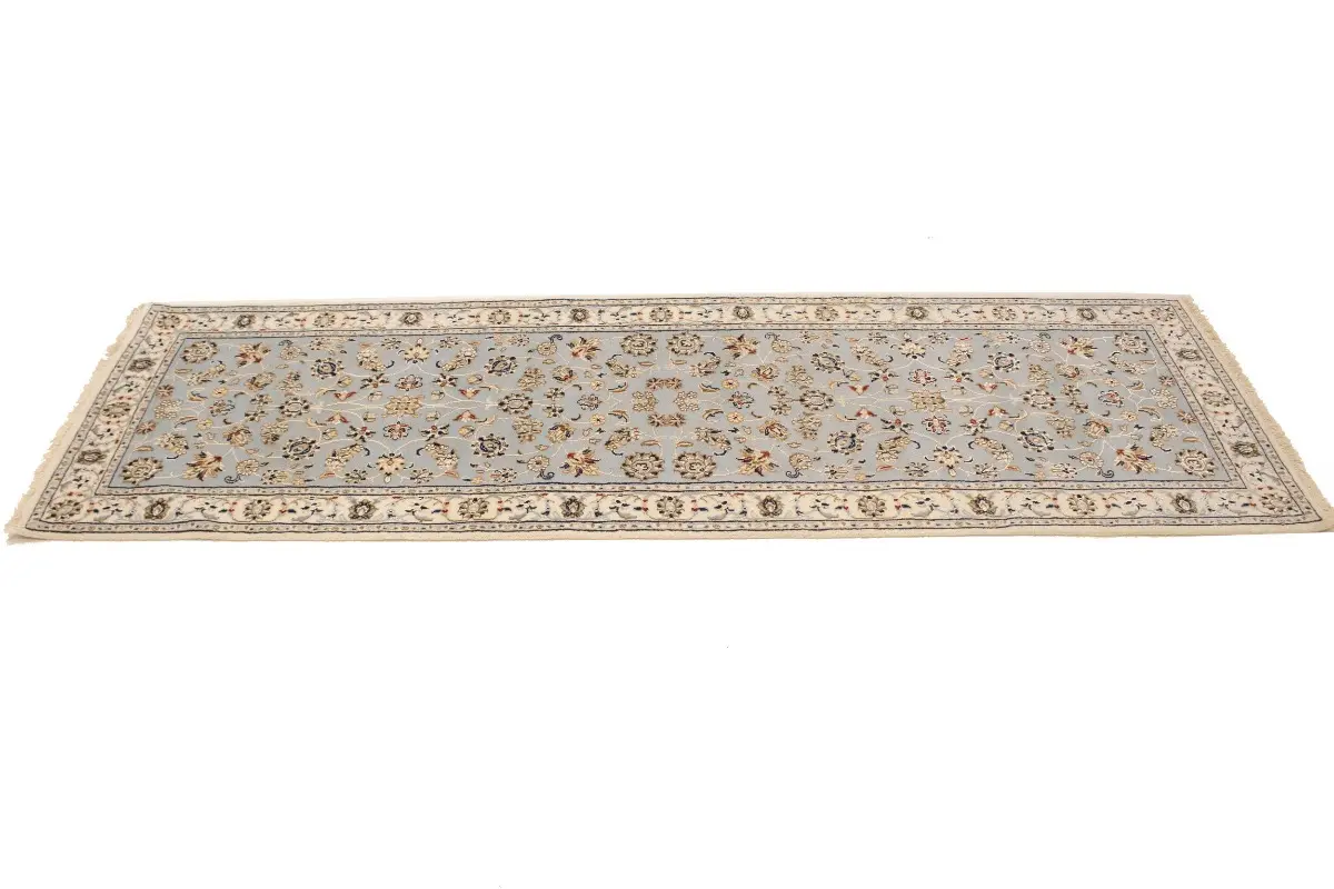 Light Blue-gray Floral 3X8 Indo-Nain Oriental Runner Rug