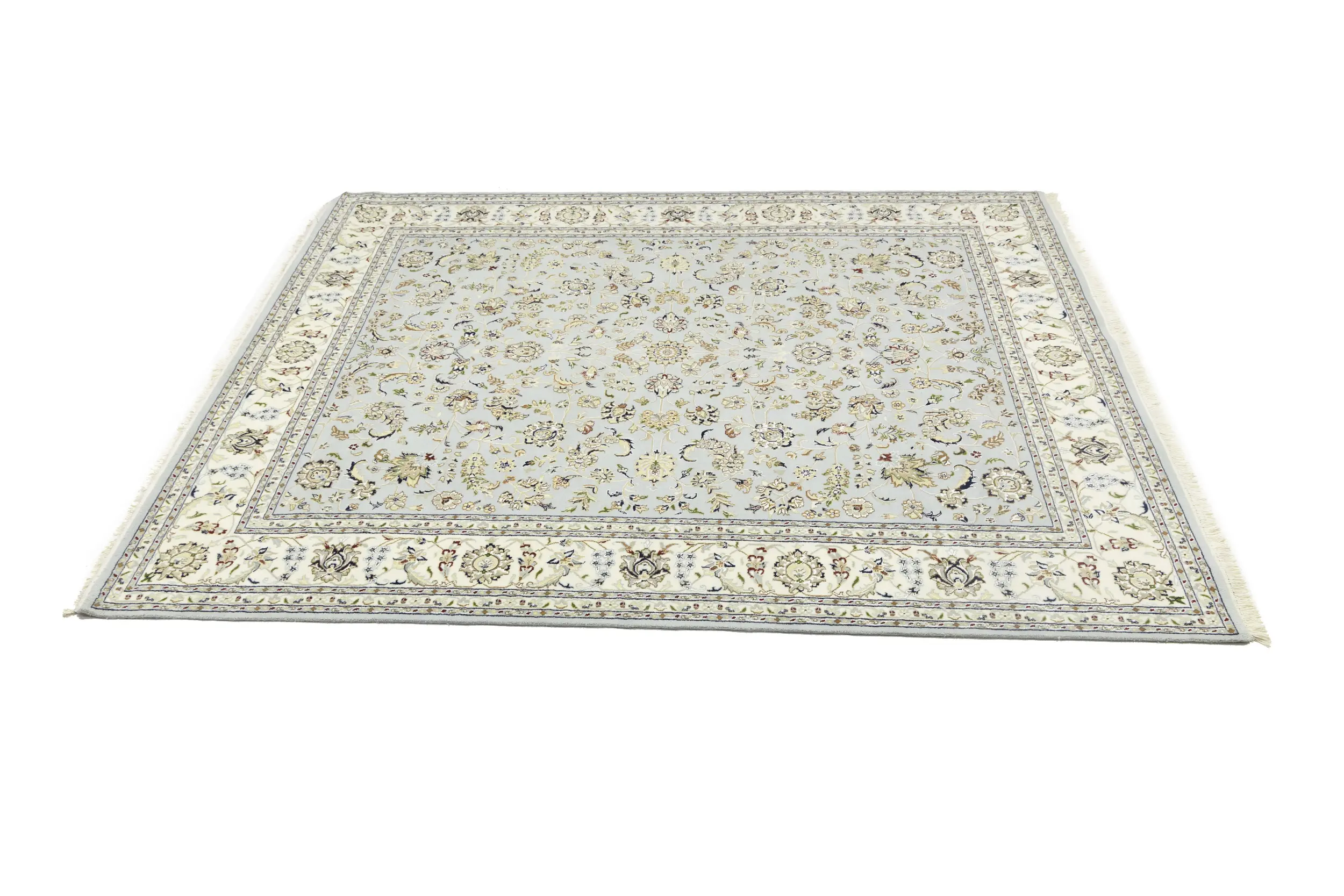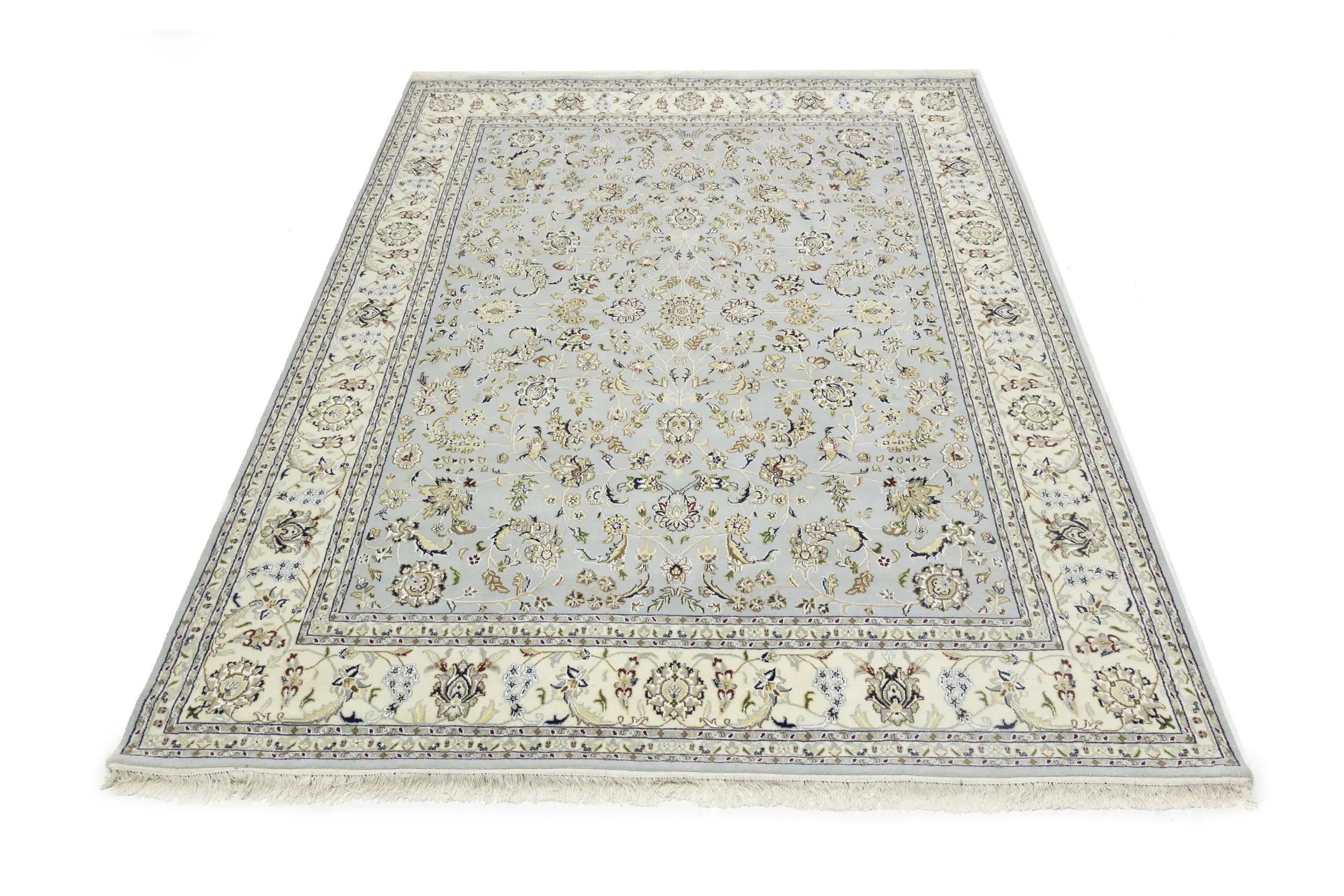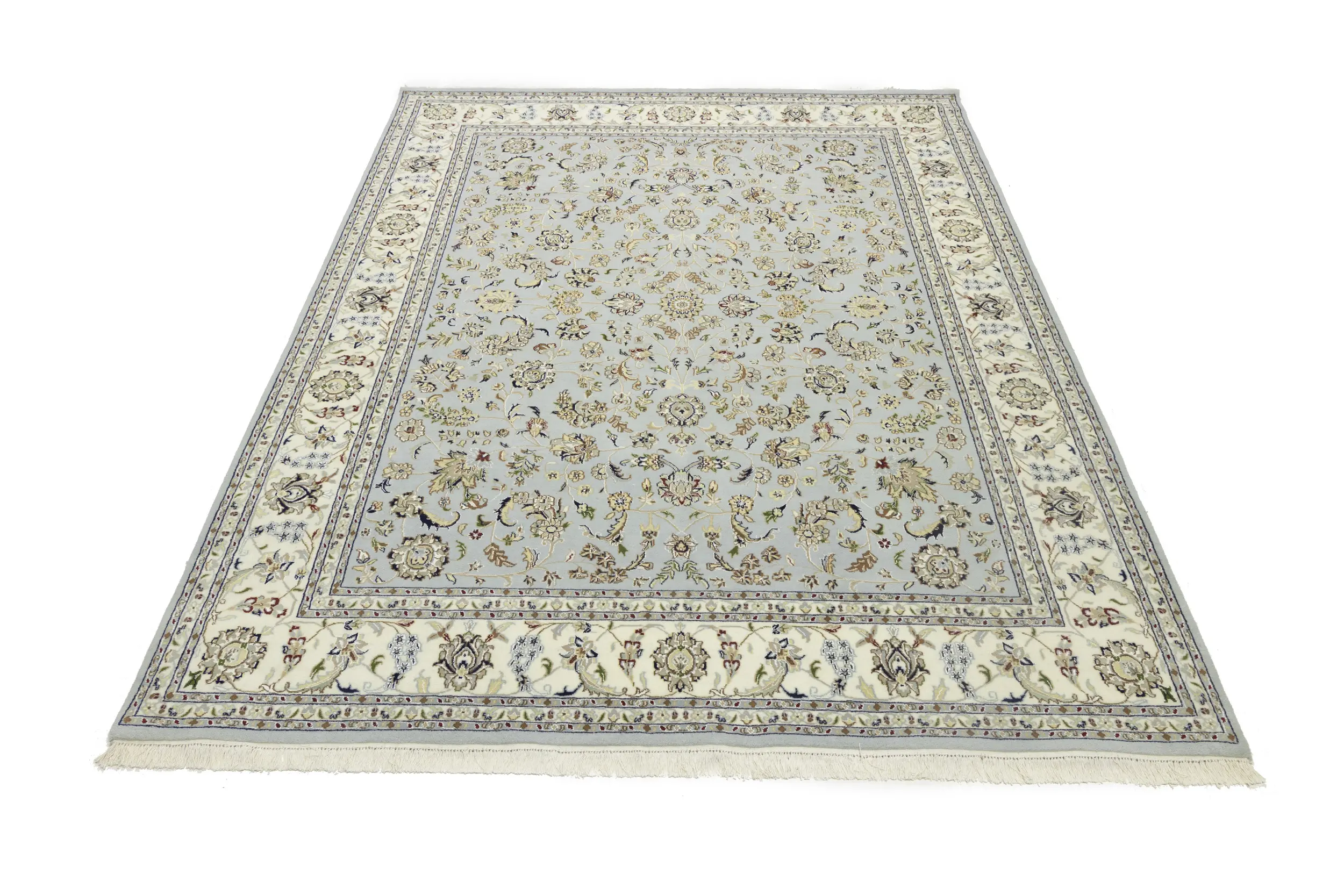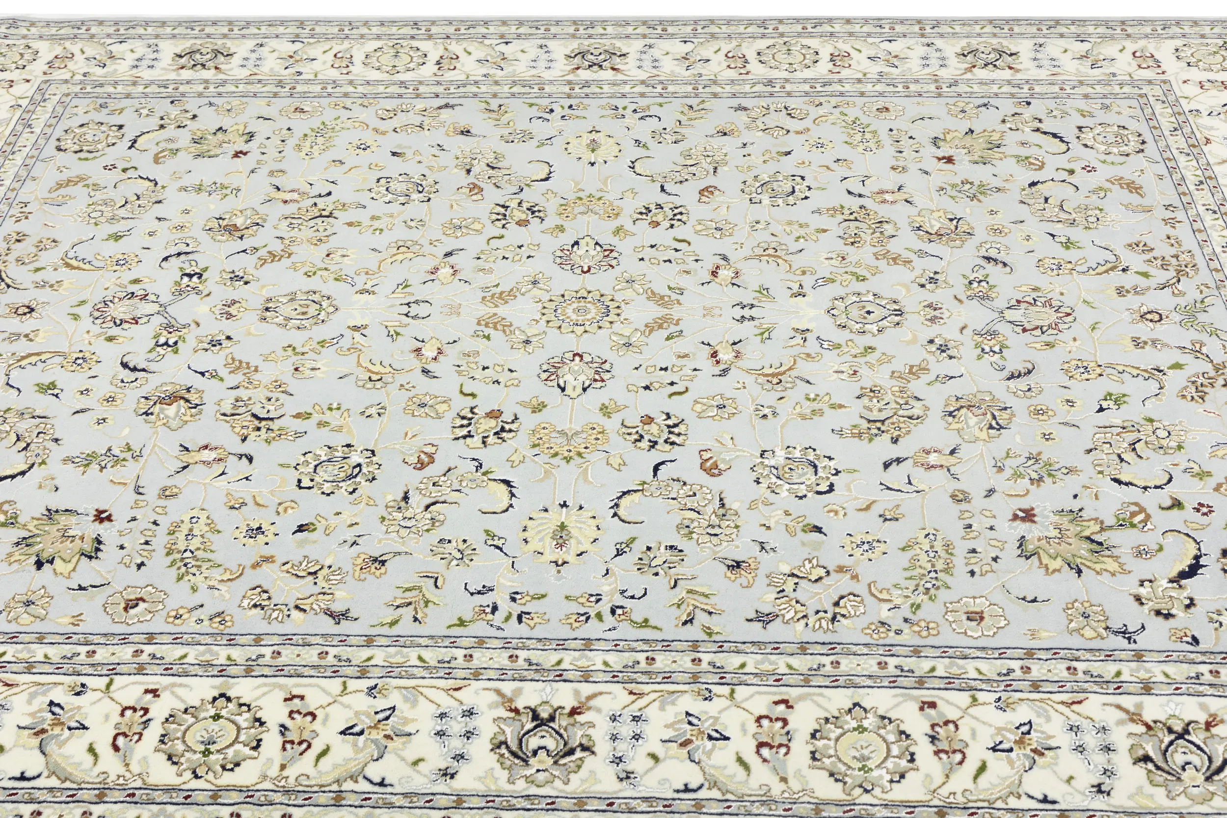 Light Blue-gray Floral 8X10 Indo-Nain Oriental Rug
