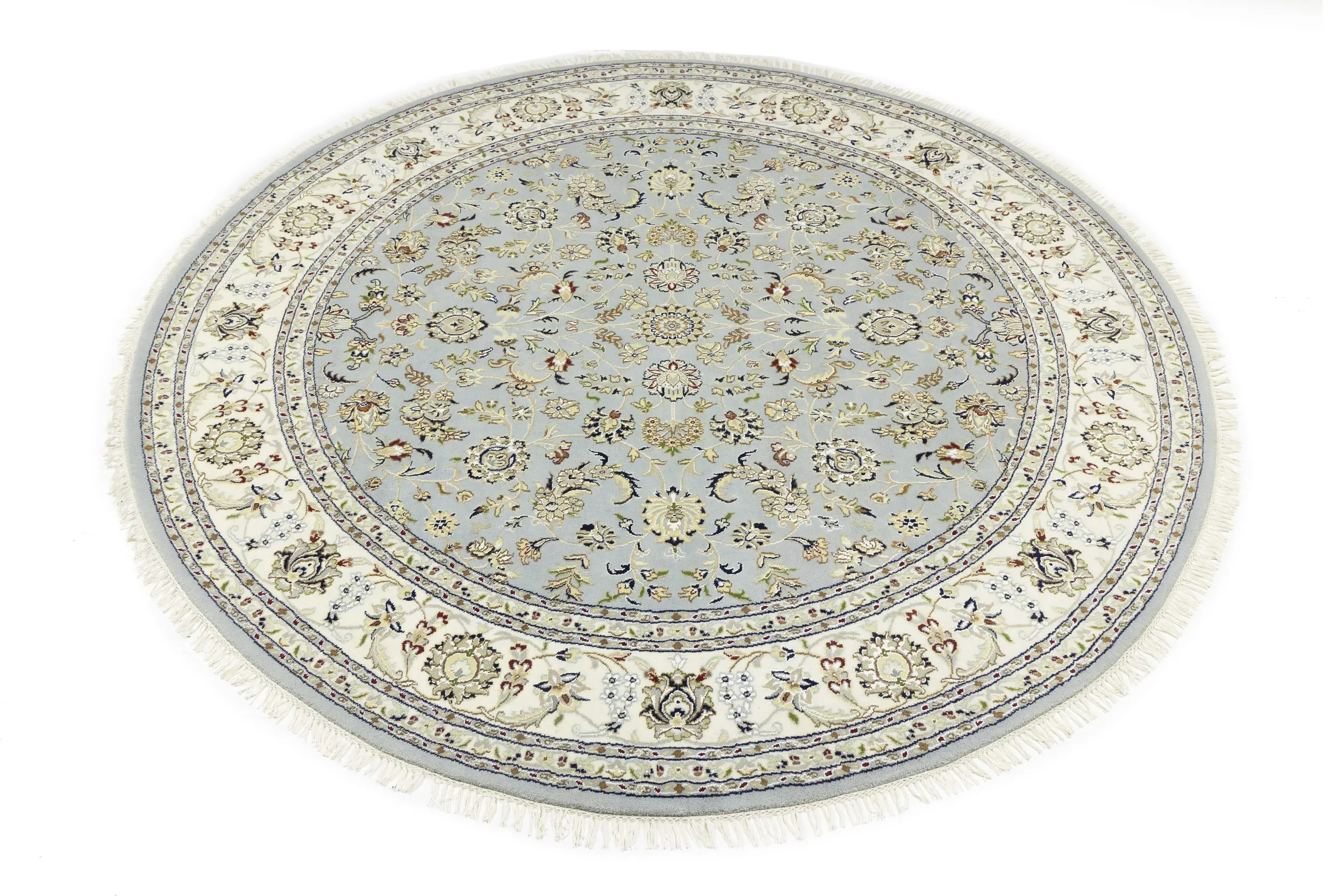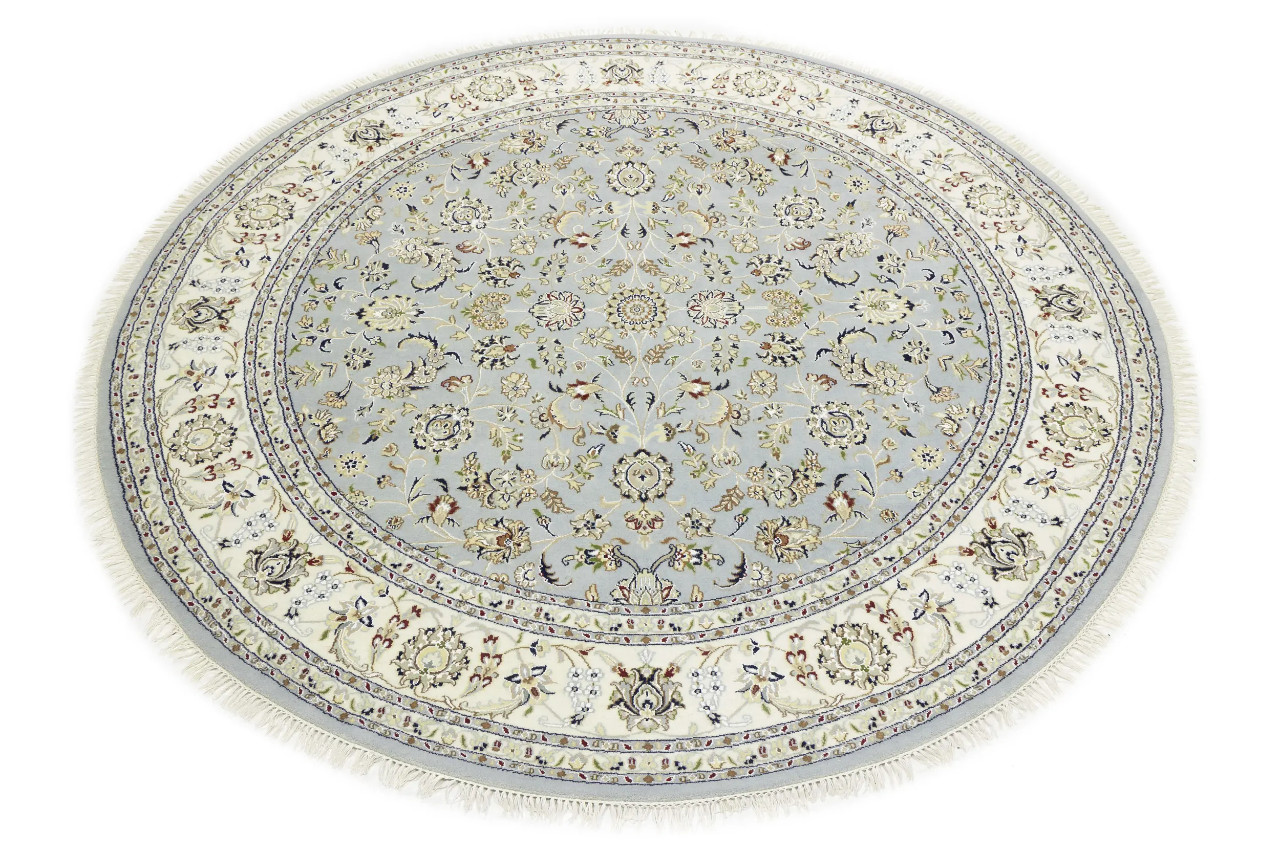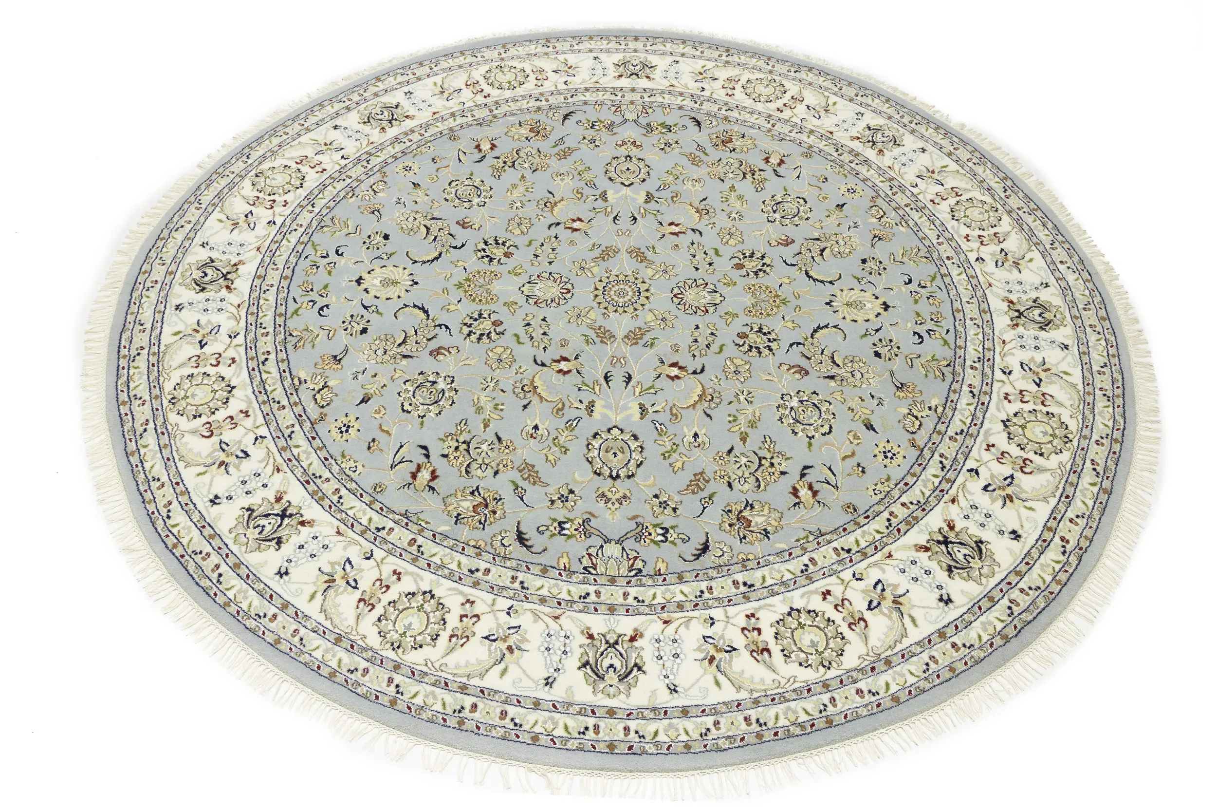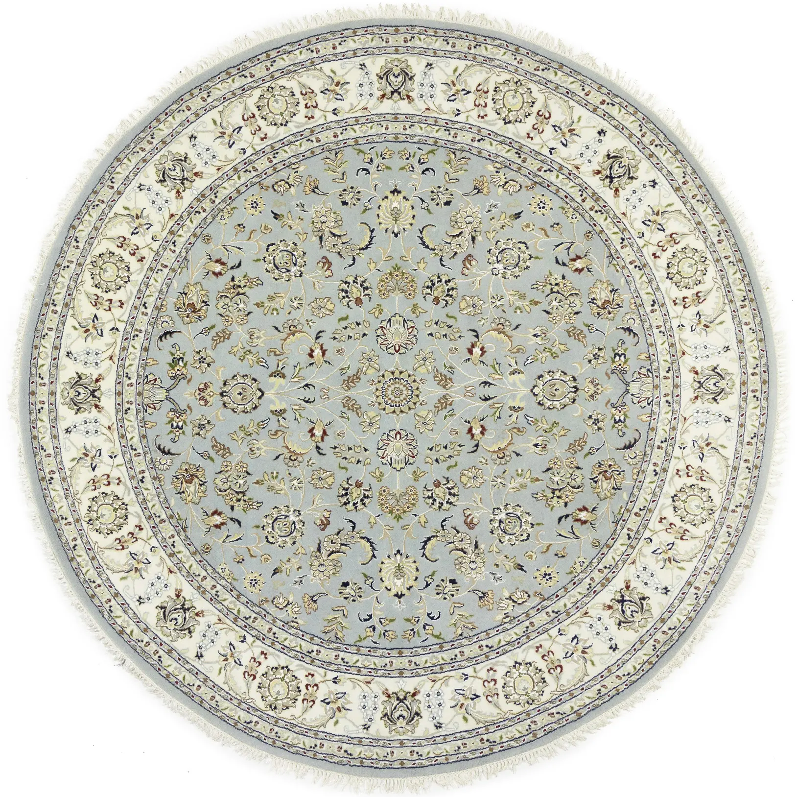 Light Blue-gray Floral 8X8 Indo-Nain Oriental Round Rug