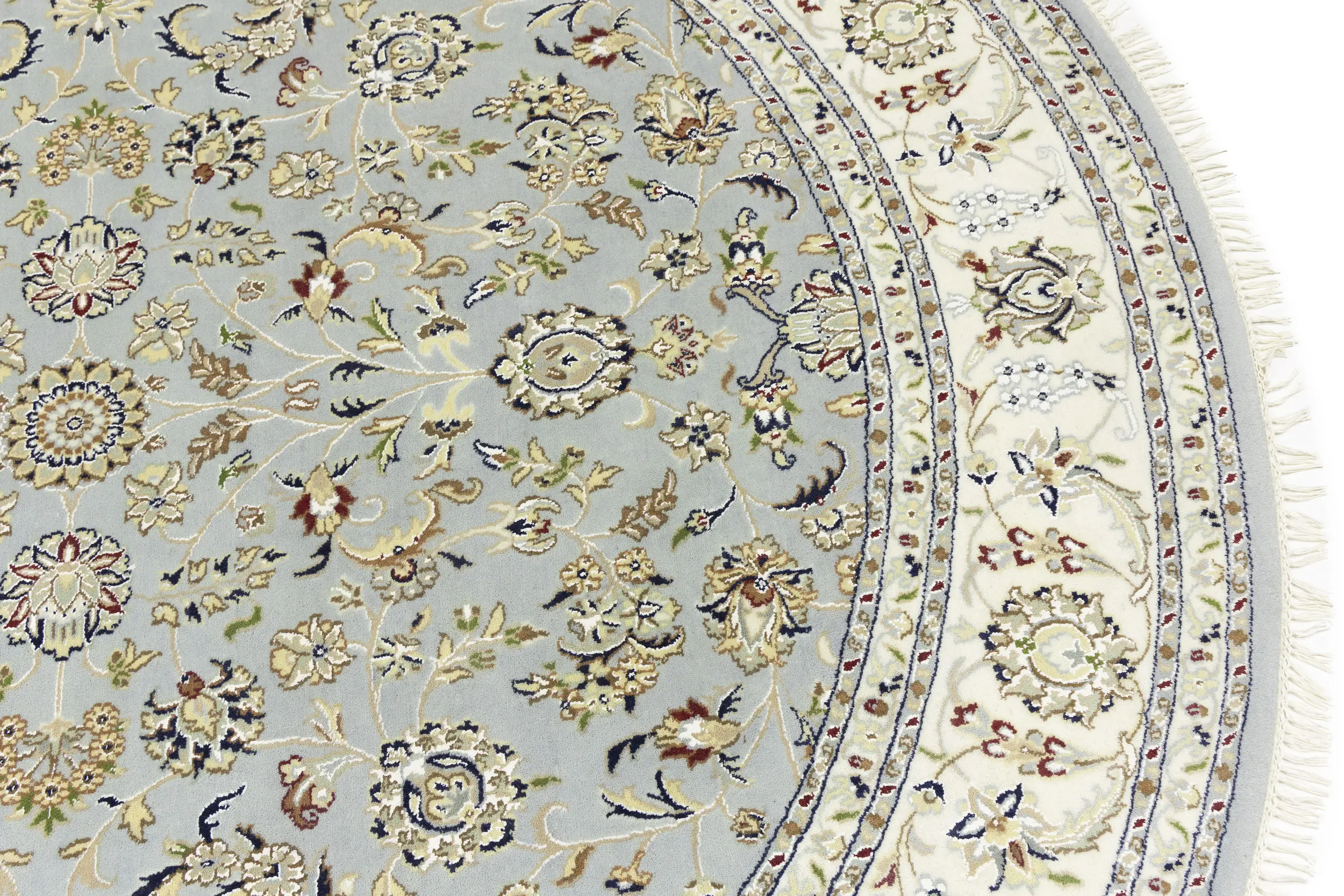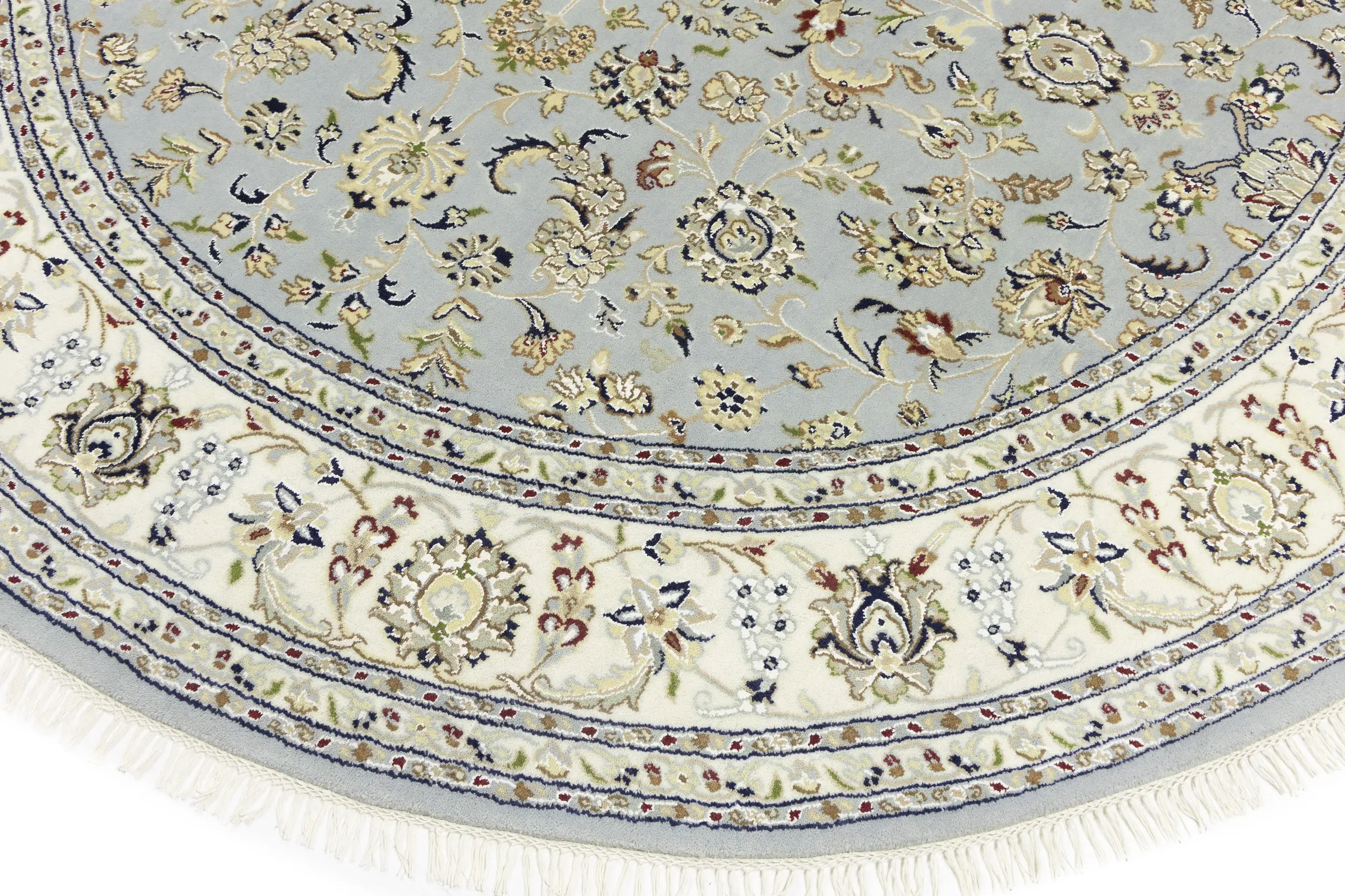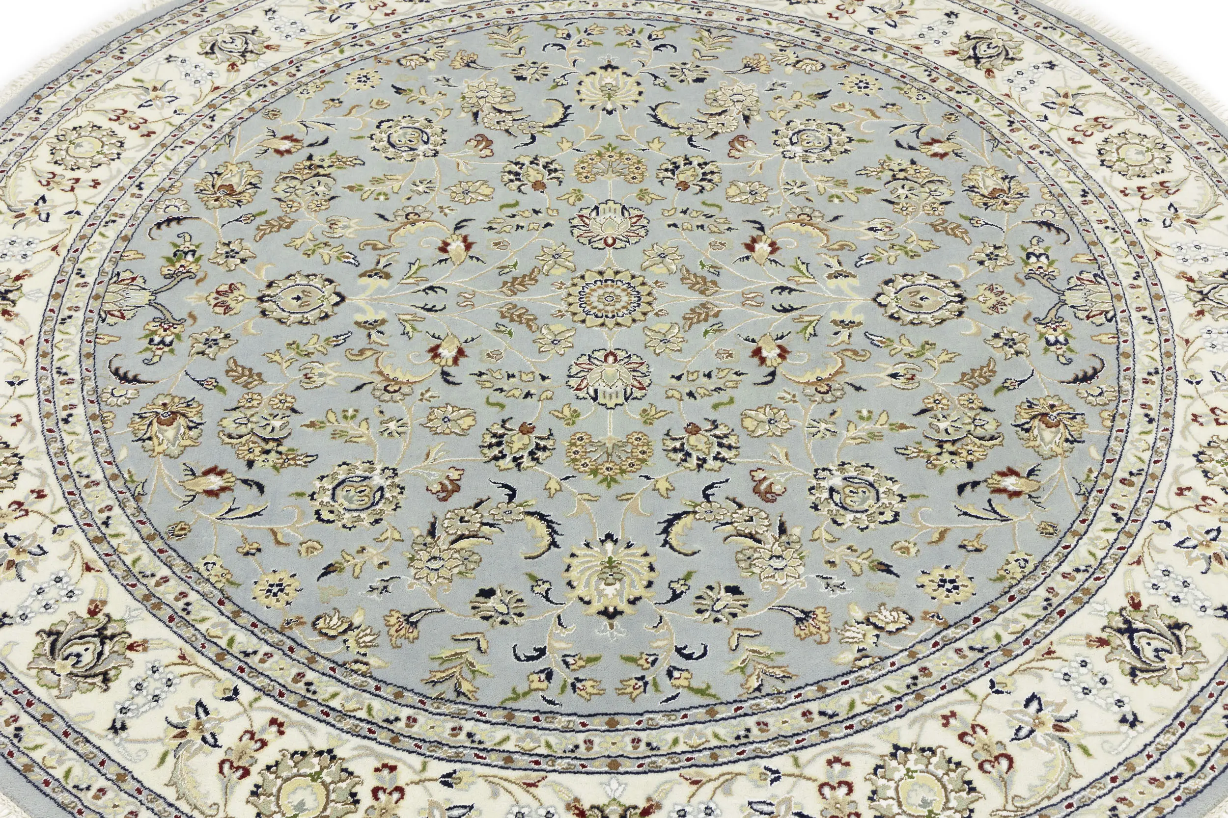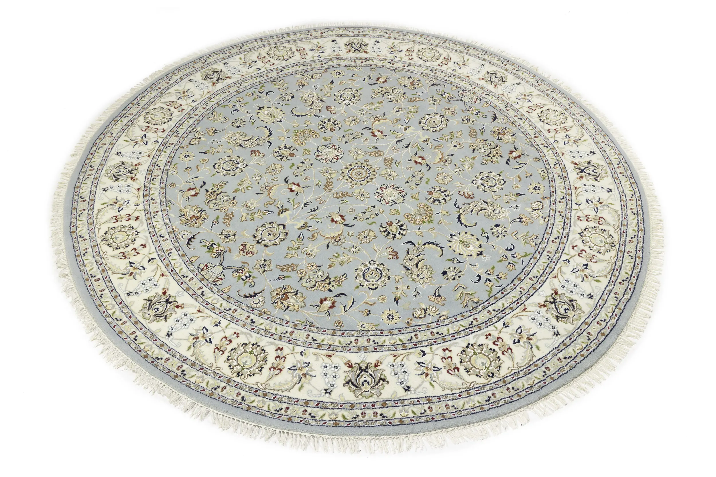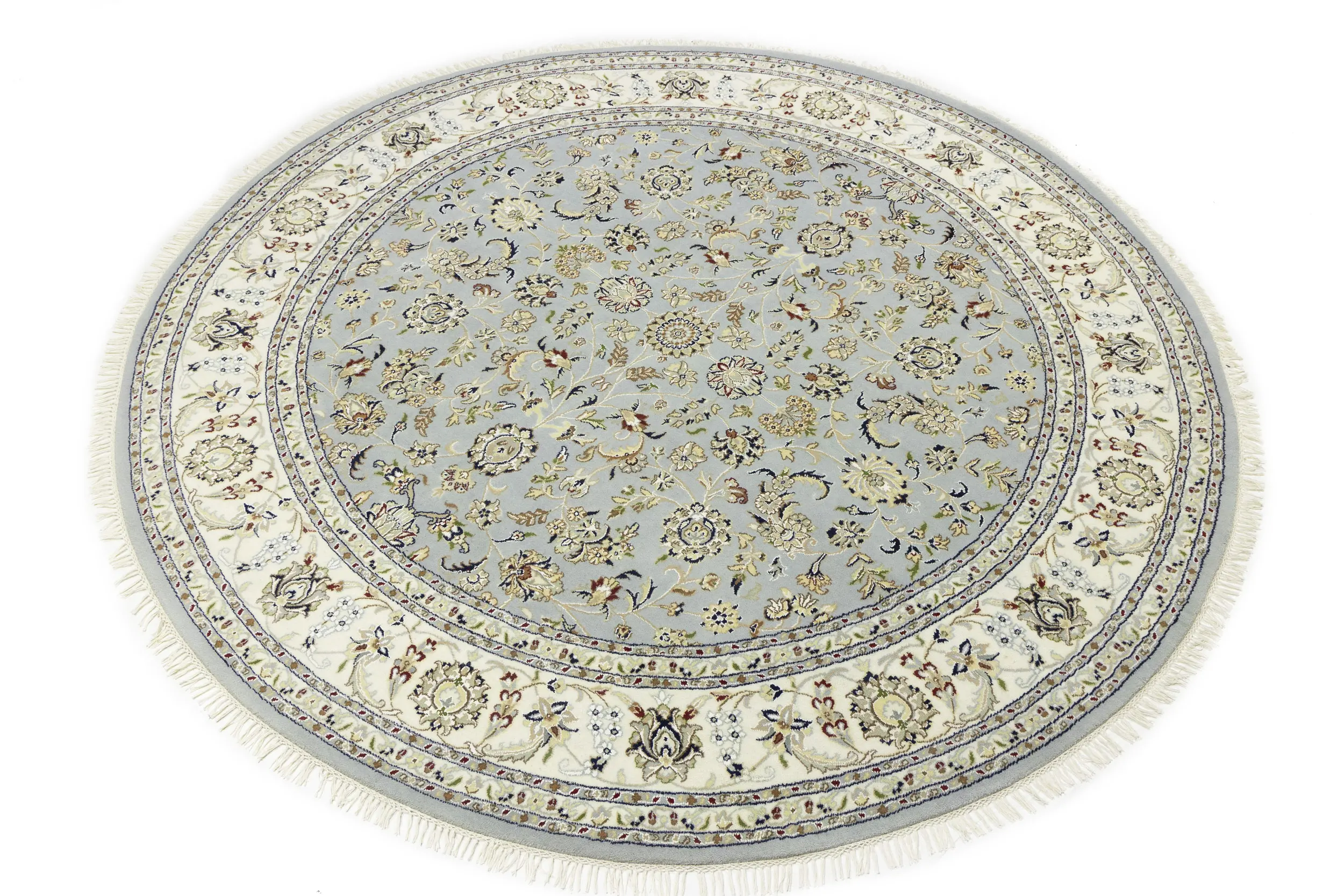 Light Blue-gray Floral 8X8 Indo-Nain Oriental Round Rug