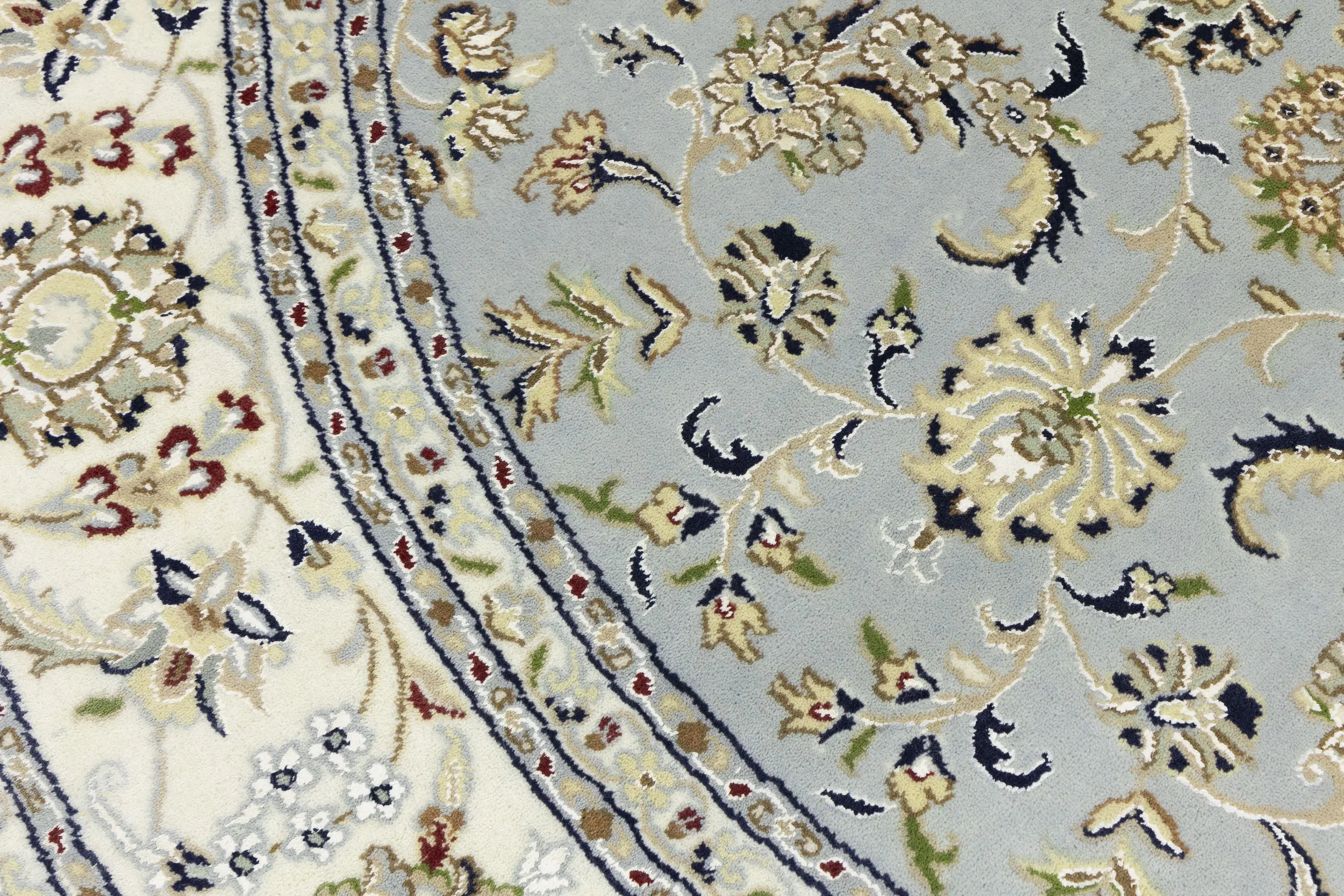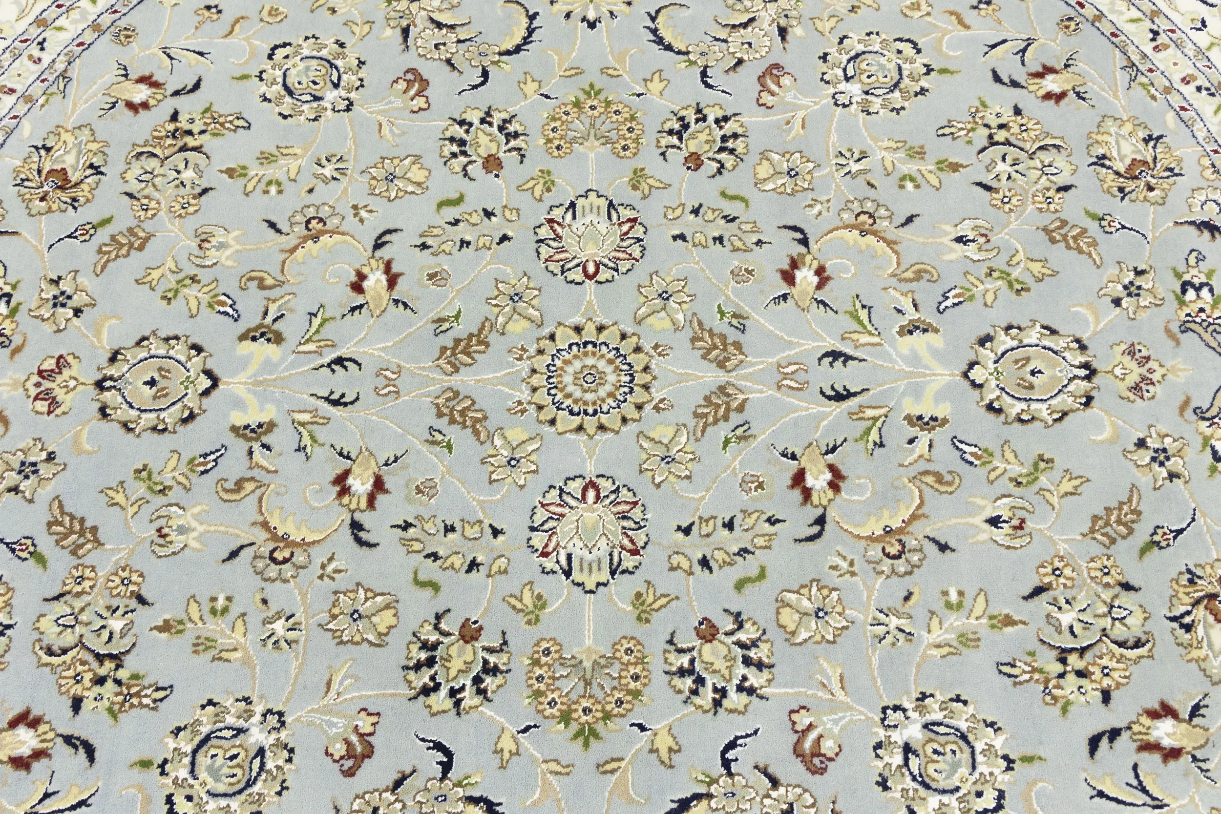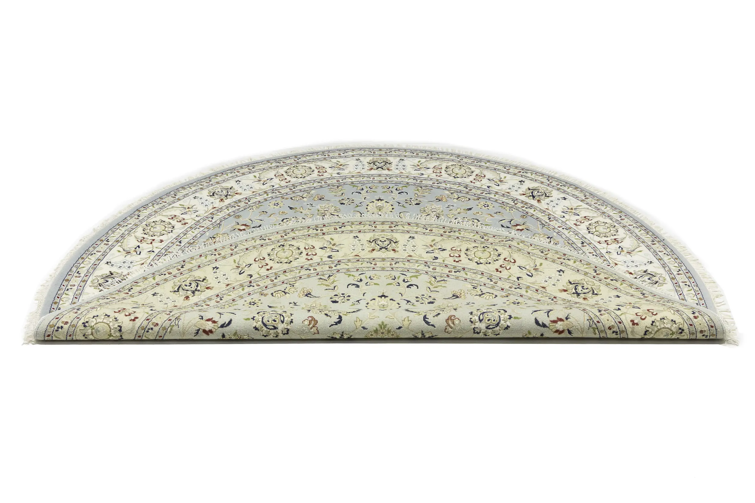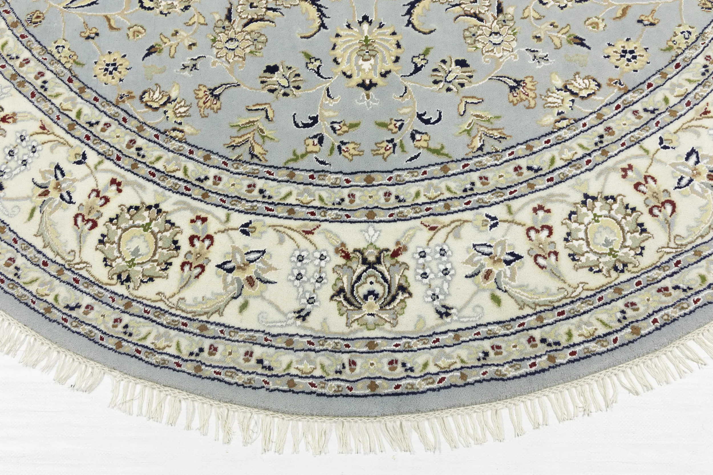 Light Blue-gray Floral 8X8 Indo-Nain Oriental Round Rug