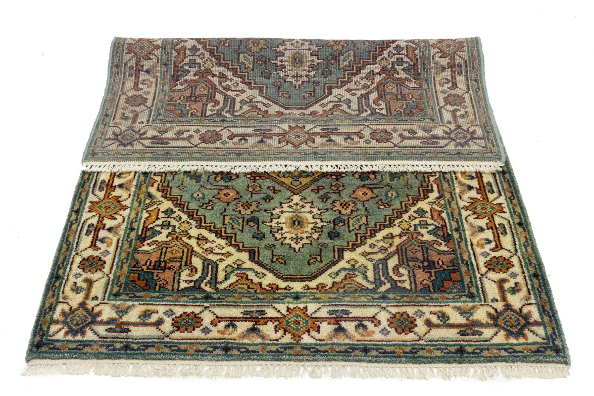 This authentic 4X6 blue-gray new Oriental rug was crafted by the hands of skilled weavers enthused by a variety of lovely artistic designs, to recreate the aged look of the unique piece with a richness of color and beautifully elaborated background field. What set this vintage style Oriental area rug from the others are the material and dye used (wool pile and cotton foundation), knot count, ancient designs, fantastic grades, and its regional historical connection: it has deep roots, from the story of the people who produced it to the meaning of the symbols and colors displayed across its canvas that have been praised for centuries. This Indian home décor carpet will be completely cozy and inviting that never will go out of style! Also, this Oriental rug would be among your most valuable treasures, it is a great investment that increase in value over time, and it will last for generations because was woven with high-quality, all-natural wool. Environmentally friendly, opulent yet affordable; this rug will give you a thorough amount of character to help define your living space with sophistication and warmth that will capture the eyes and attention of your audience (homeowners, designers, decorators, family and friends). OT-7708