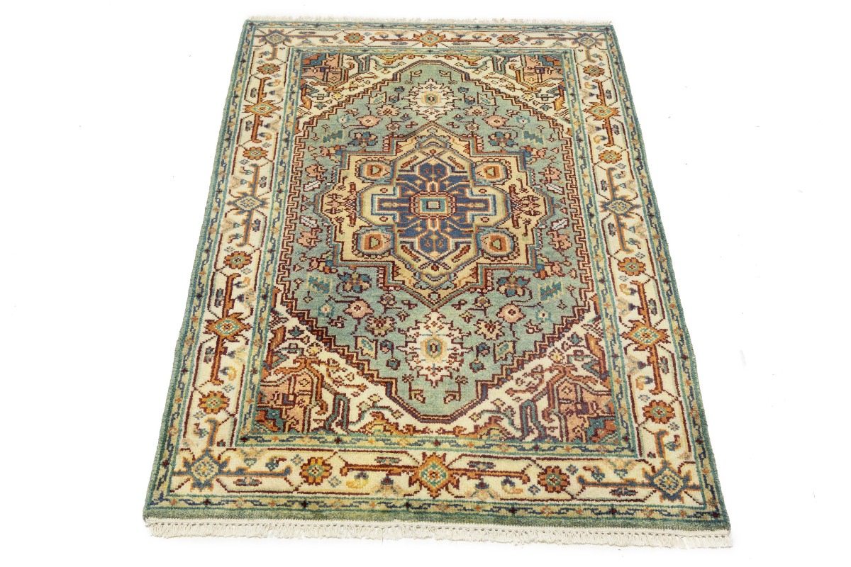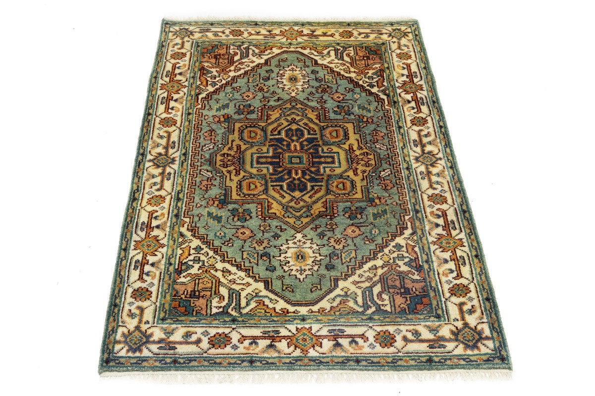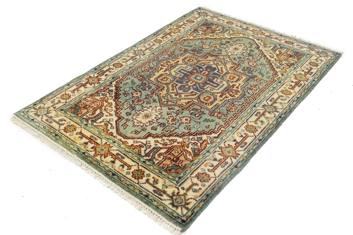 Handmade 4X6 blue-gray oriental rug made with natural dyes (fine wool pile and cotton foundation), superior knot count, and alluring ancient designs. This Oriental rug never will go out of style and would be among your most valuable treasures.