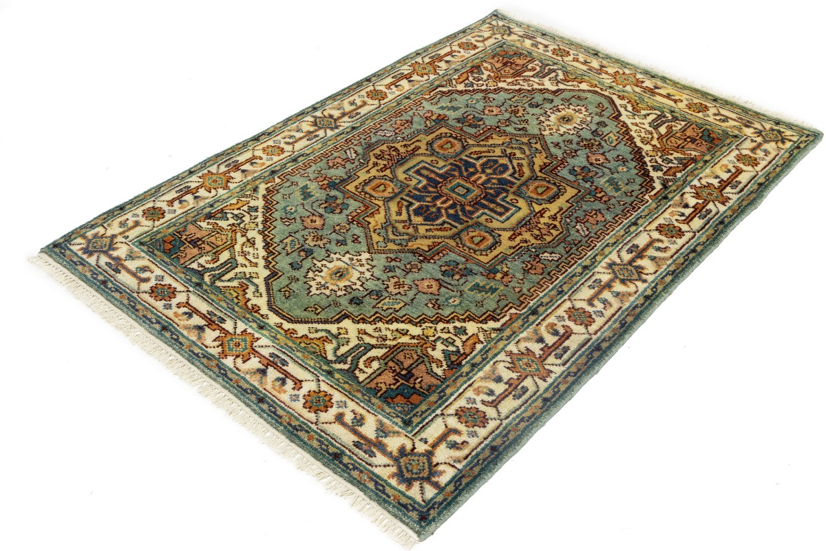 Light Blue-gray Geometric 4X6 Heriz Serapi Oriental Rug