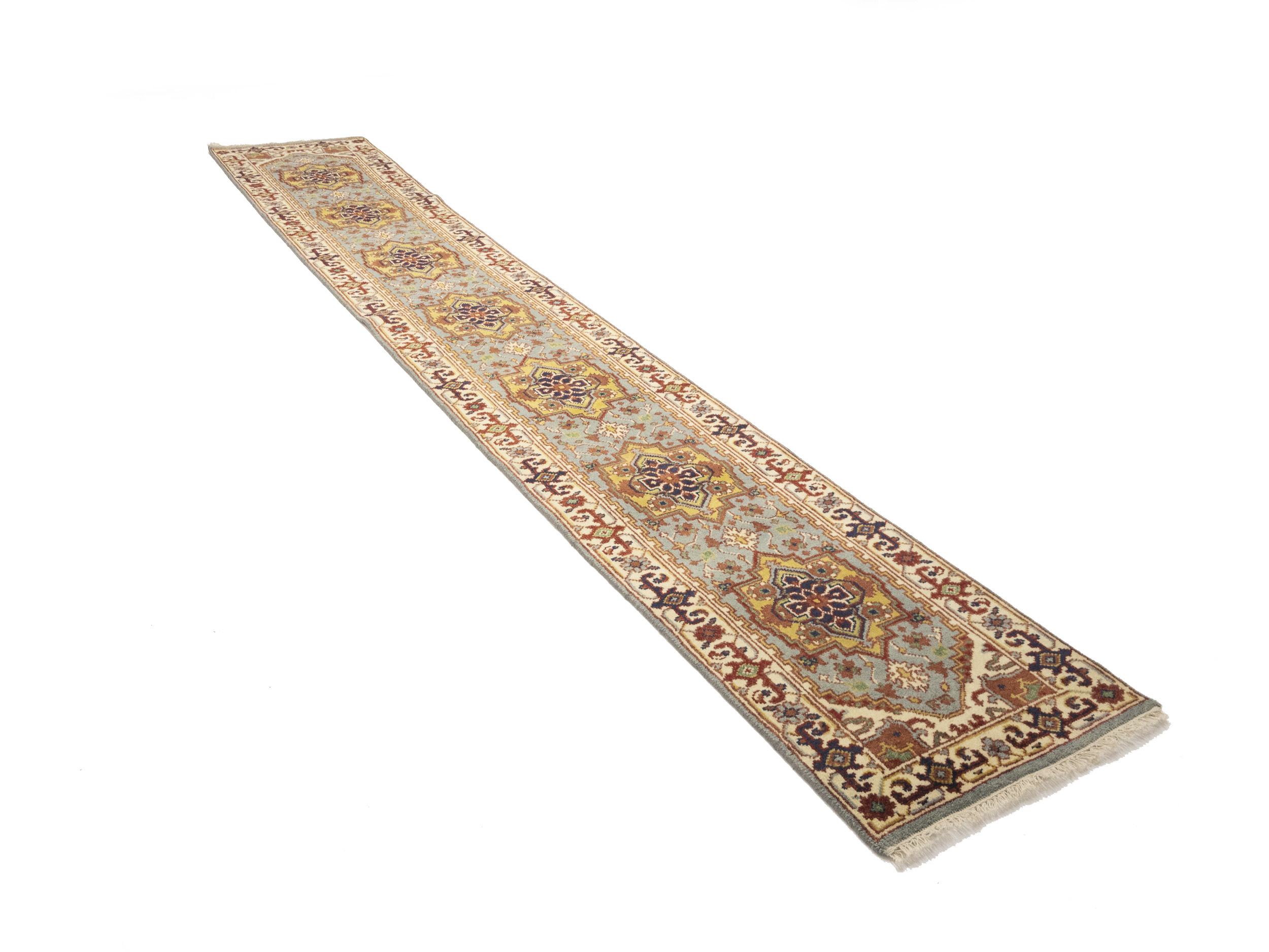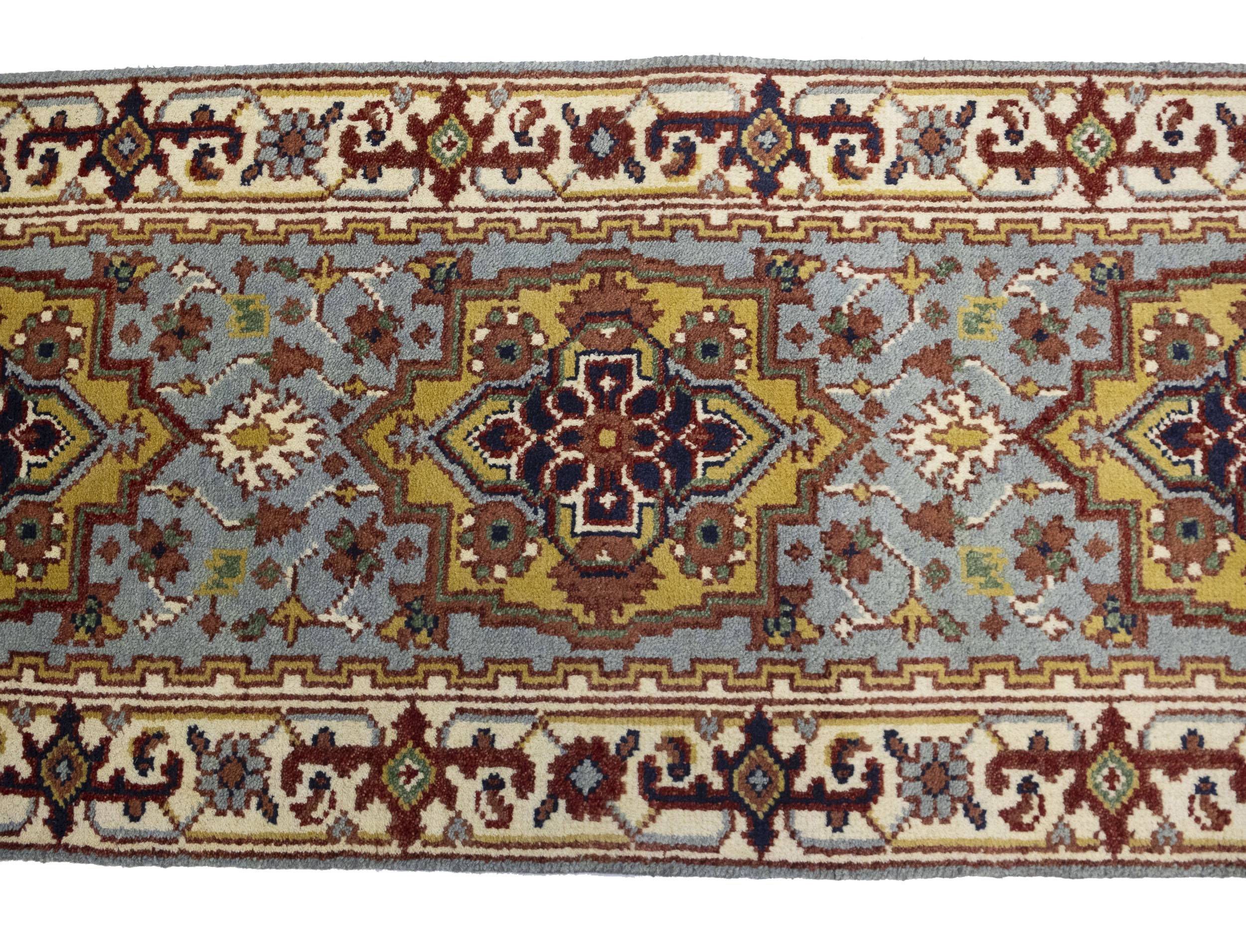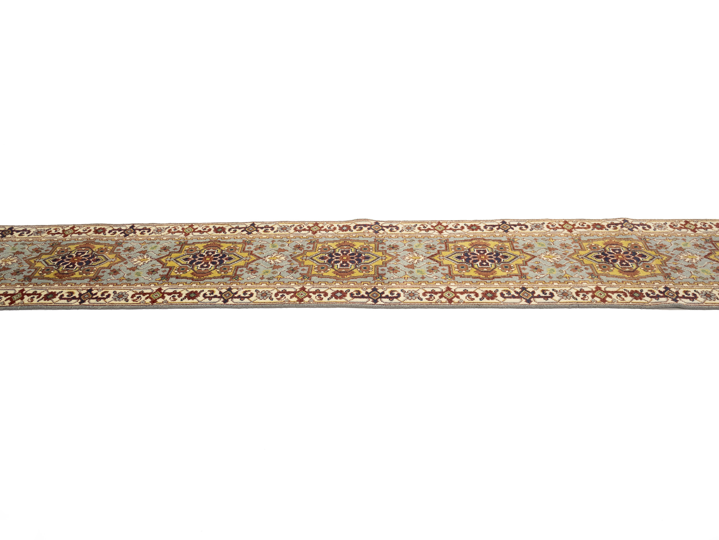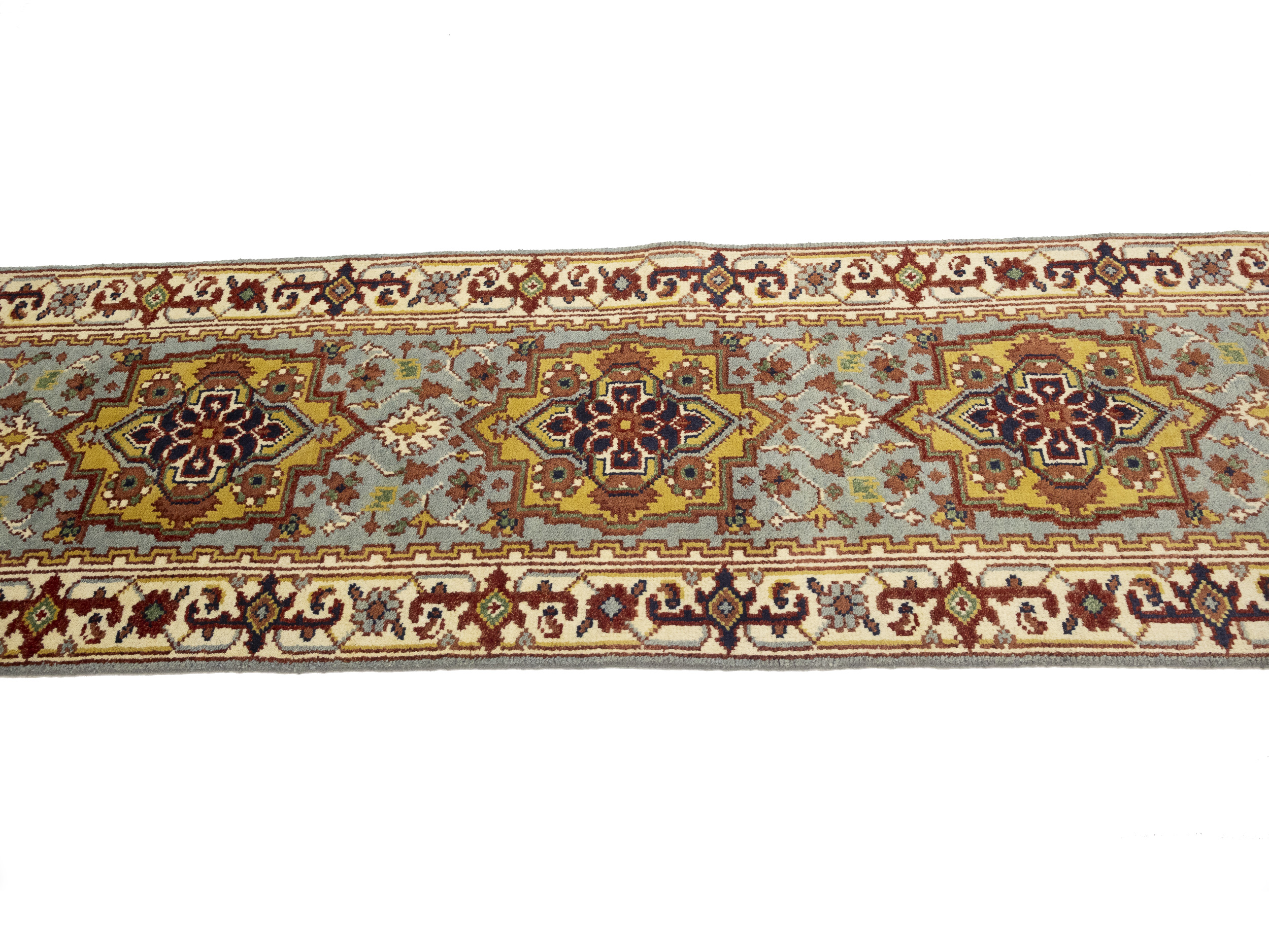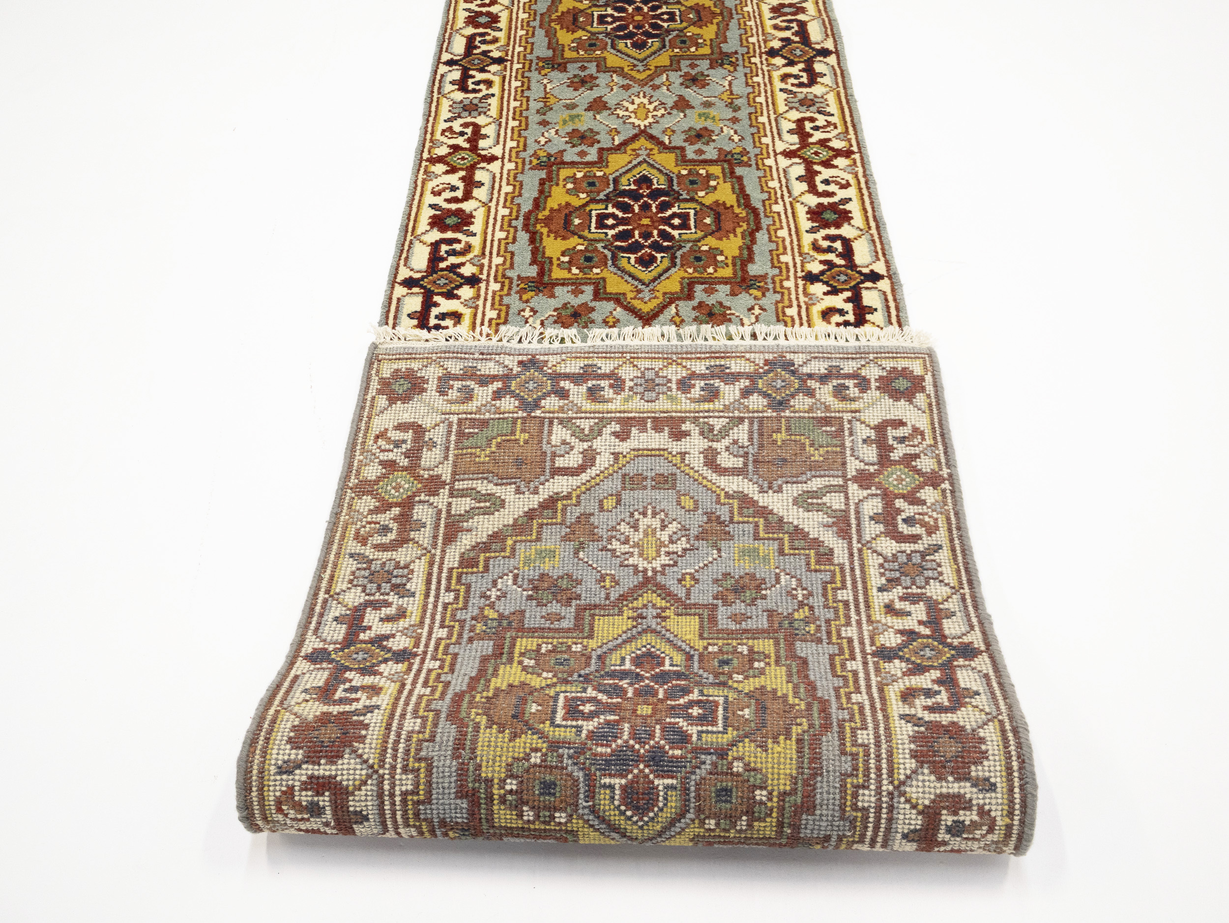 Handmade 3X16 gray Oriental runner made with vegetable dyes (fine wool pile and cotton foundation), superior knot count, and alluring ancient designs. This Oriental runner never will go out of style and would be among your most valuable treasures.