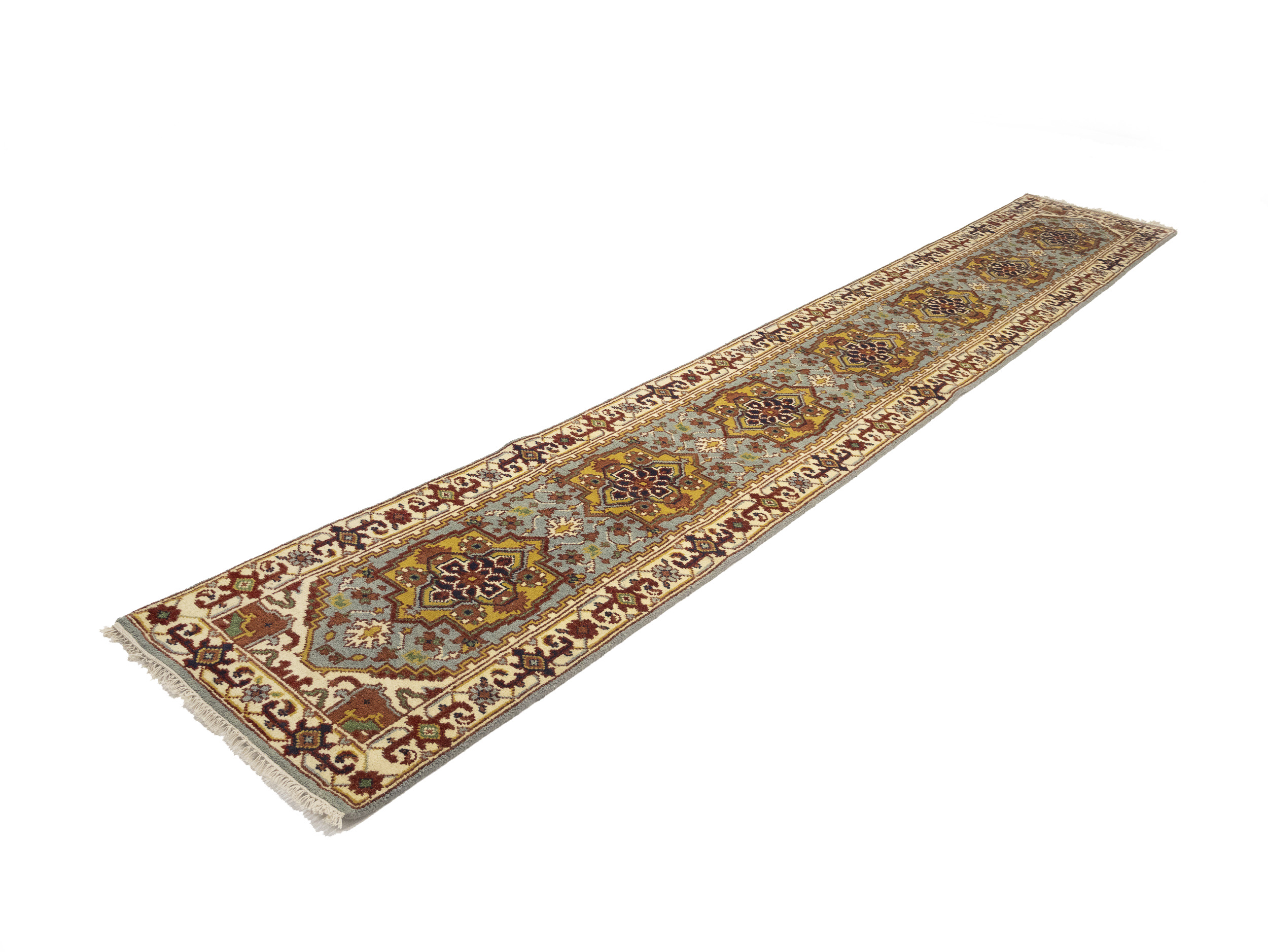Light Gray Floral 3X16 Heriz Serapi Oriental Runner Rug