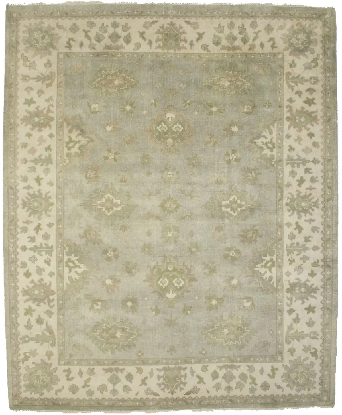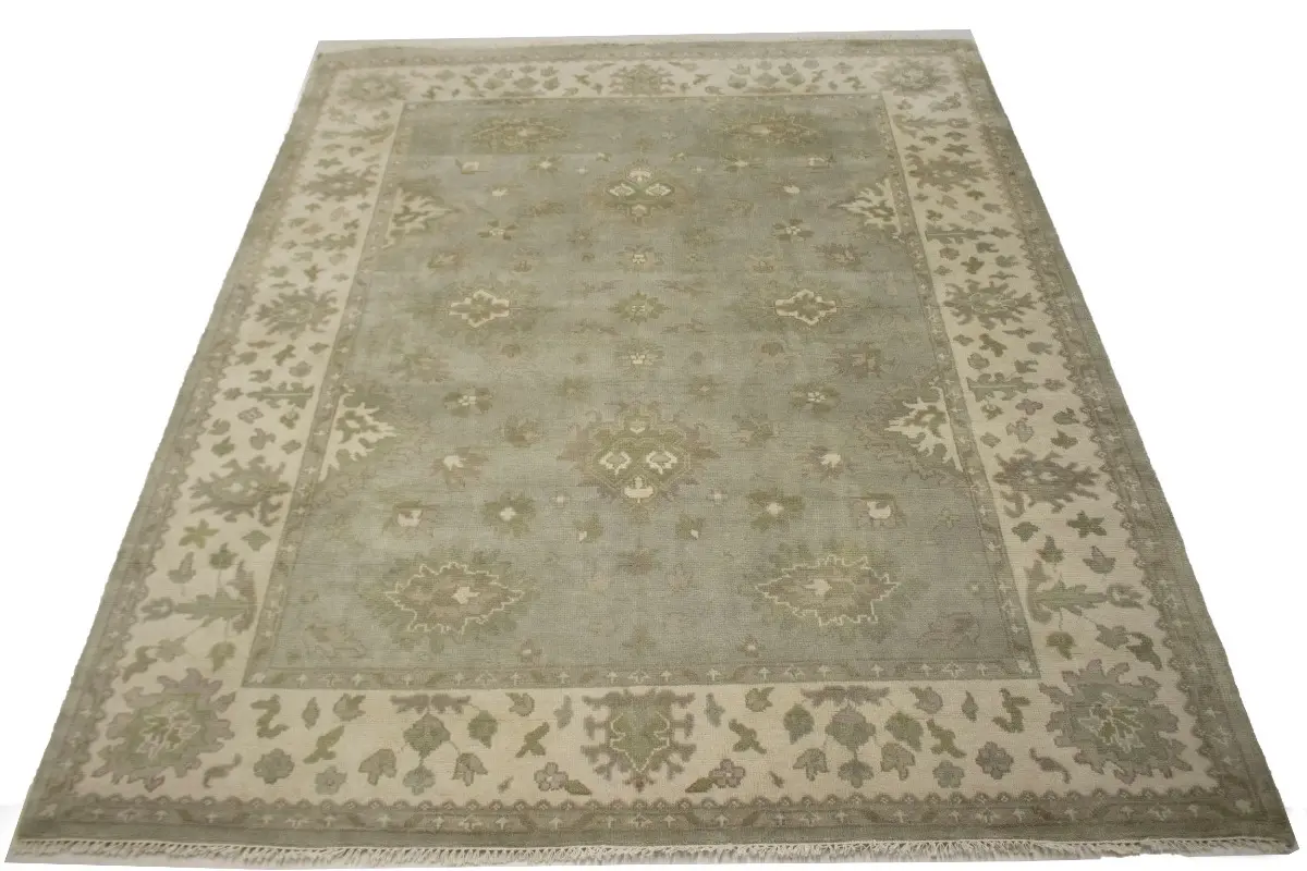 Light Gray Floral 8X10 Oushak Chobi Oriental Rug