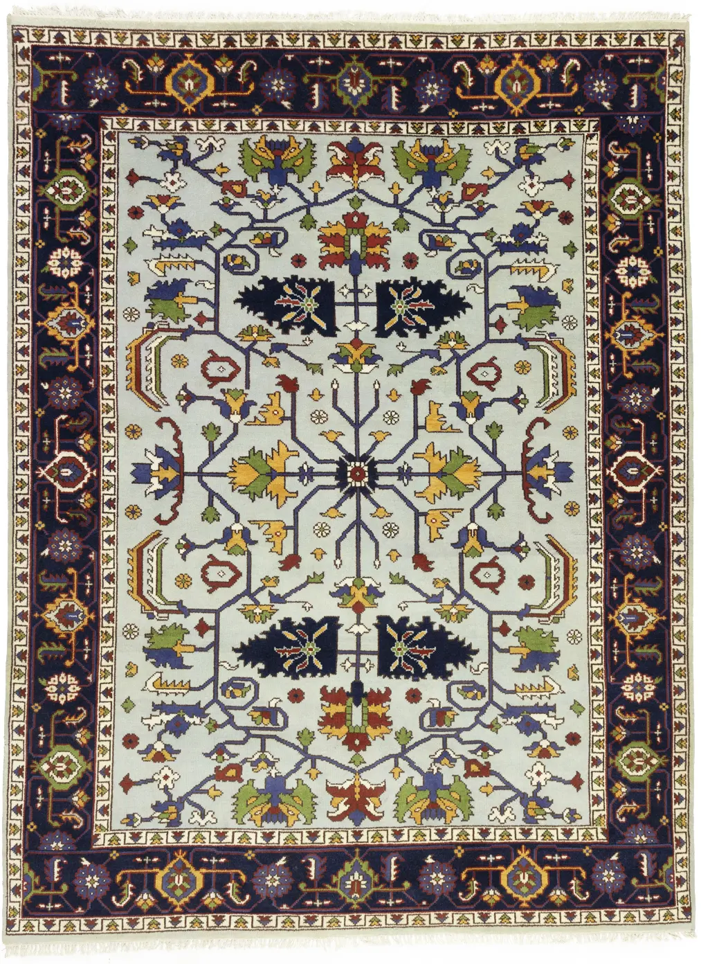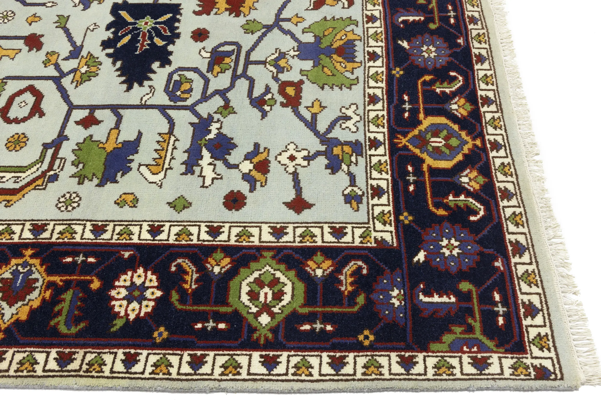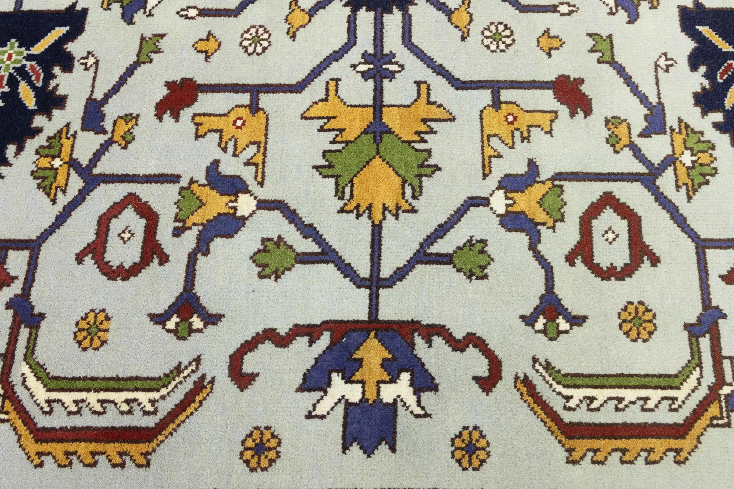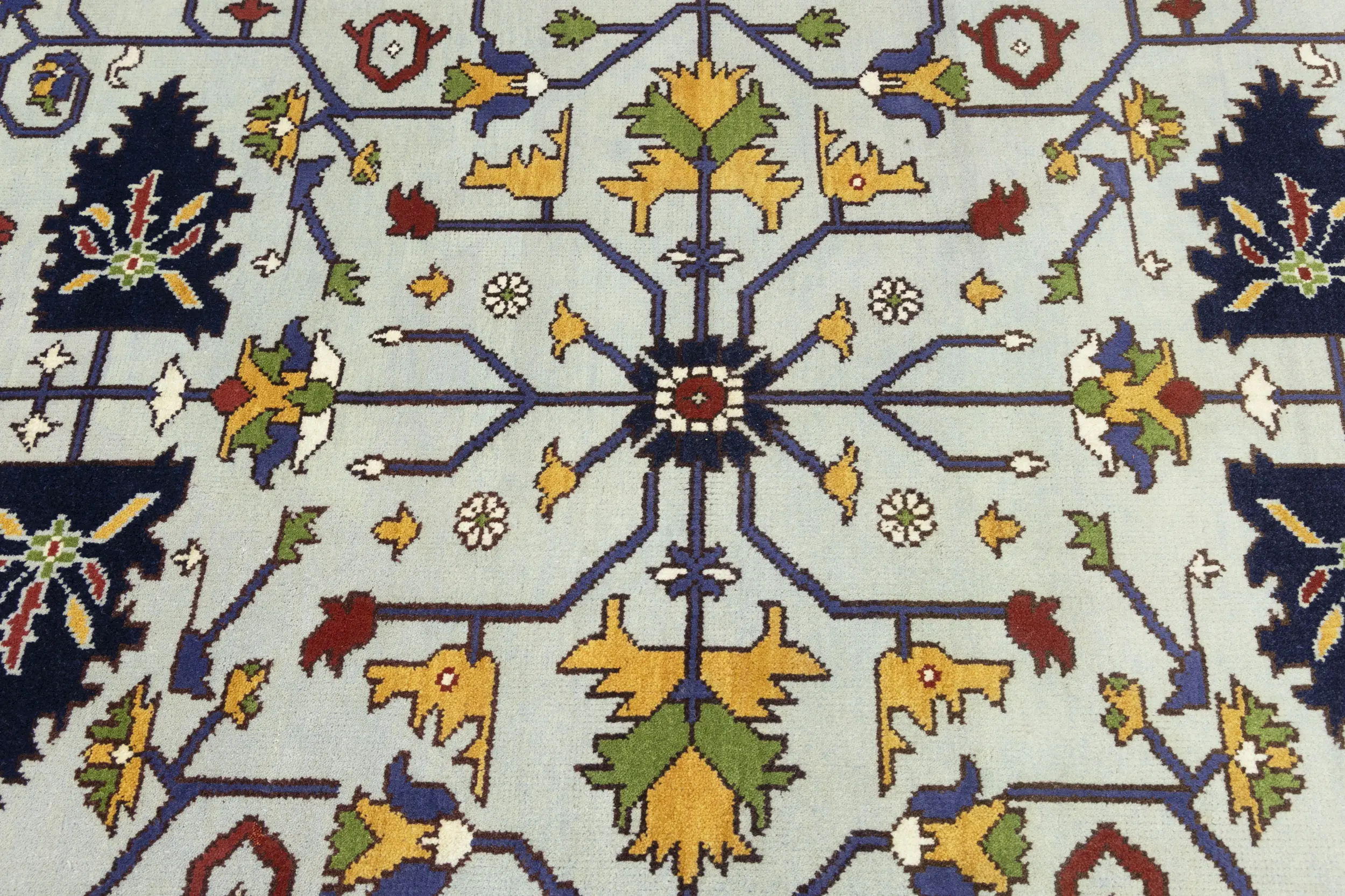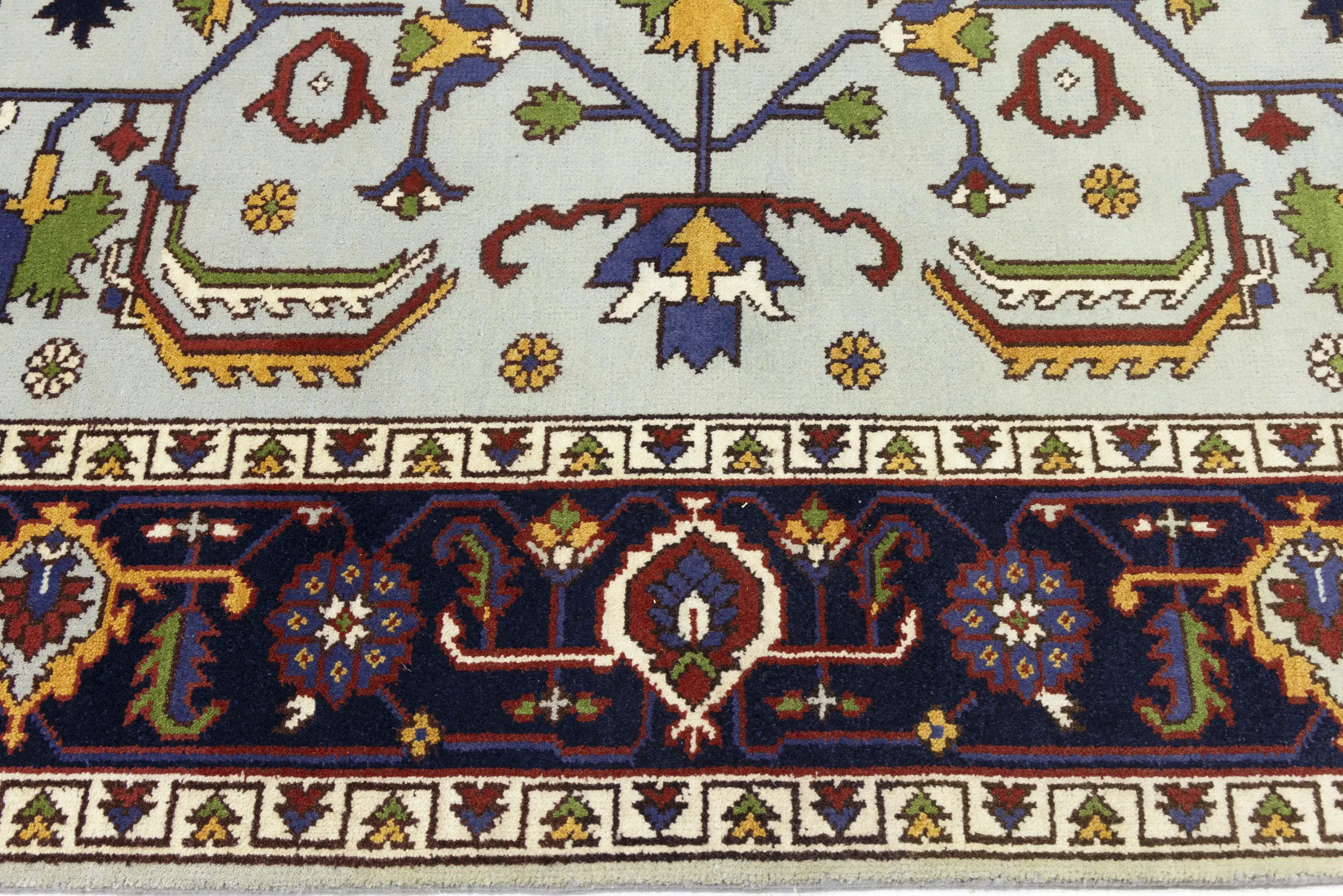 This genuine 9X12 gray new Oriental rug was made by the hands of gifted weavers inspired by a variety of spectacular artistic designs, to recreate the aged look of the original piece with a richness of color and ornately patterned background field. What set this vintage style Oriental area rug from the others are the material and dye used (wool pile and cotton foundation), knot count, ancient designs, fantastic grades, and its regional historical connection: it has deep roots, from the story of the people who produced it to the meaning of the symbols and colors displayed across its canvas that have been praised for centuries. This Indian home décor carpet will be completely cozy and inviting that never will go out of style! Also, this Oriental rug would be among your most valuable treasures, it is a great investment that accrues value over time, and it will last for generations because was woven with high-quality, all-natural wool. Environmentally friendly, opulent yet affordable; this rug will give you a thorough amount of character to help define your living space with elegance and warmth that will capture the eyes and attention of your audience (homeowners, designers, decorators, family and friends).