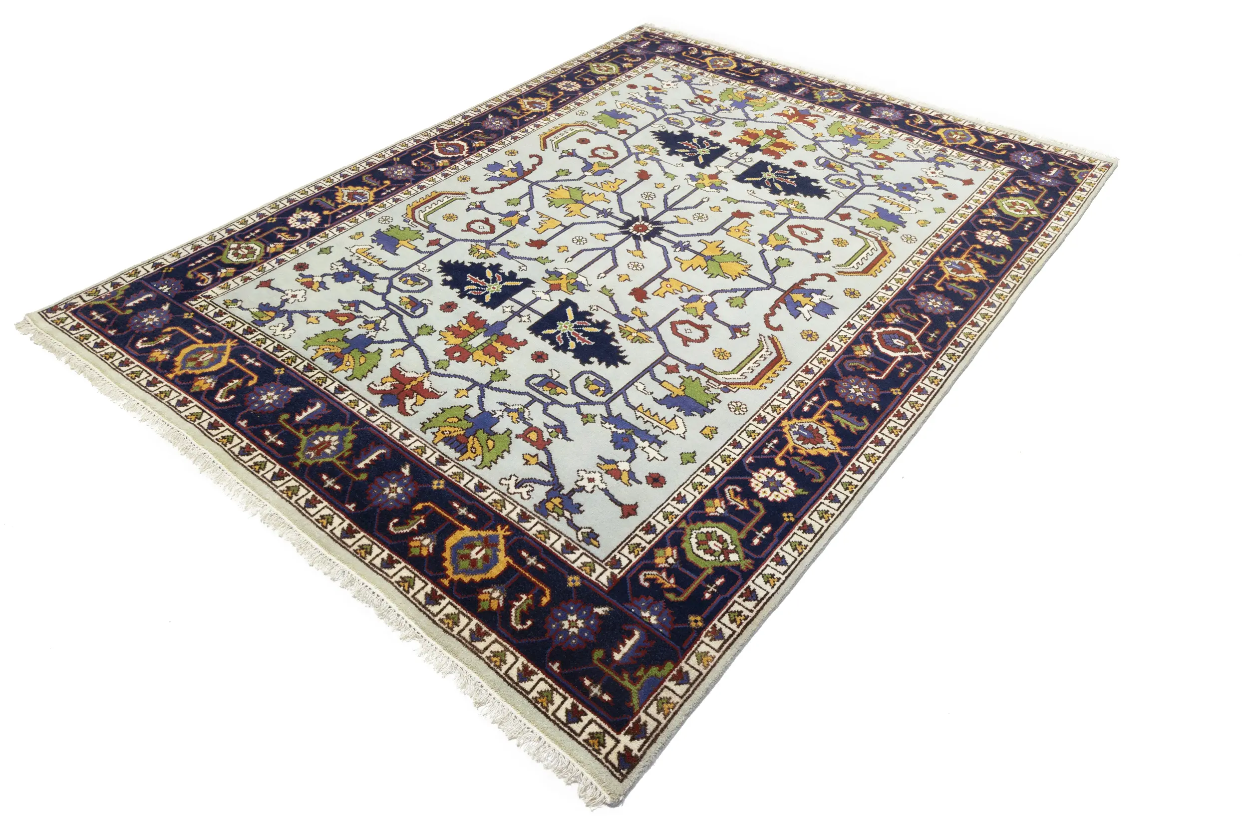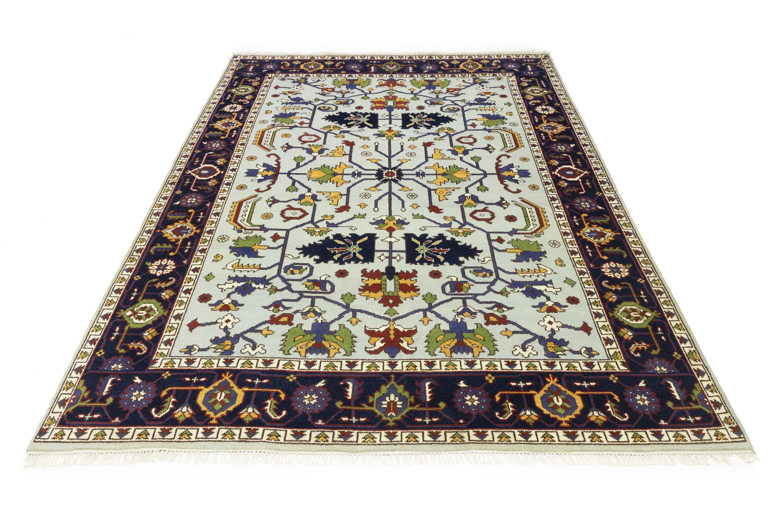 Handmade 9X12 gray oriental rug made with vegetable dyes (fine wool pile and cotton foundation), superior knot count, and appealing ancient designs. This Oriental rug never will go out of style and would be among your most valuable treasures.