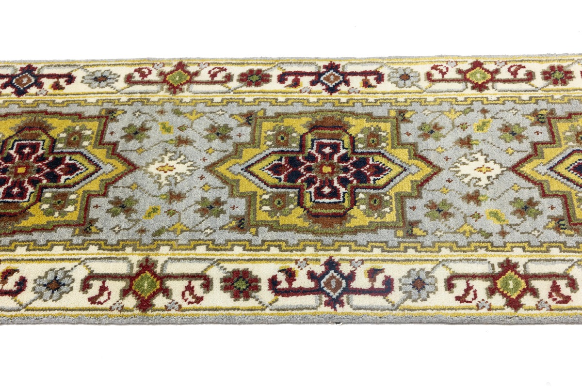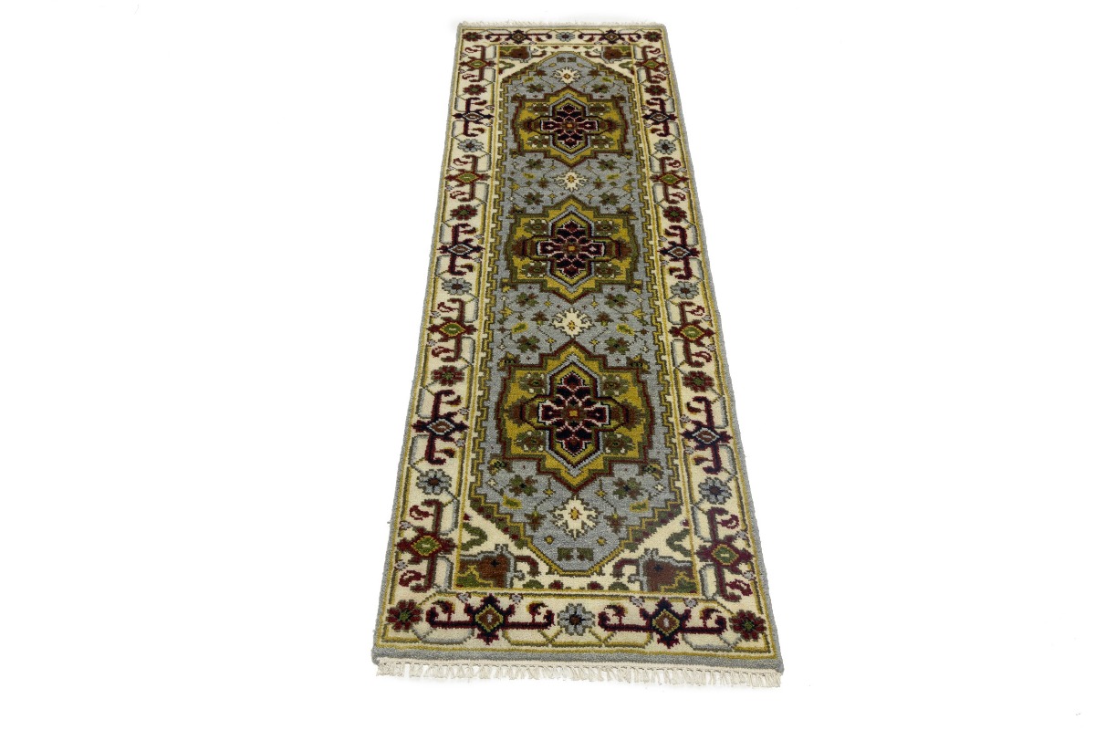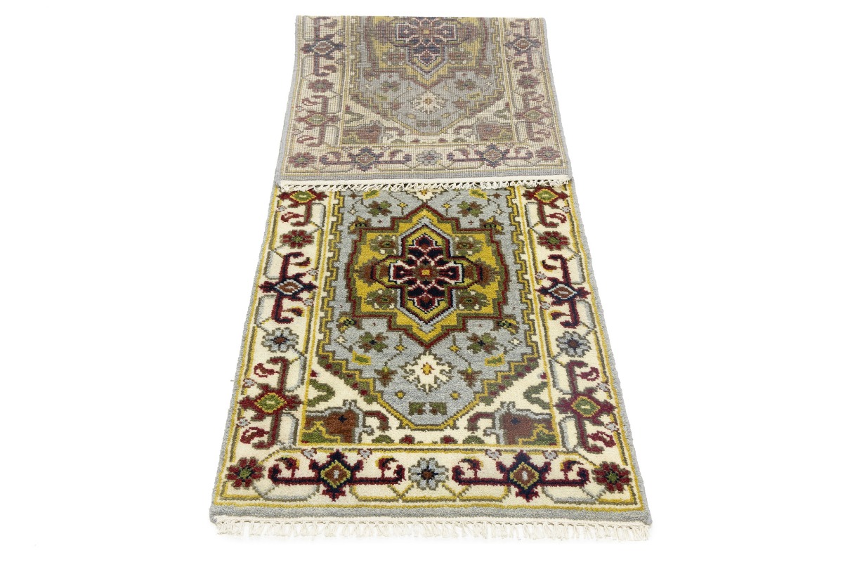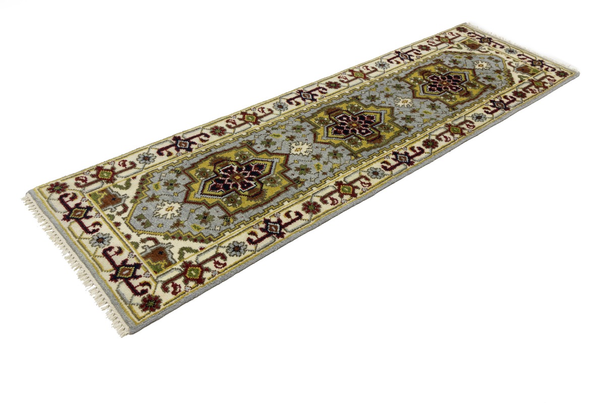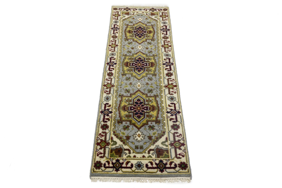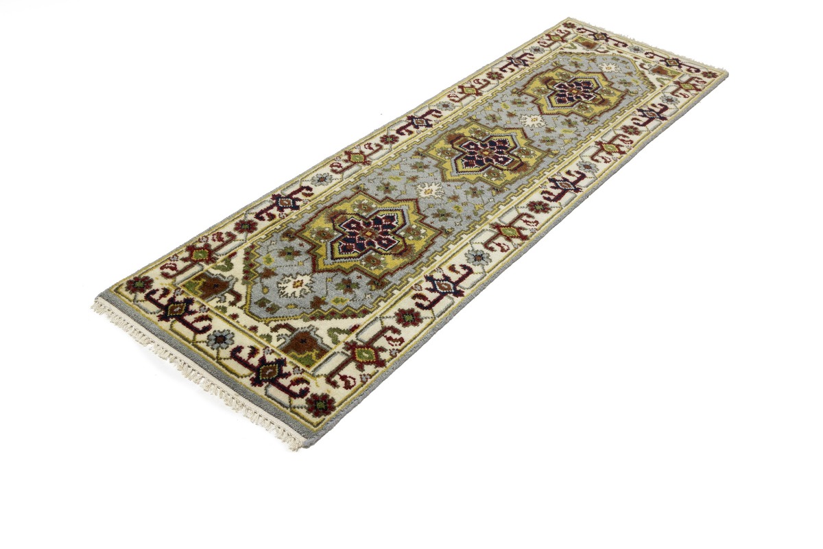 Handmade 2'5X8'0 gray oriental runner made with natural dyes (fine wool pile and cotton foundation), superior knot count, and appealing ancient designs. This Oriental runner never will go out of style and would be among your most valuable treasures.