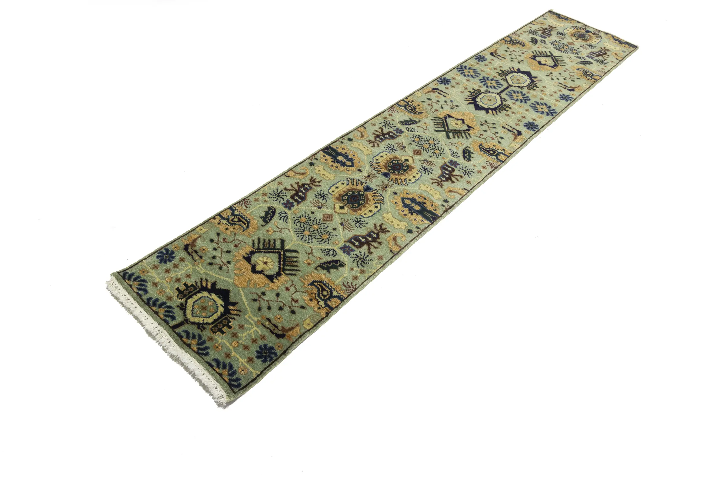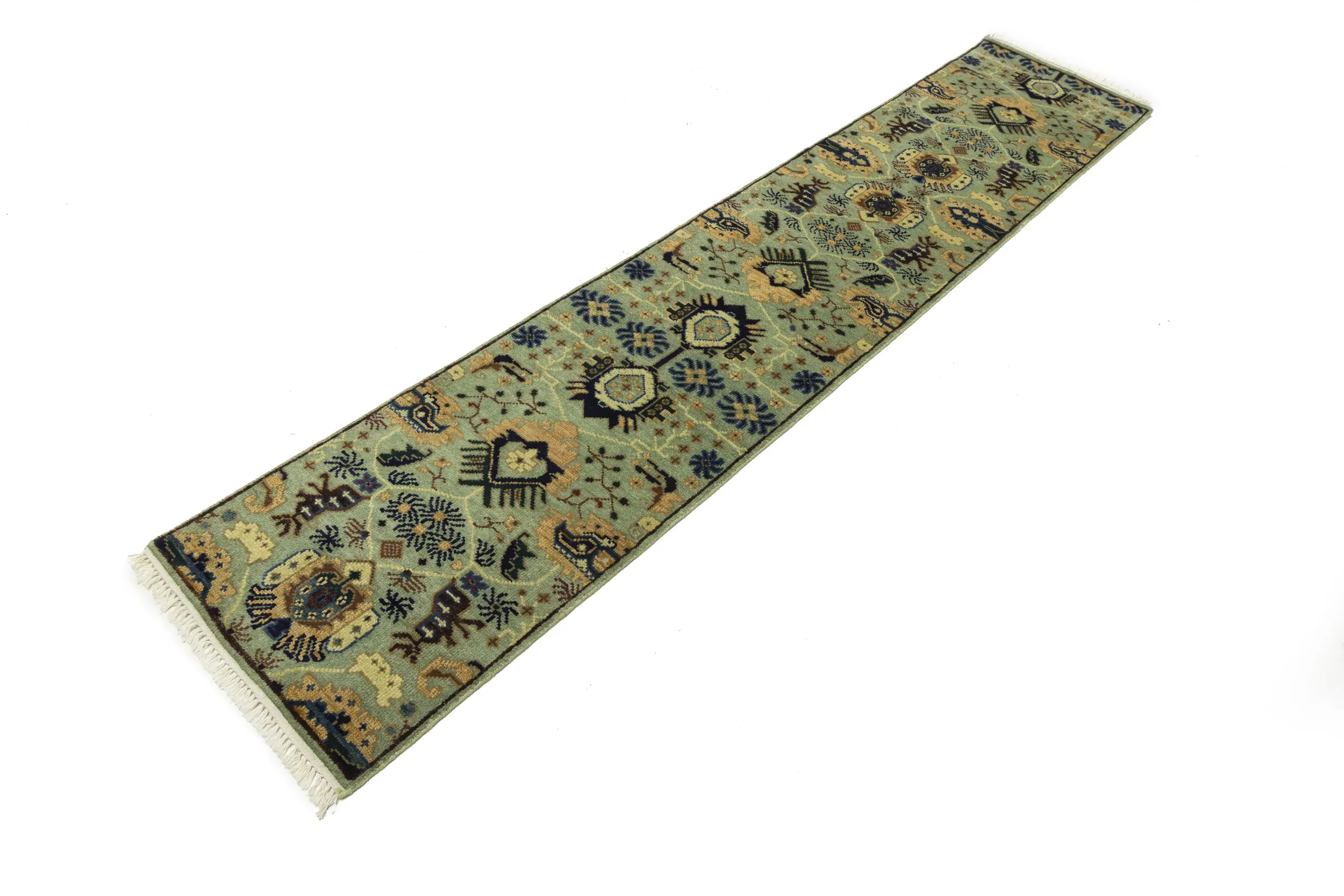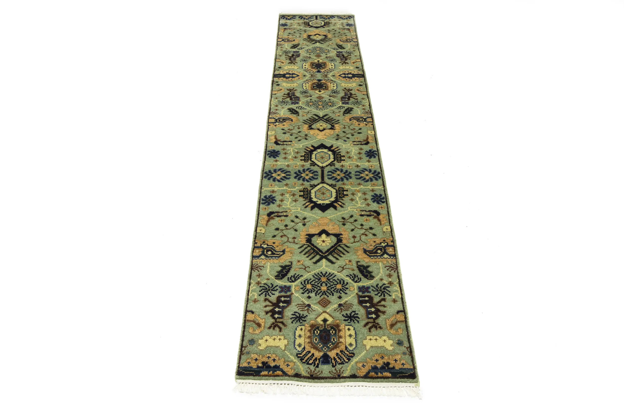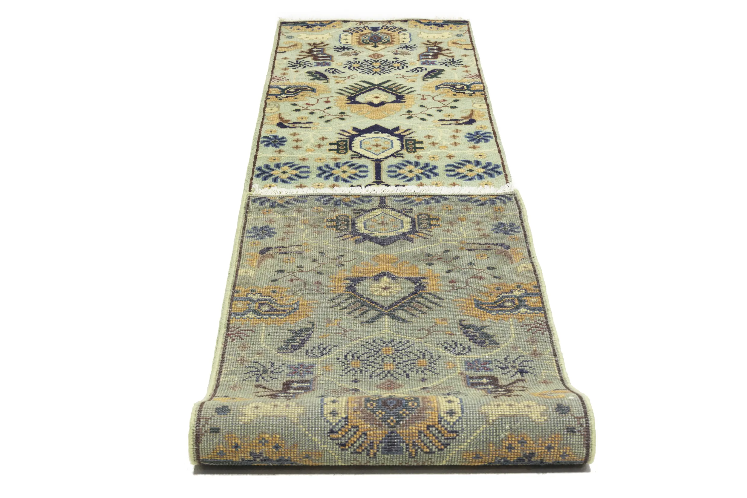 Handmade 3X12 gray Oriental runner made with vegetable dyes (fine wool pile and cotton foundation), superior knot count, and appealing ancient designs. This Oriental runner never will go out of style and would be among your most valuable treasures.