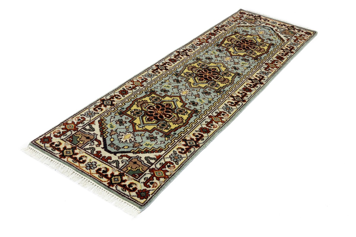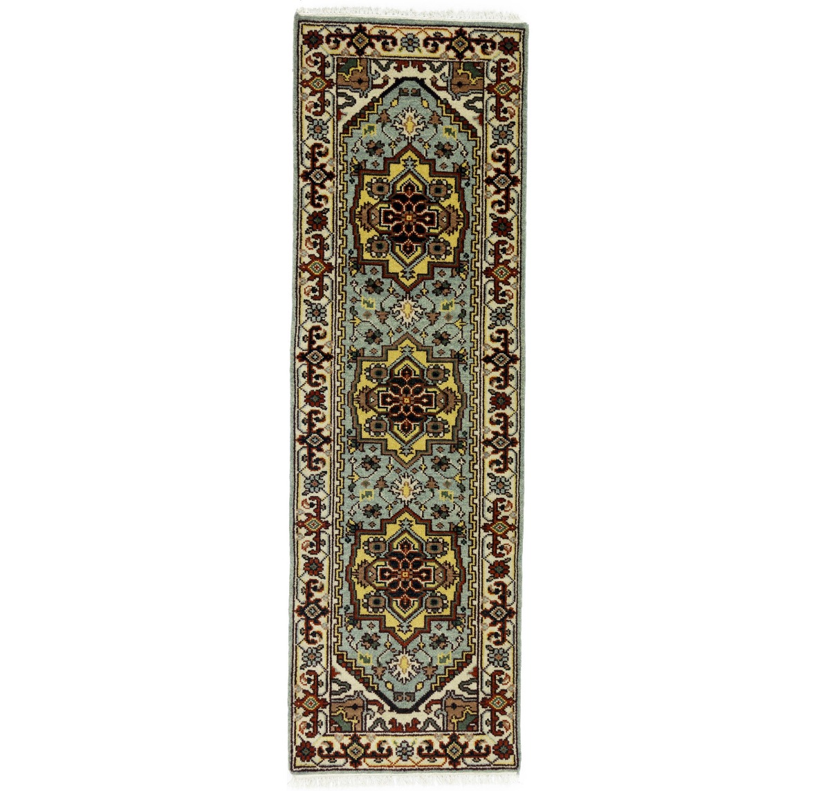 This original 3X8 gray new Oriental runner was finely knotted by the hands of weavers influenced by a variety of amazing artistic designs, to recreate the aged look of the exceptional piece with a richness of color and embellished background field. What set this vintage style Oriental area runner from the others are the material and dye used (wool pile and cotton foundation), knot count, antique designs, fantastic grades, and its regional historical connection: it has deep roots, from the story of the people who produced it to the meaning of the symbols and colors displayed across its canvas that have been praised for centuries. This Indian home décor carpet will be completely cozy and inviting that never will go out of style! Also, this Oriental rug would be among your most valuable treasures, it is a great investment that increase in value over time, and it will last a lifetime because was woven with high-quality, all-natural wool. Eco-friendly, opulent yet affordable; this runner will give you an extra pop of character to help define your home environment with luxury and warmth that will capture the eyes and attention of your audience (homeowners, designers, decorators, family and friends). OT-8040