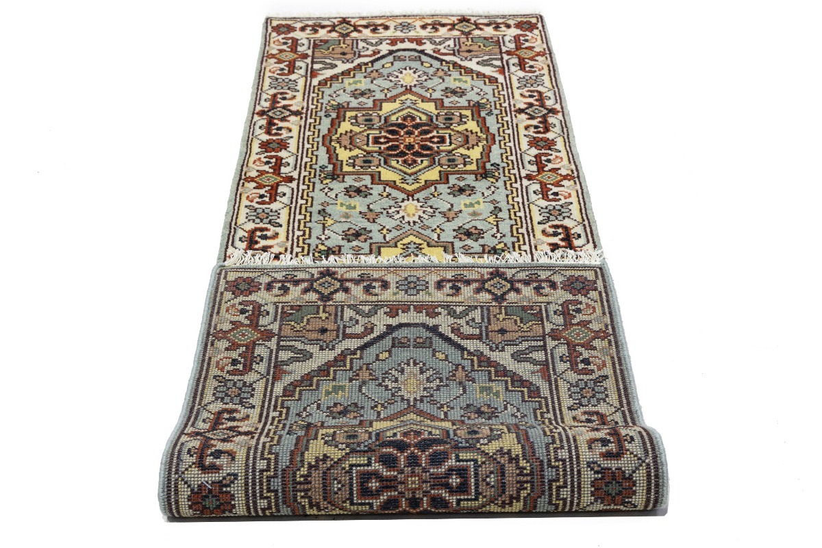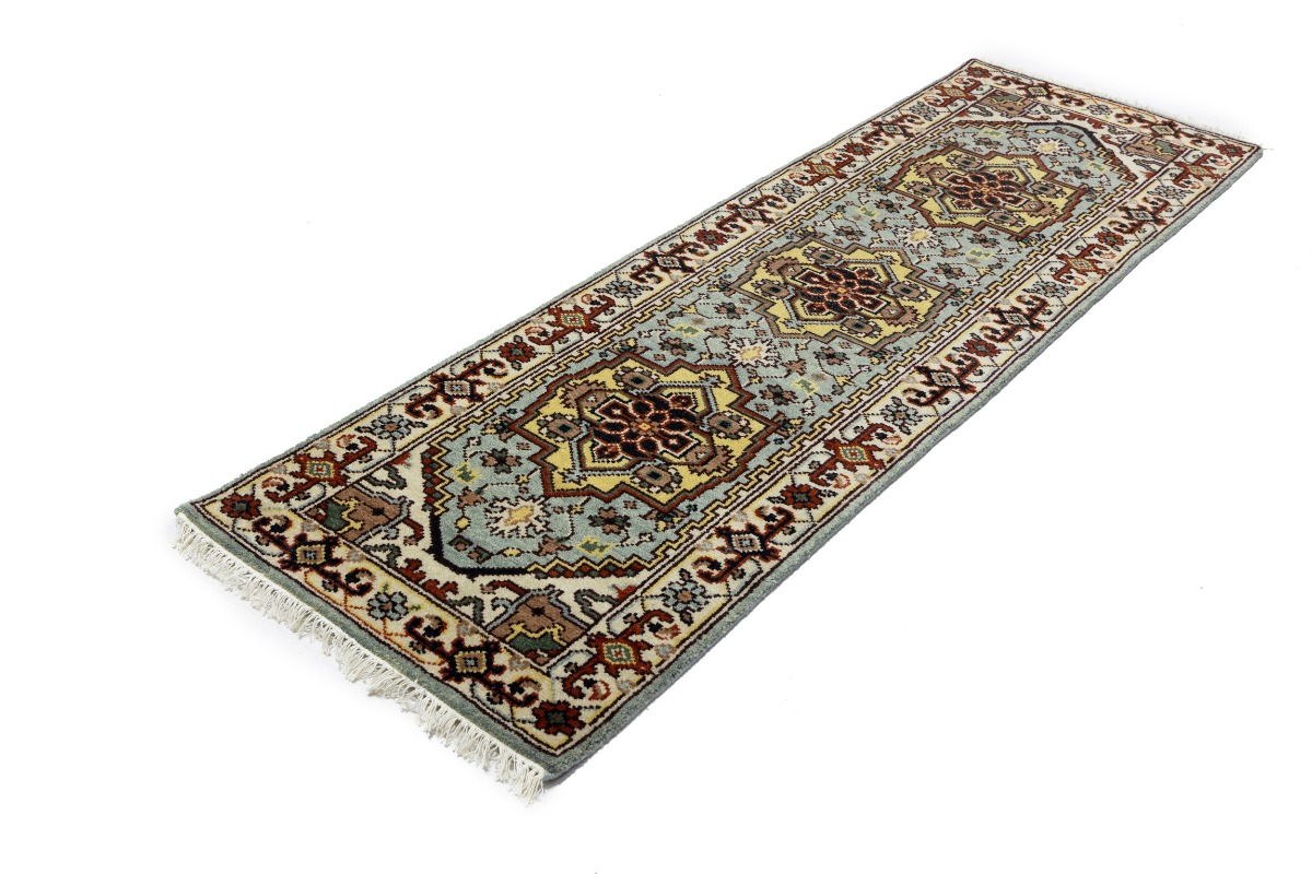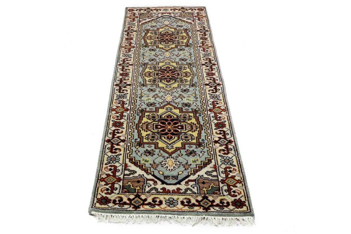 Handmade 3X8 gray oriental runner made with vegetable dyes (fine wool pile and cotton foundation), superior knot count, and appealing ancient designs. This Oriental runner never will go out of style and would be among your most valuable treasures.