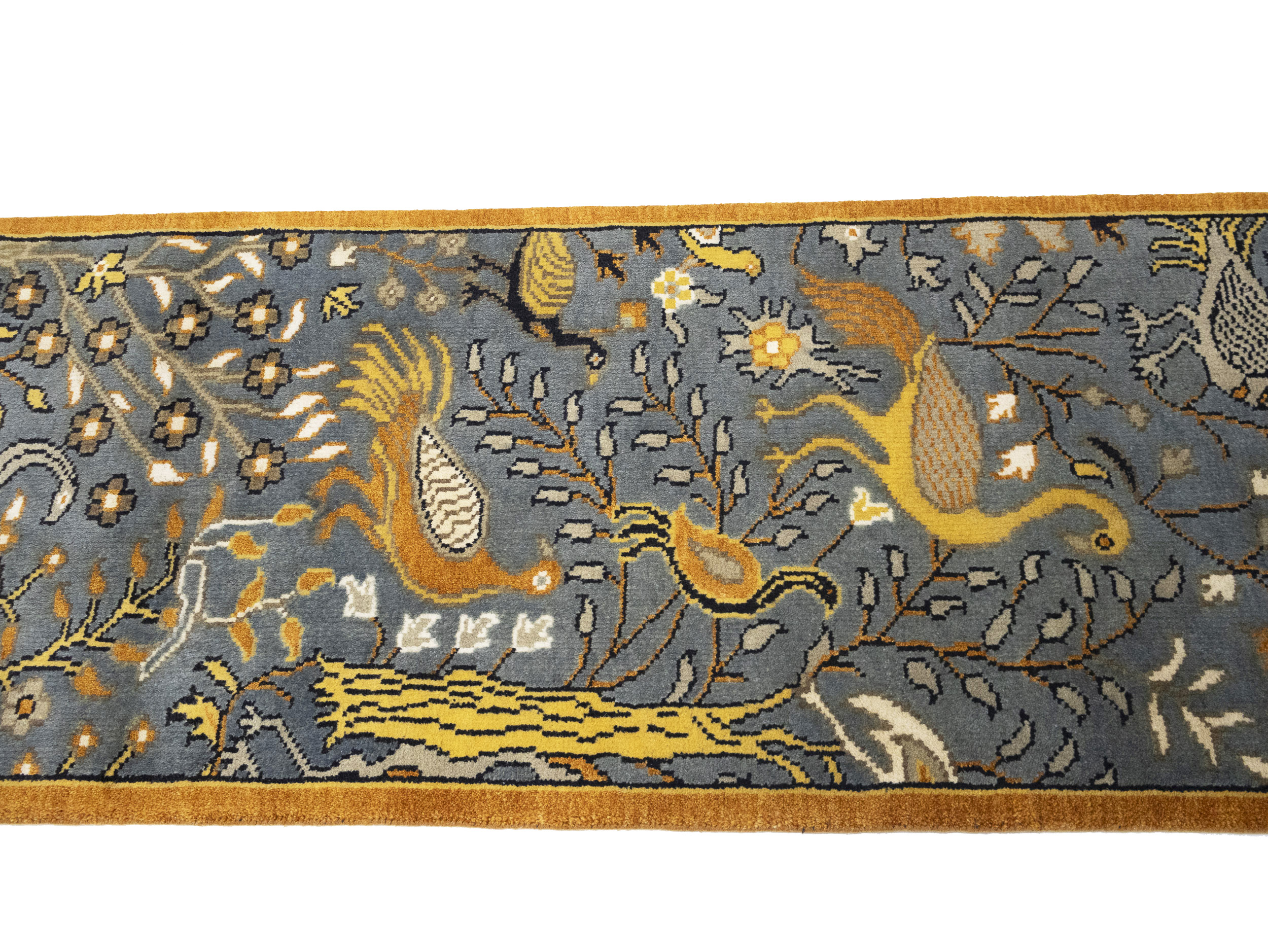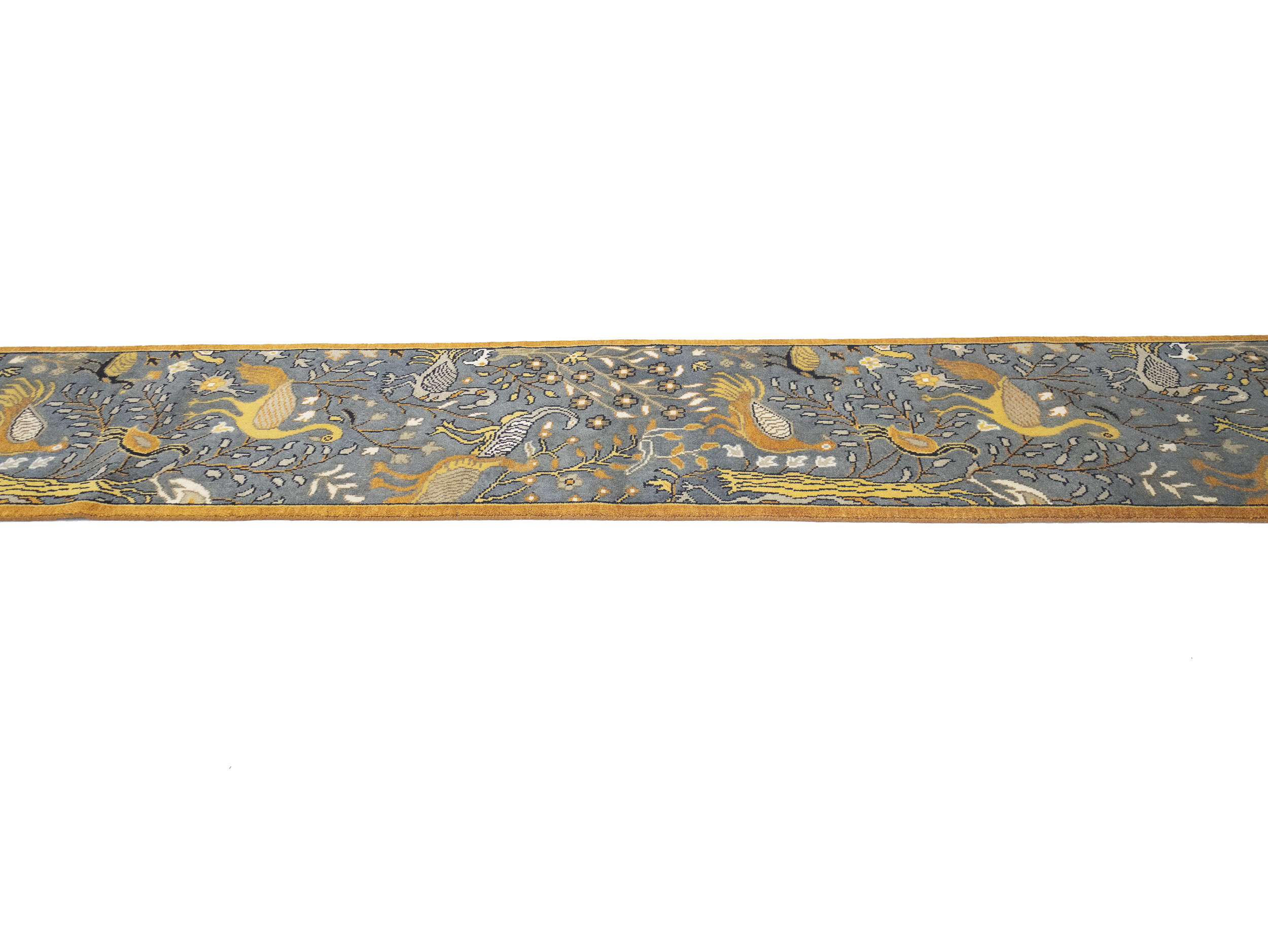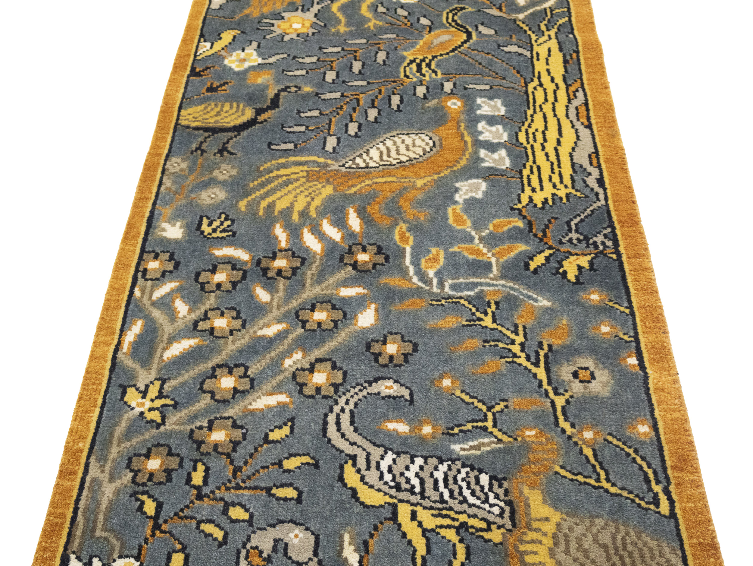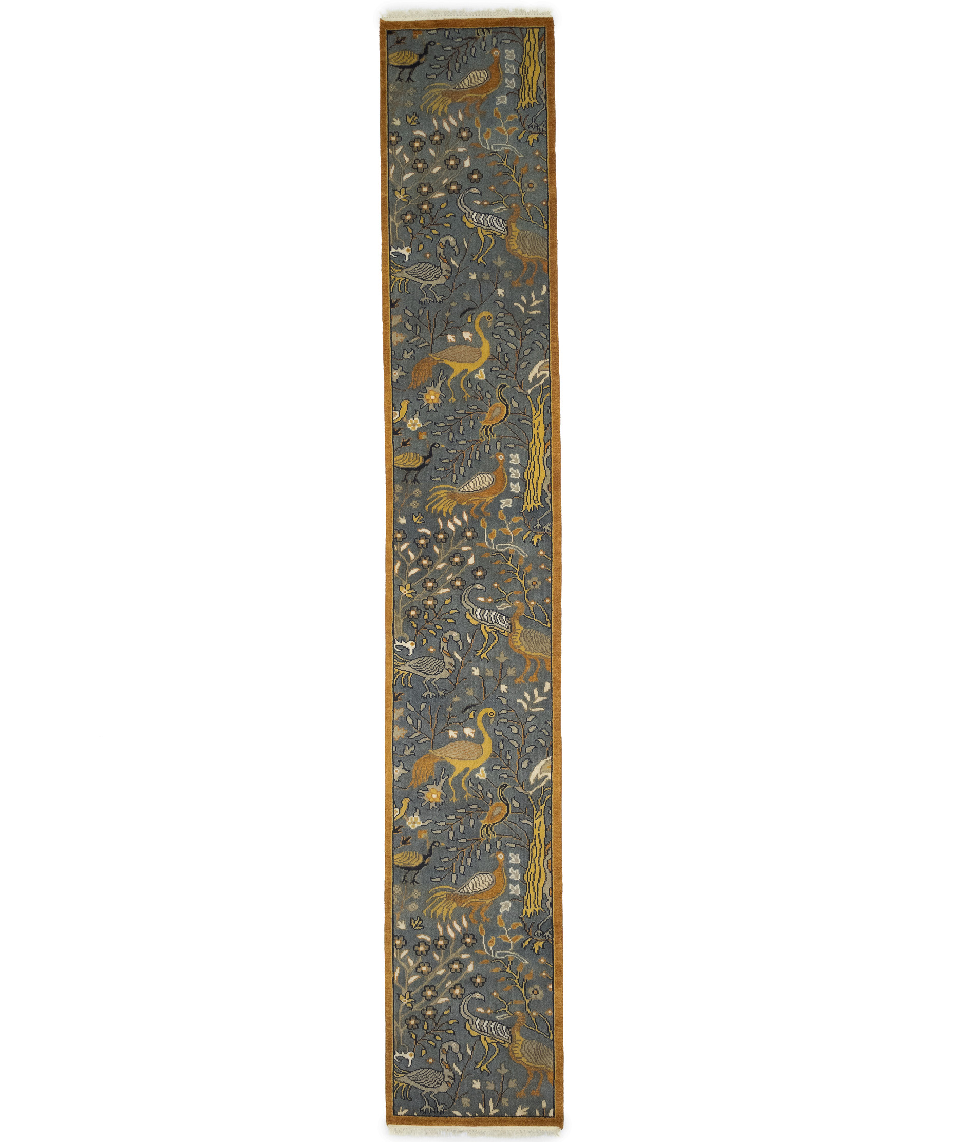 Handmade 2'6X16 gray oriental runner made with vegetable dyes (fine wool pile and cotton foundation), exceptional knot count, and appealing ancient designs. This Oriental runner never will go out of style and would be among your most valuable treasures.