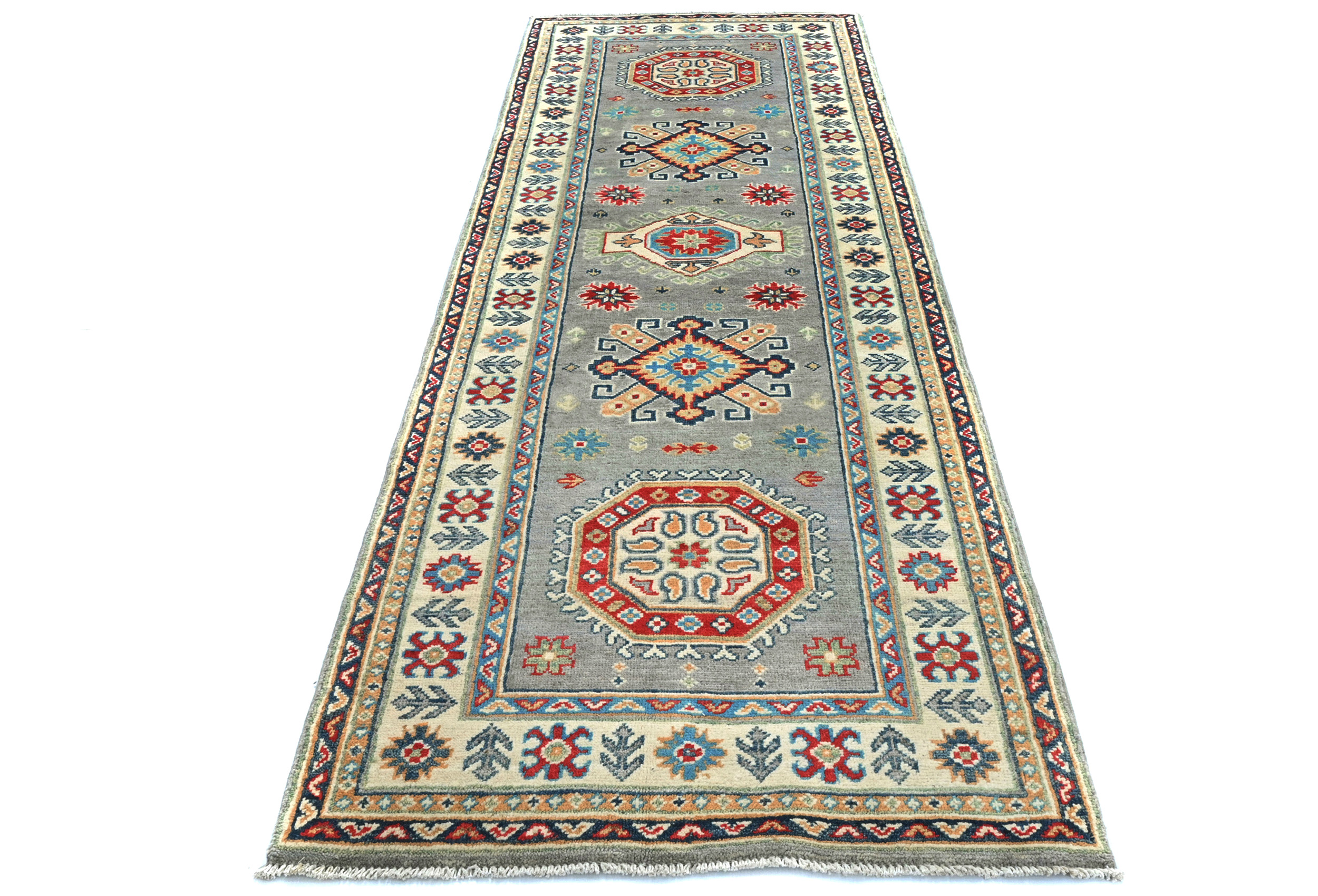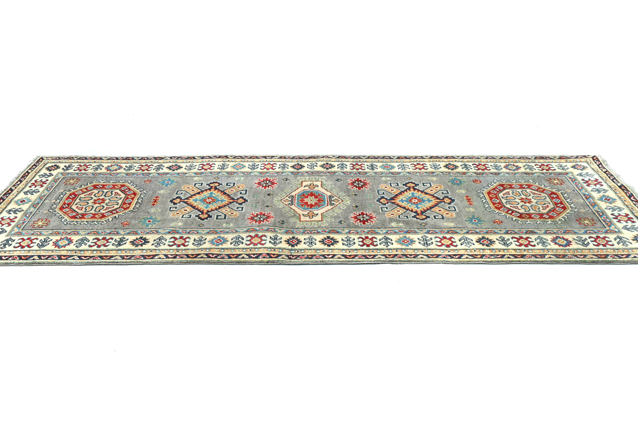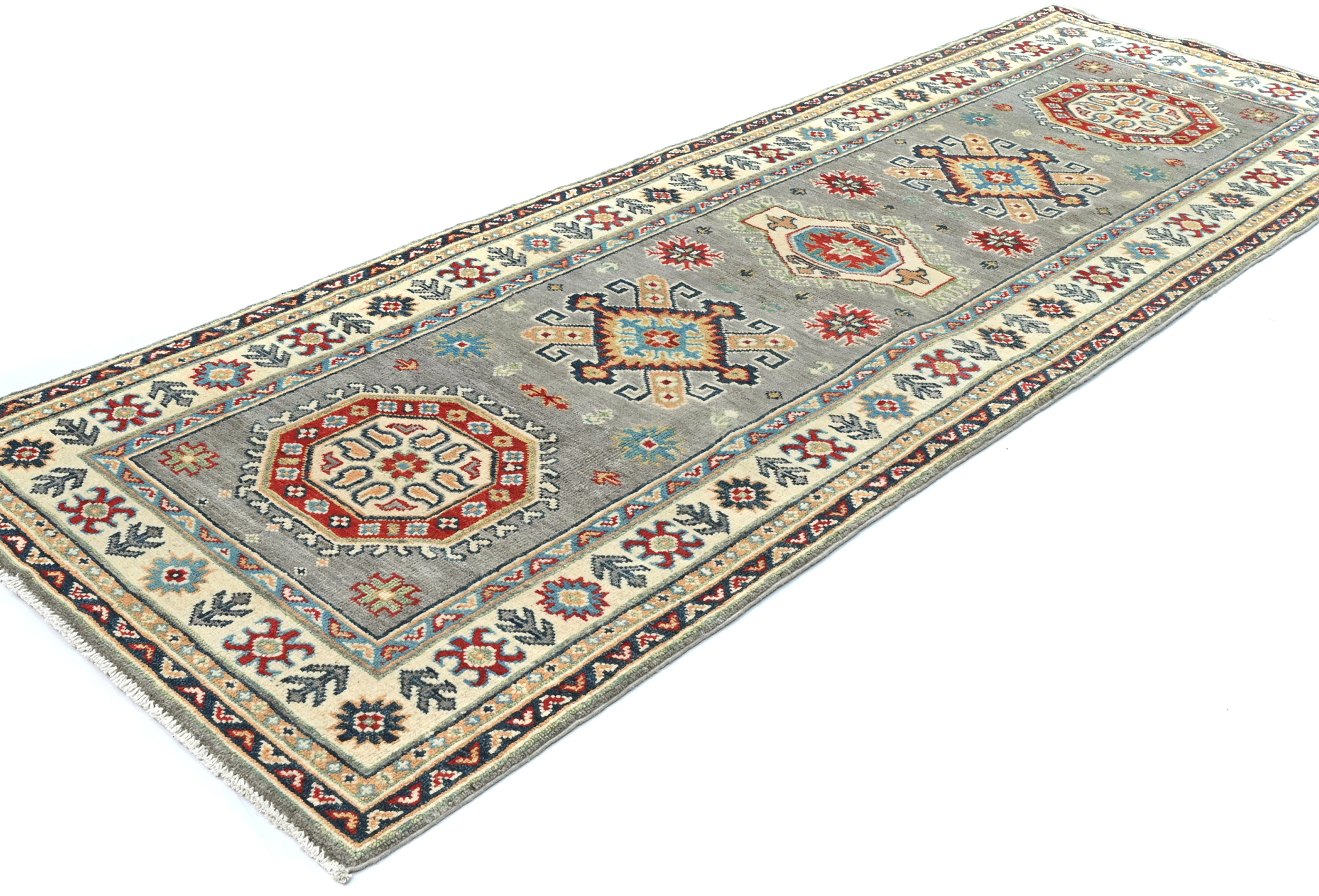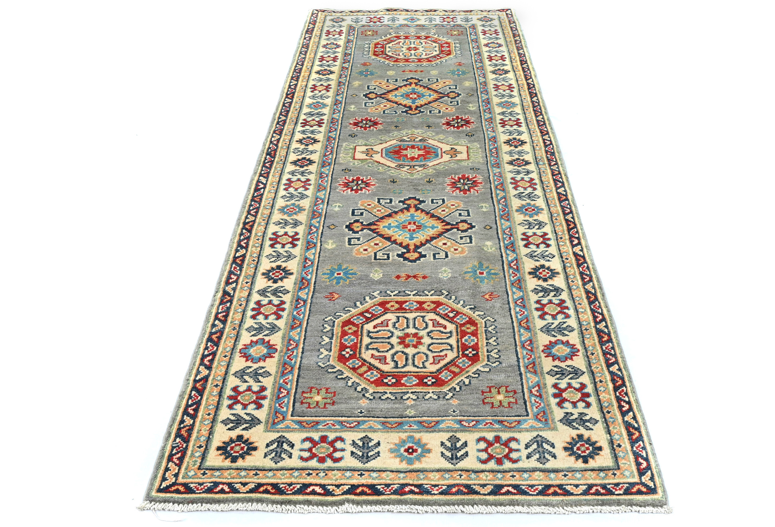 Light Gray Tribal Geometric 3X8 Kazak Pakistan Oriental Runner Rug
