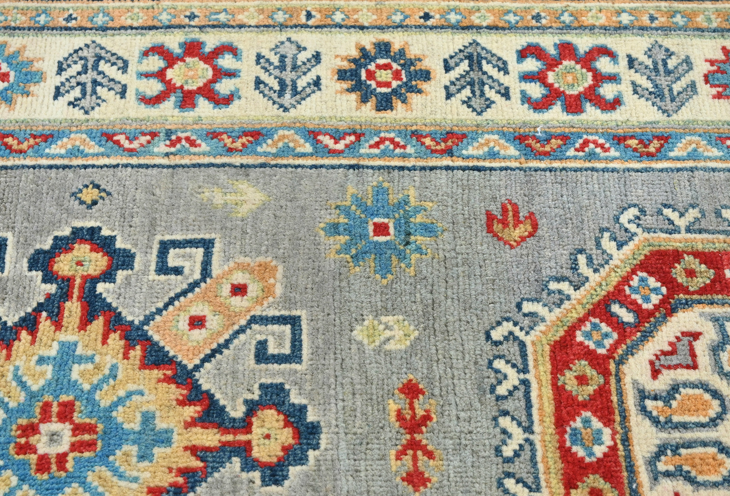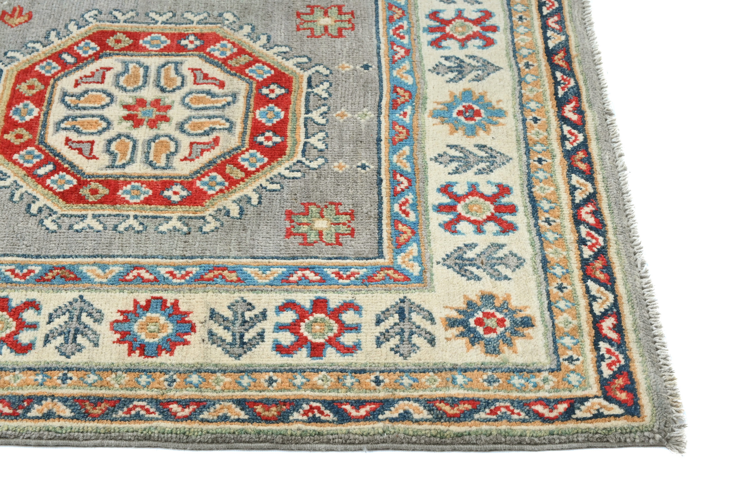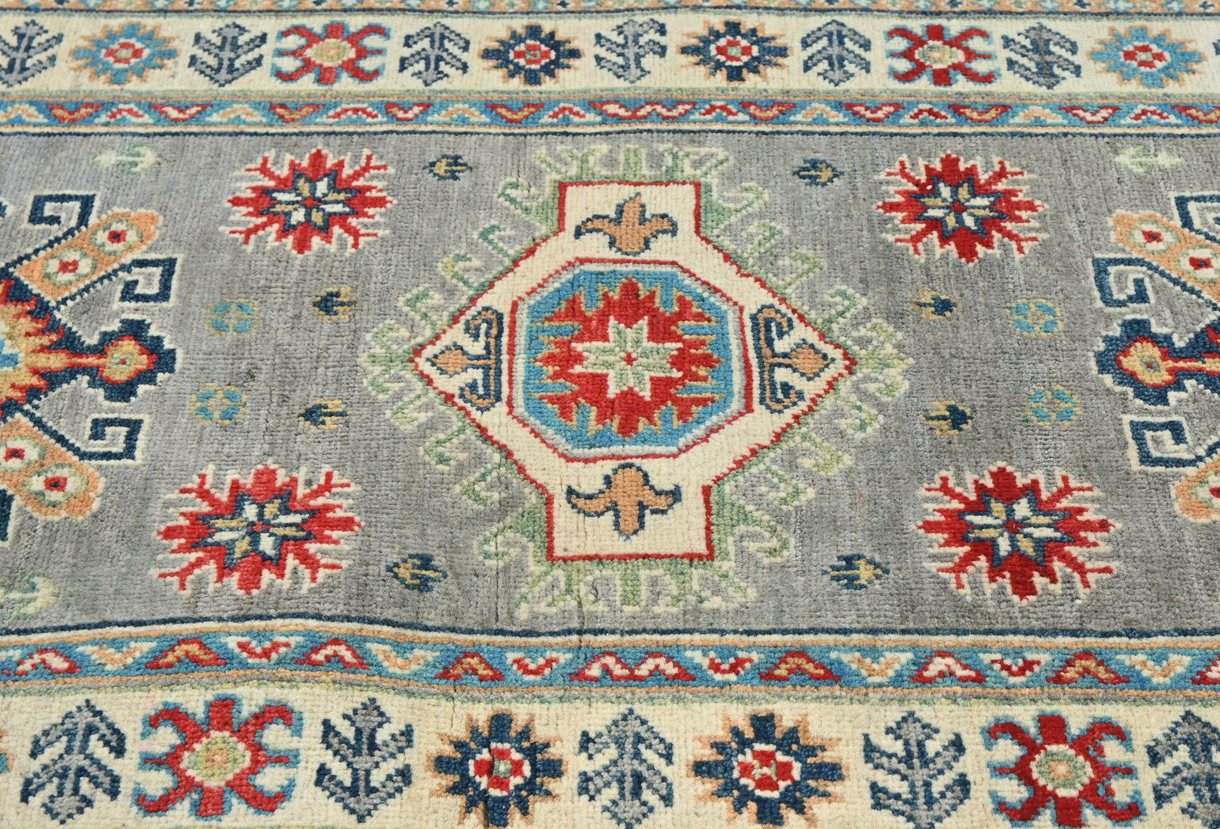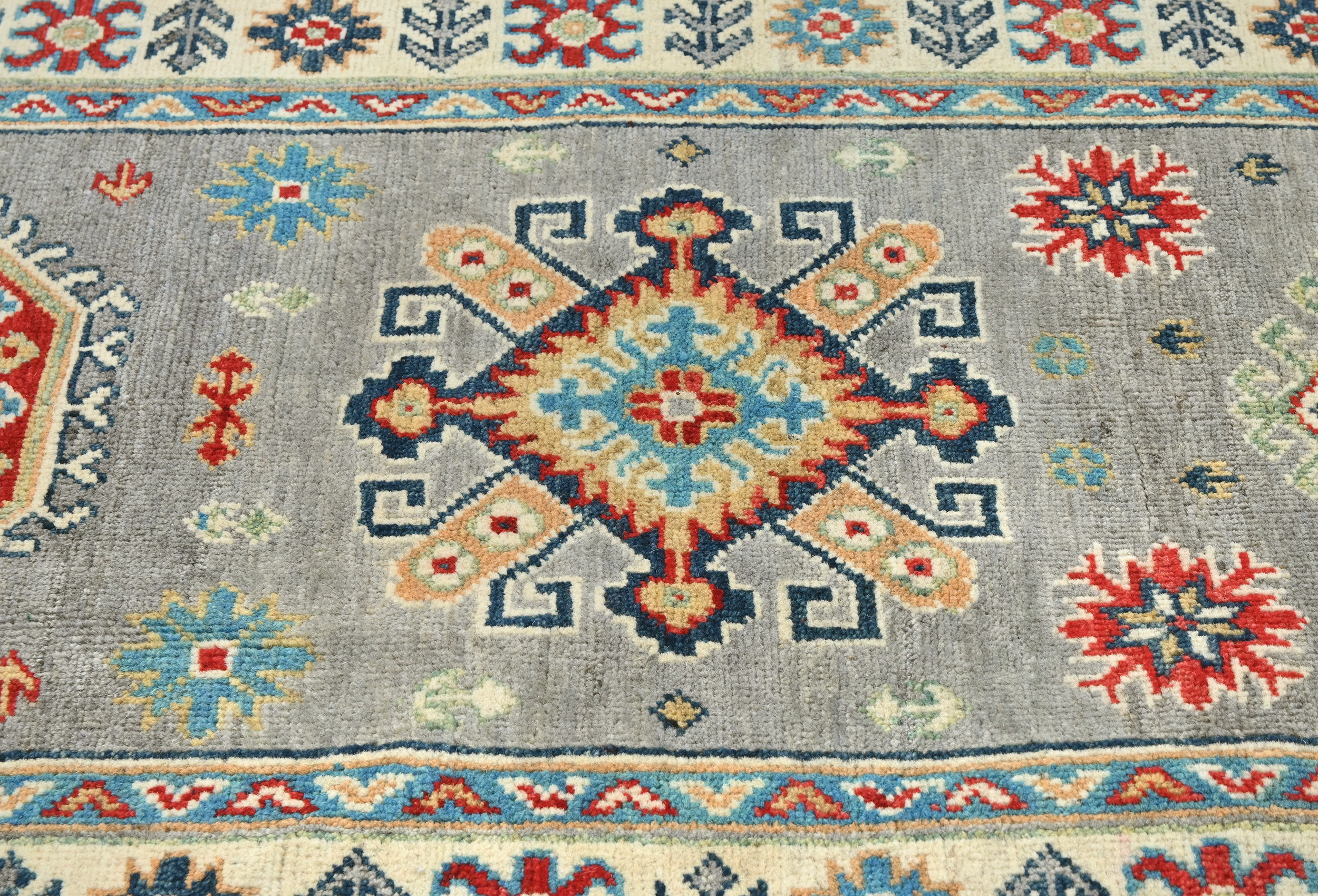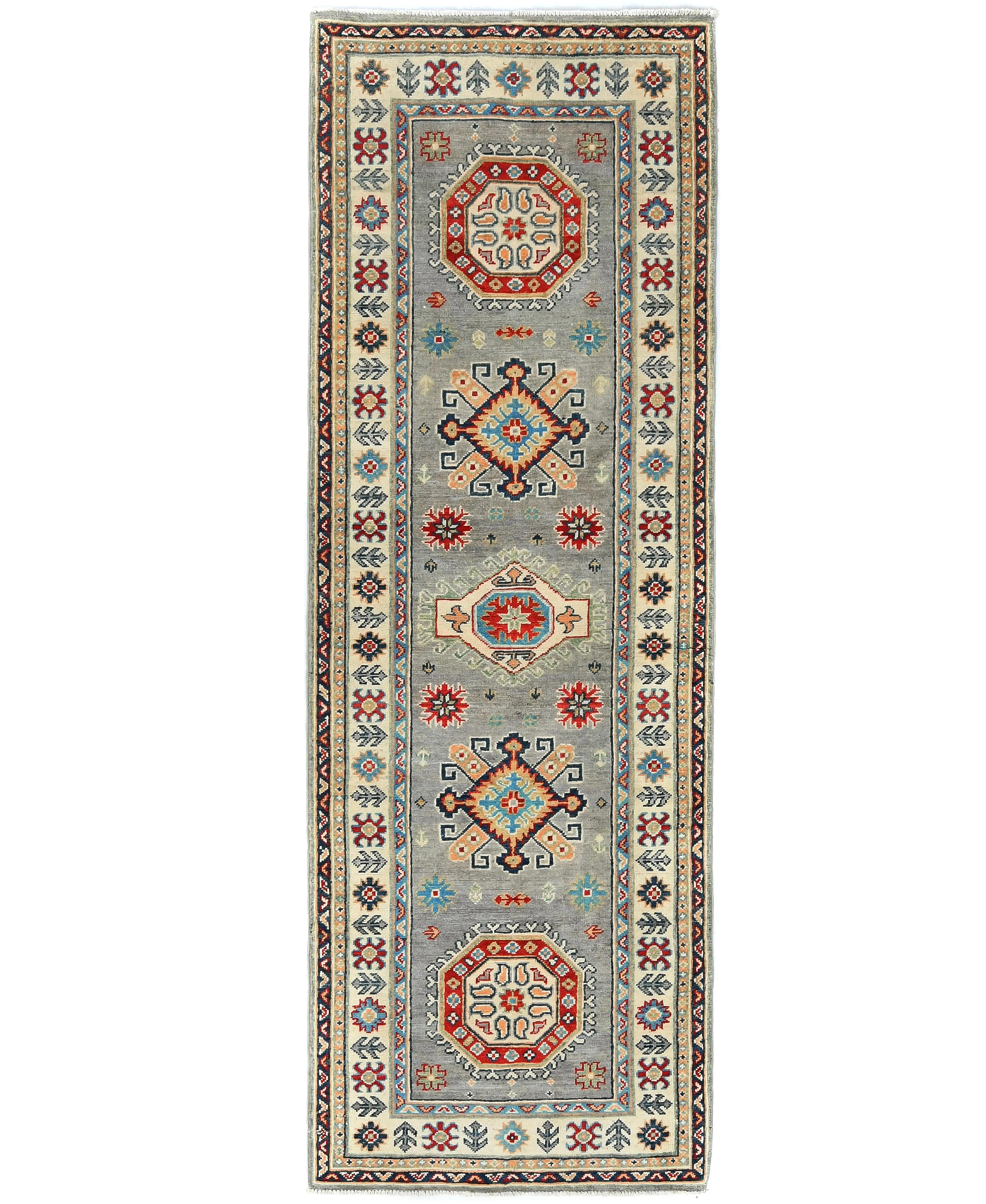 Light Gray Tribal Geometric 3X8 Kazak Pakistan Oriental Runner Rug