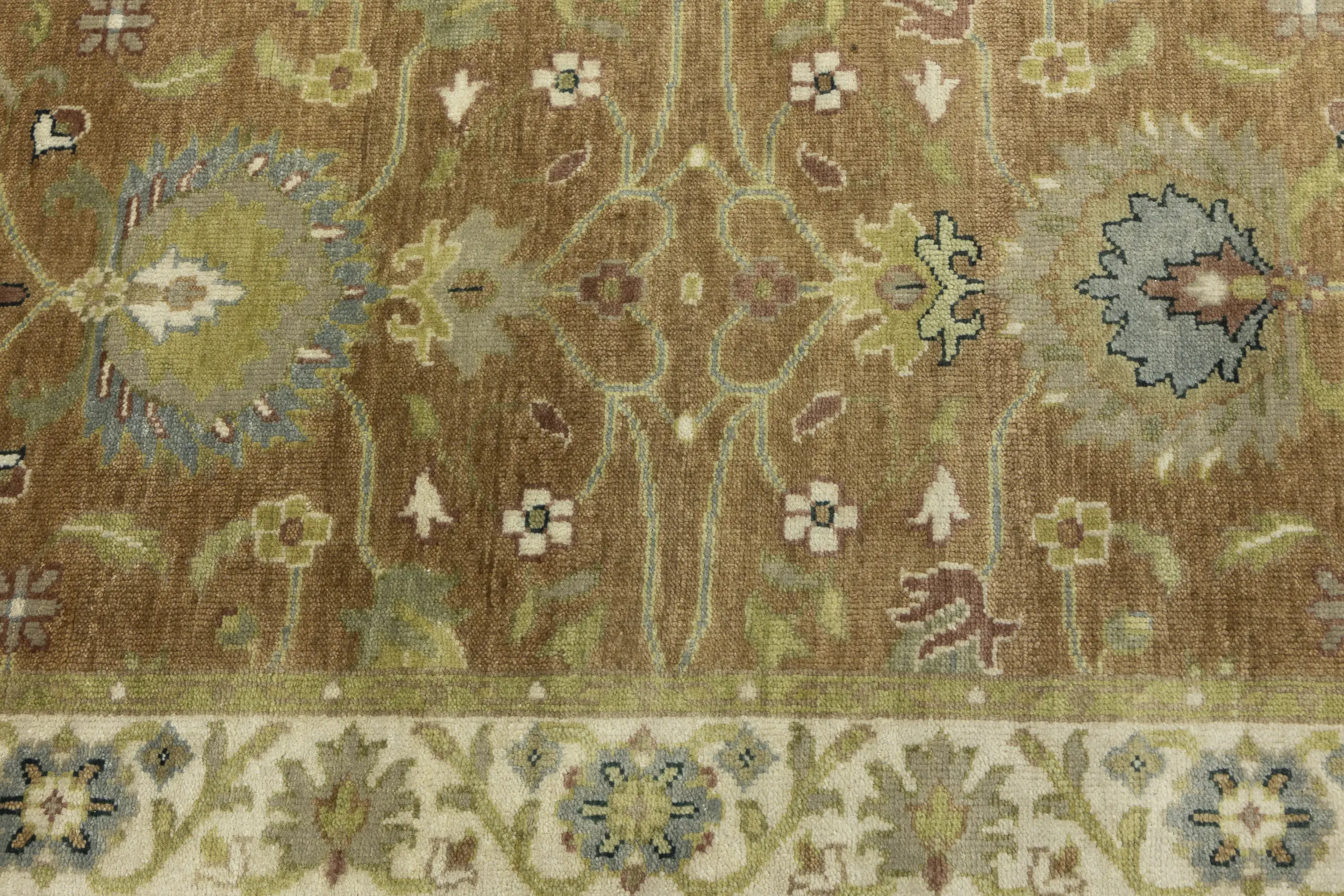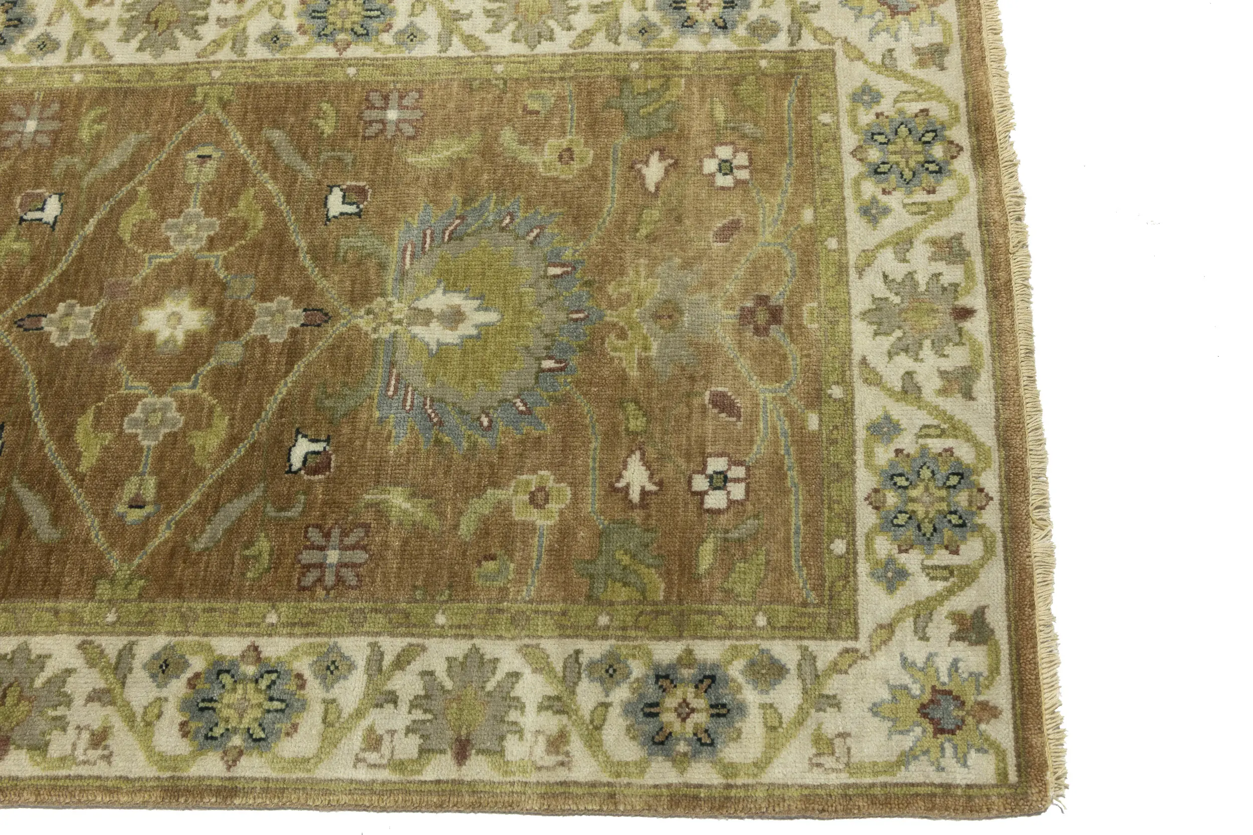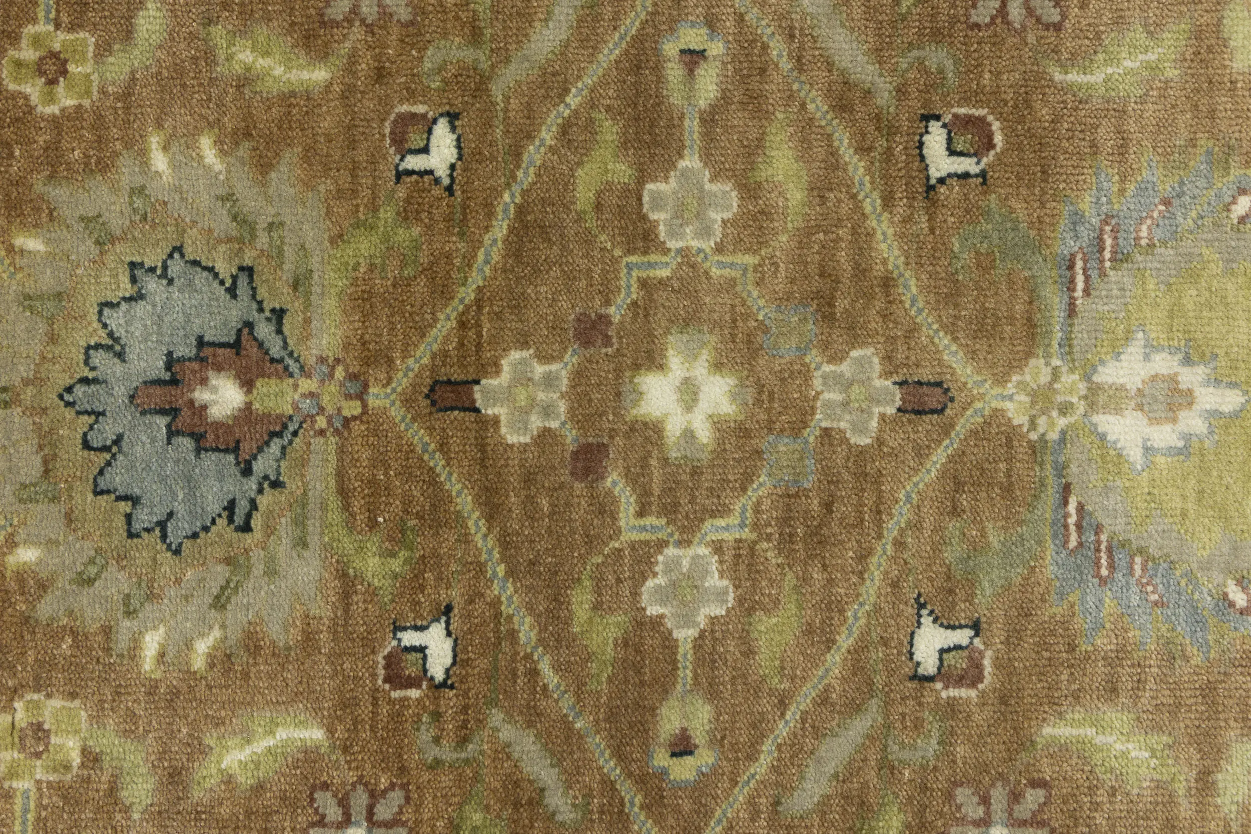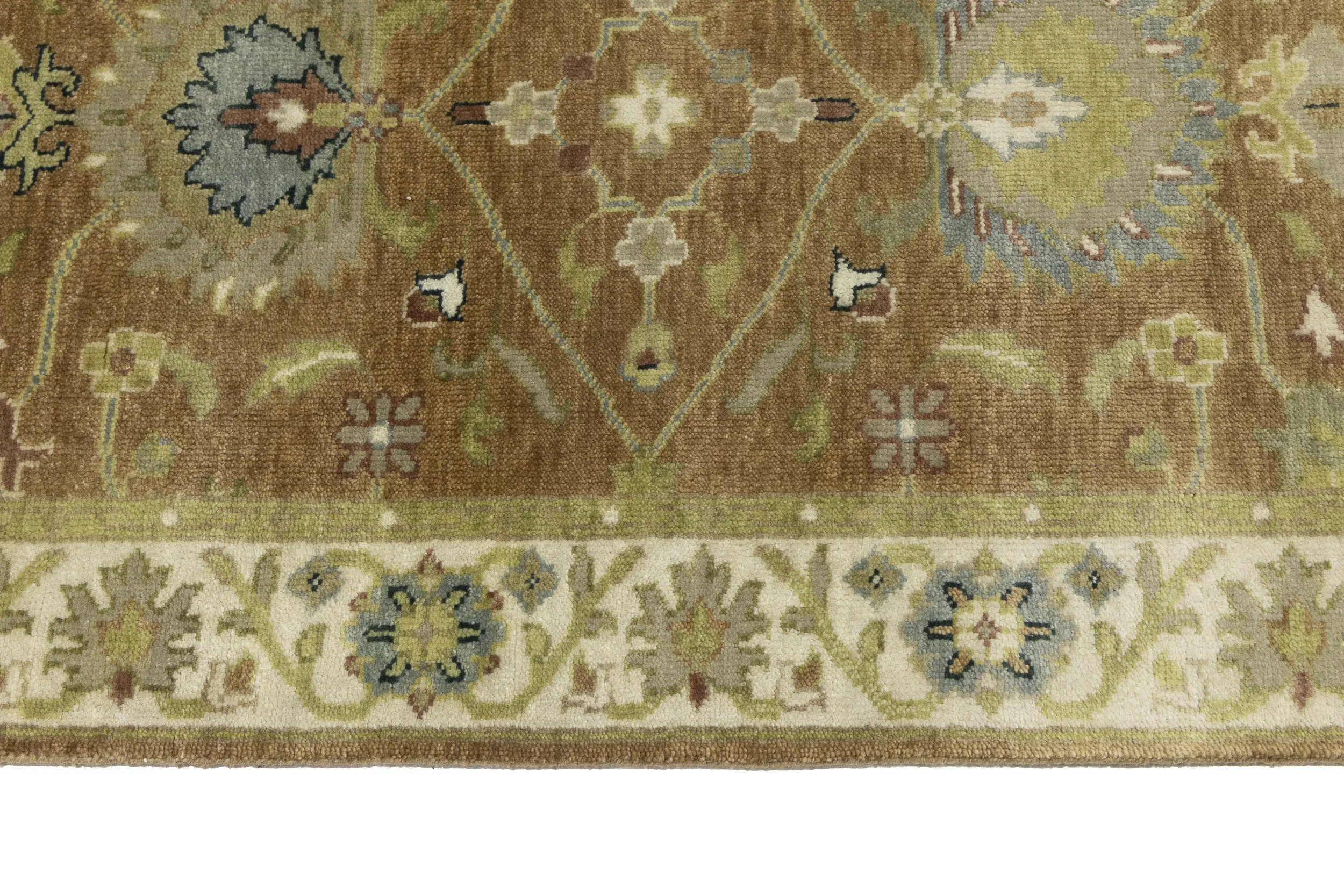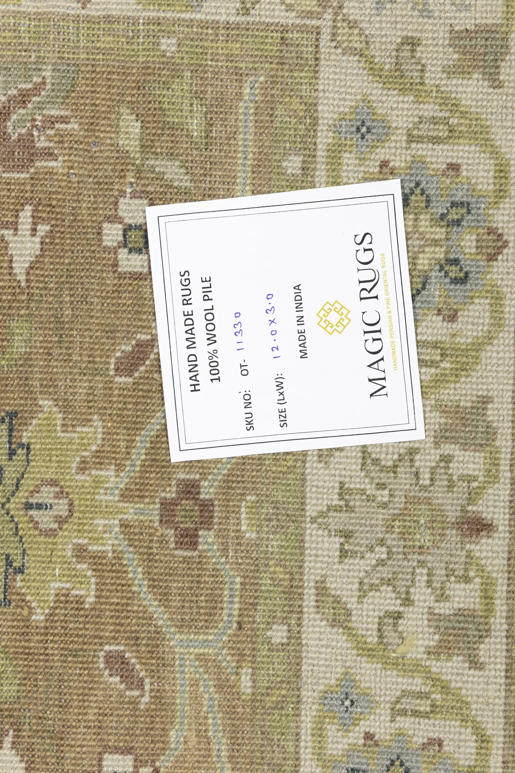 - Hand-knotted in India using traditional artisan techniques