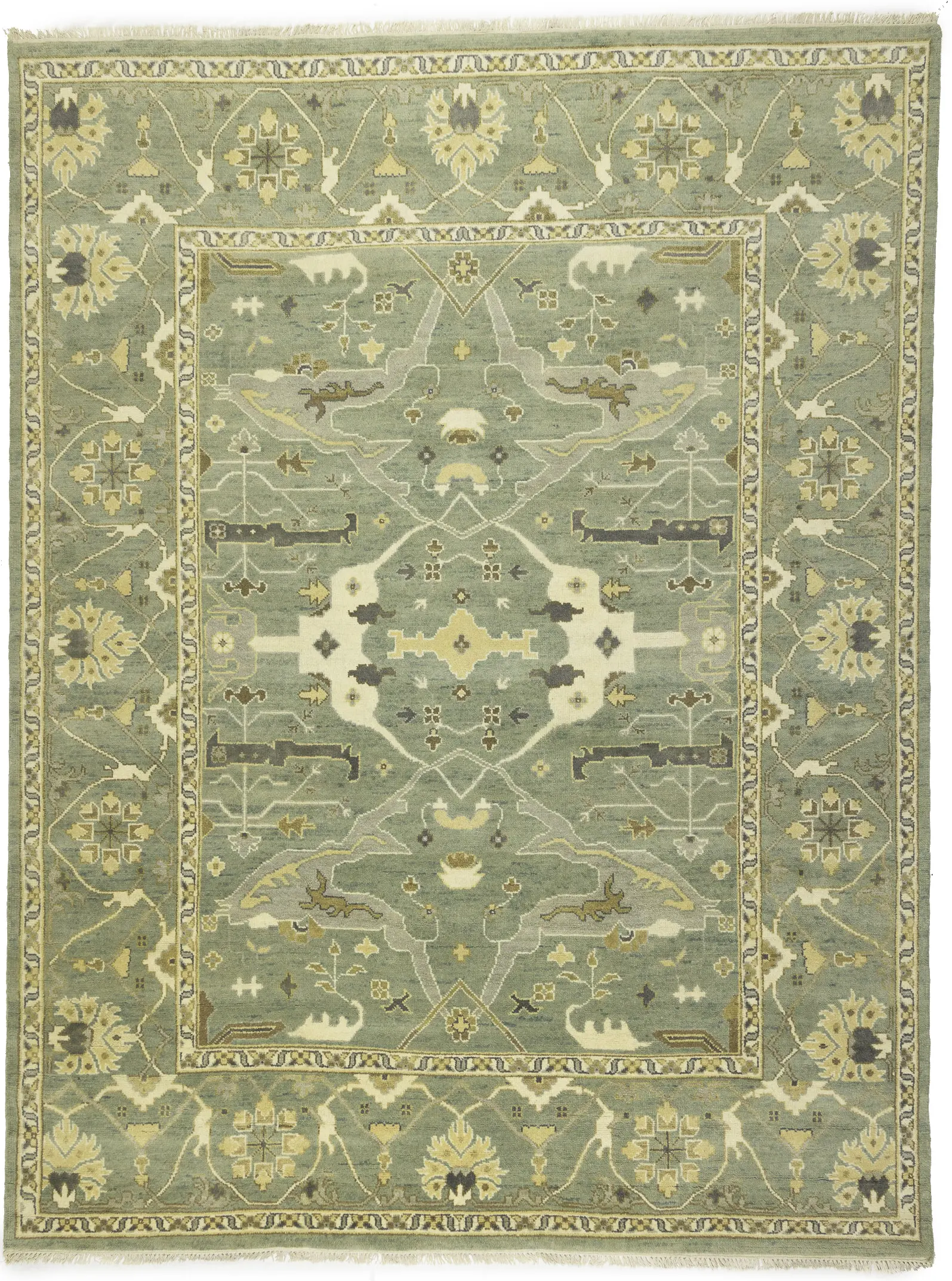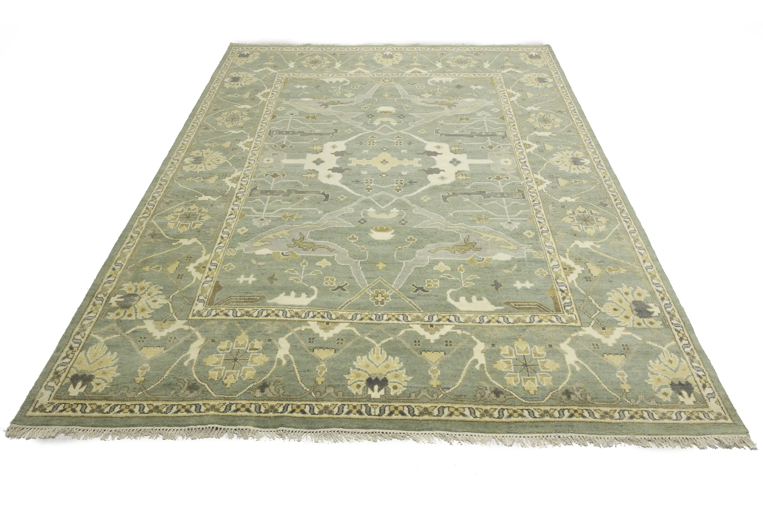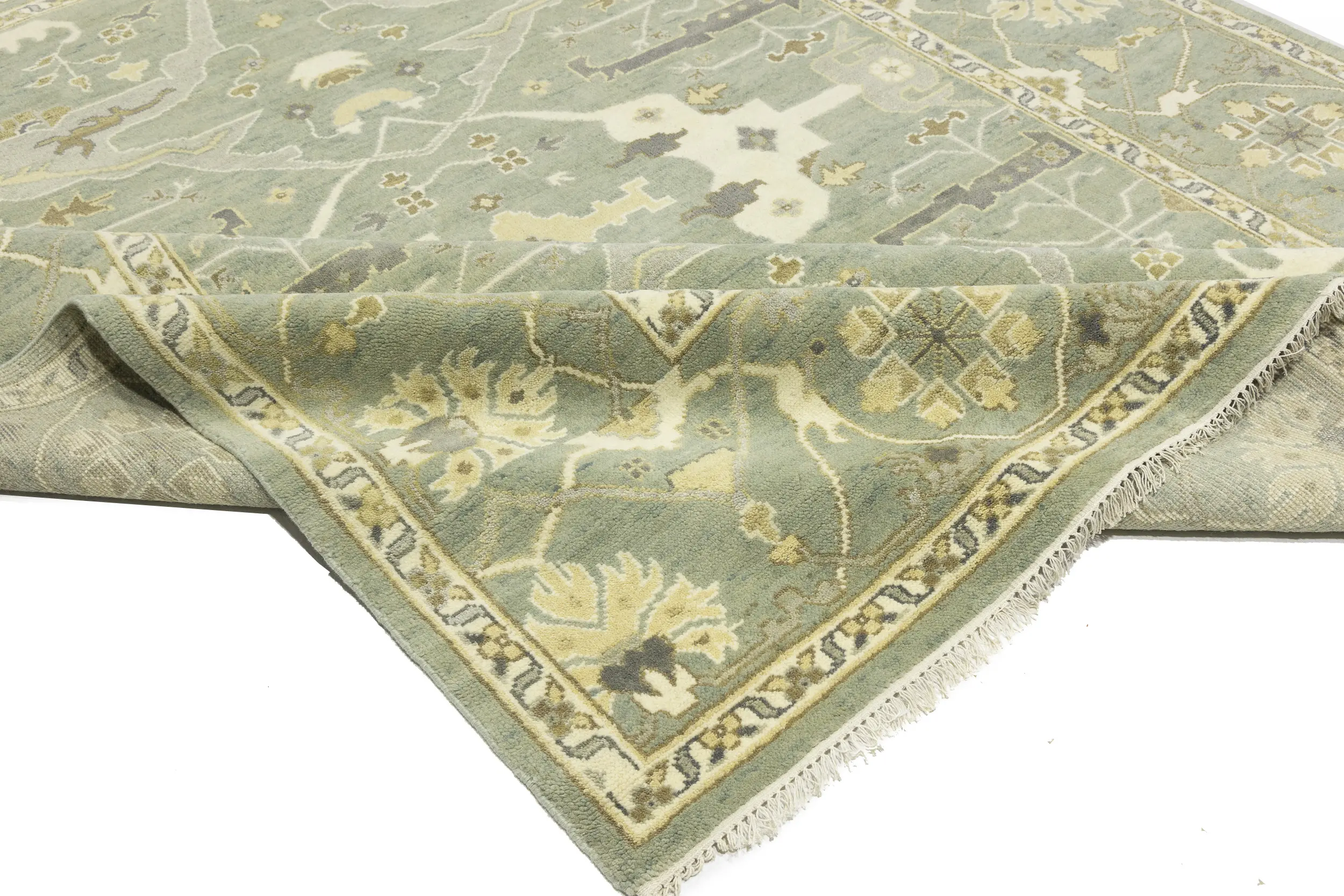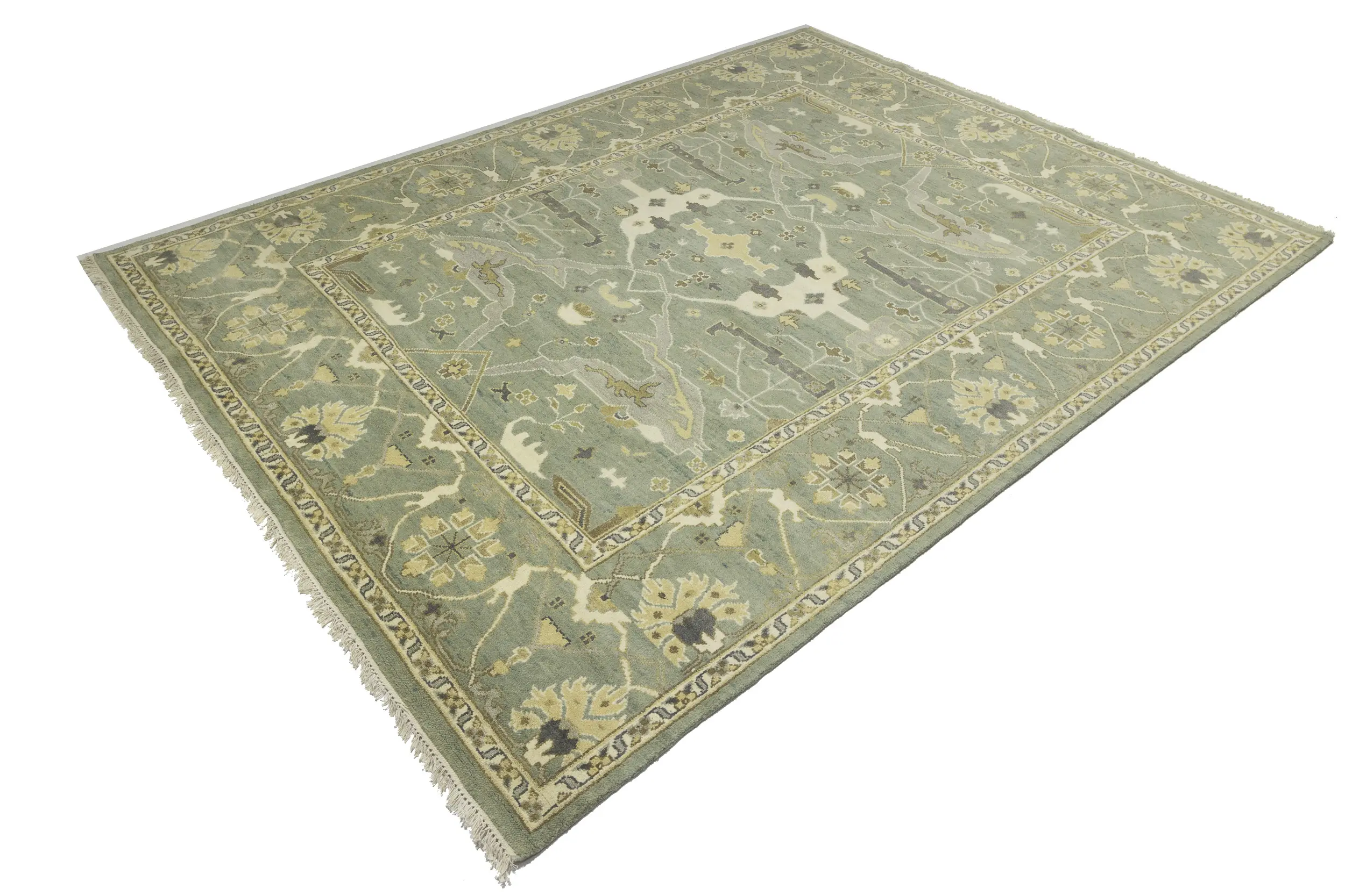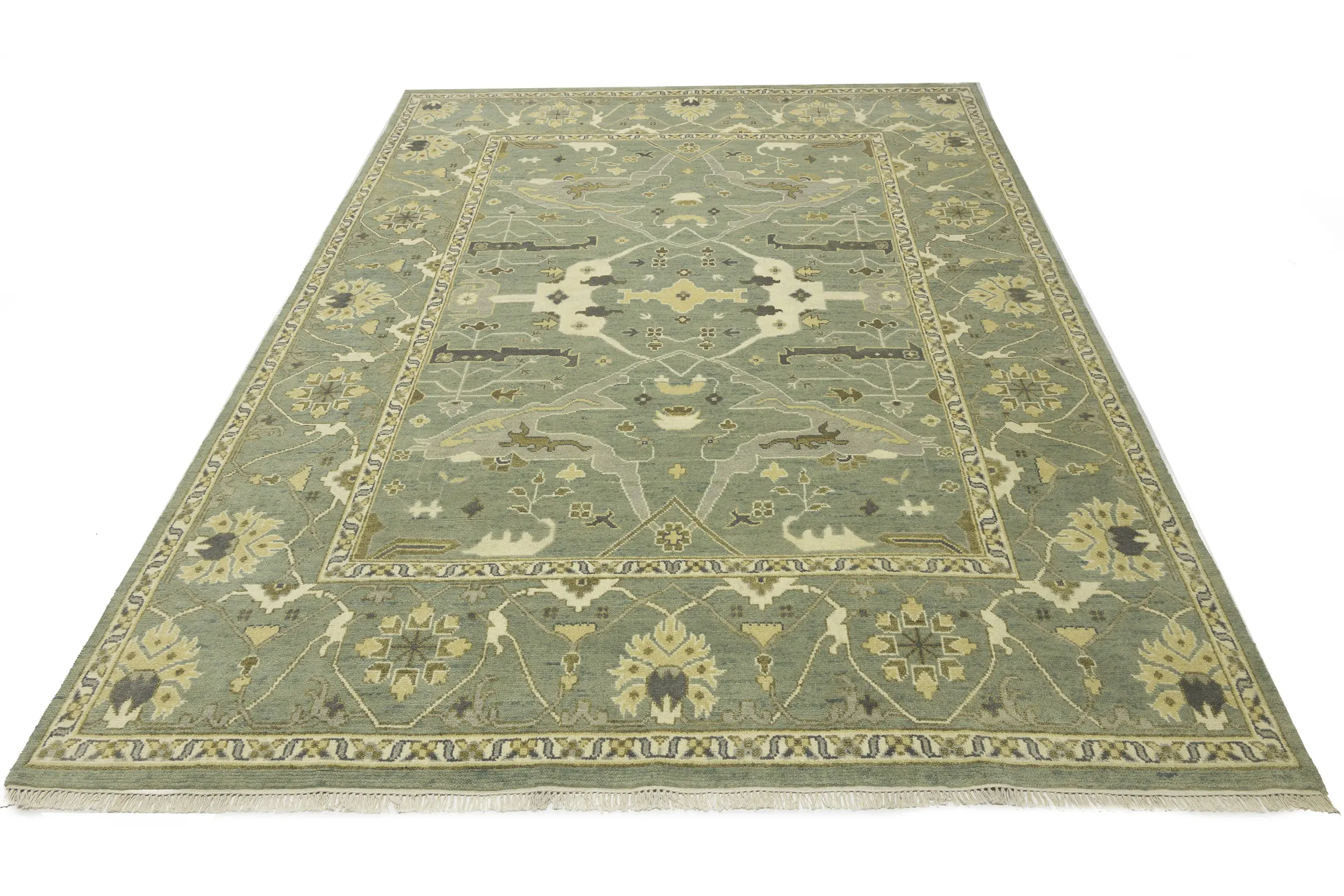 Light Sage Floral 9X12 Oushak Chobi Oriental Rug