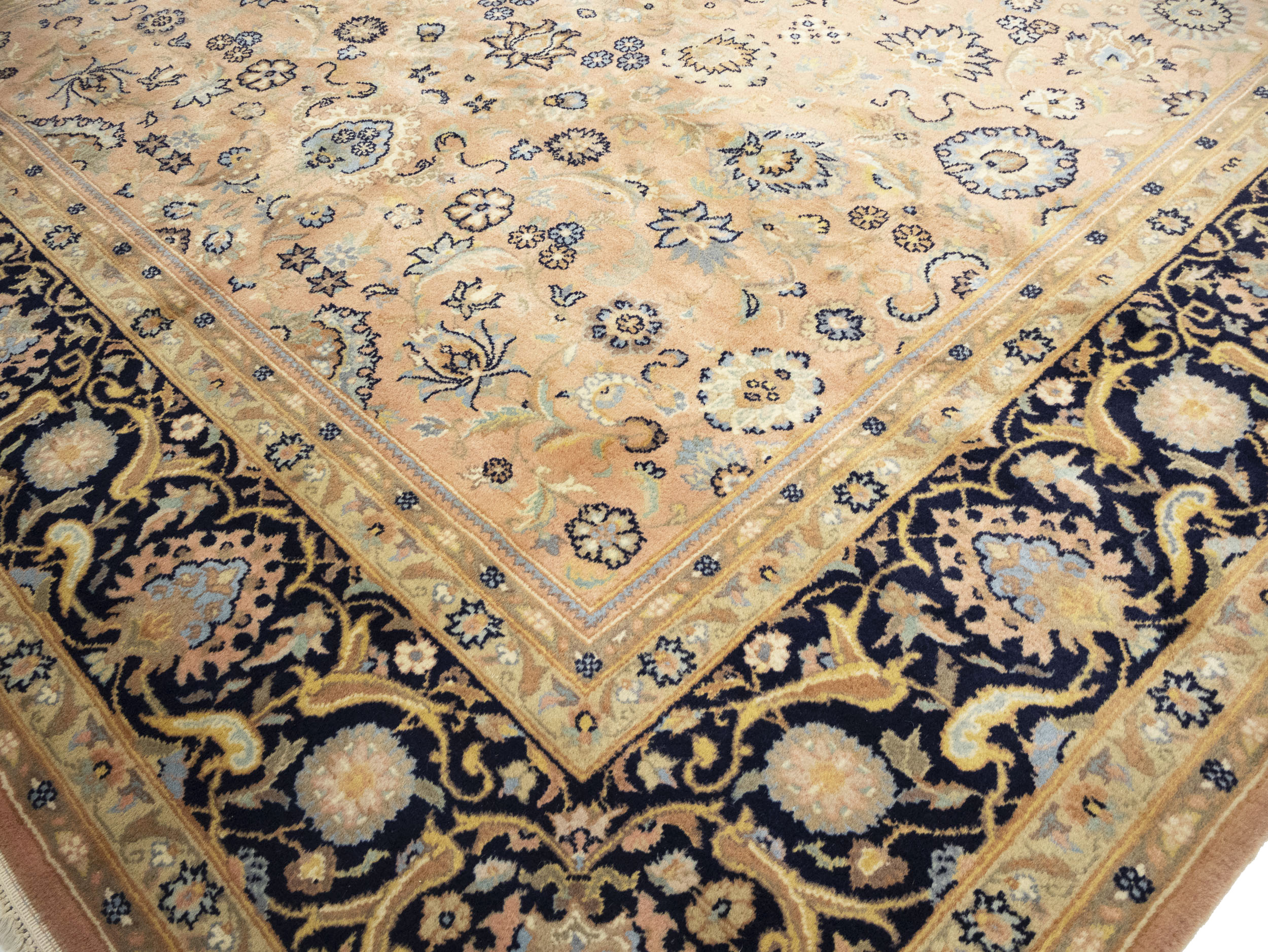 Light Salmon Floral 9X12 Indo-Kashan Vintage Oriental Rug