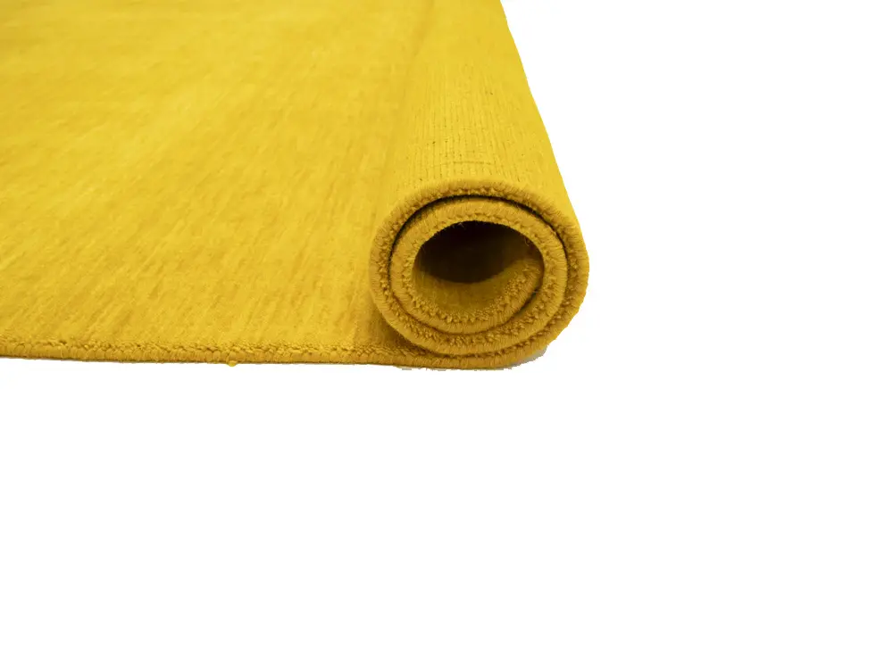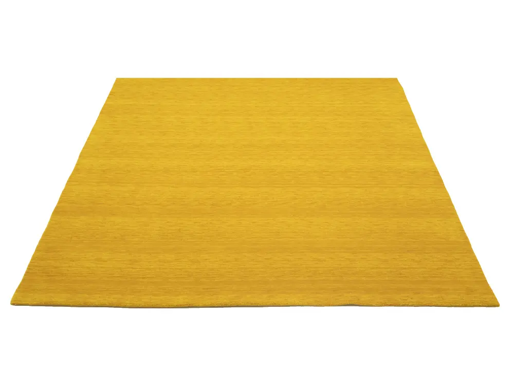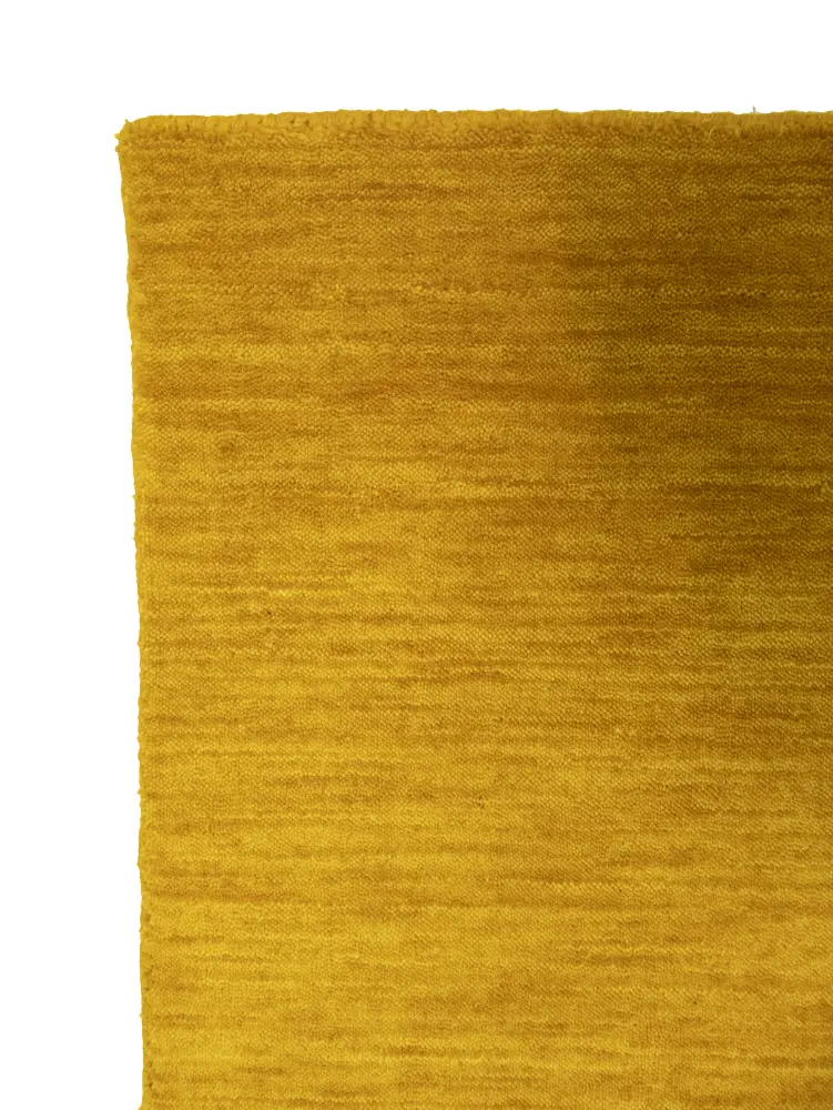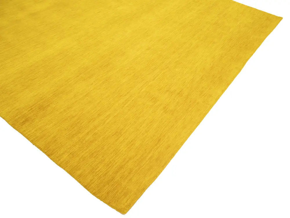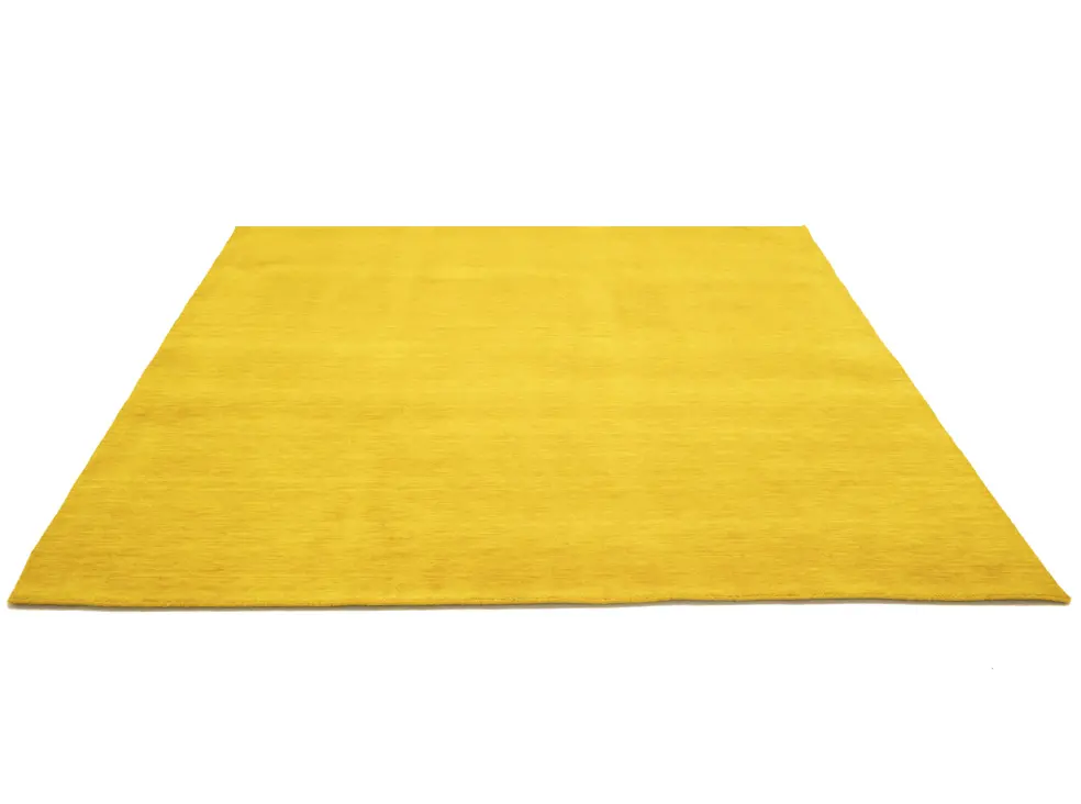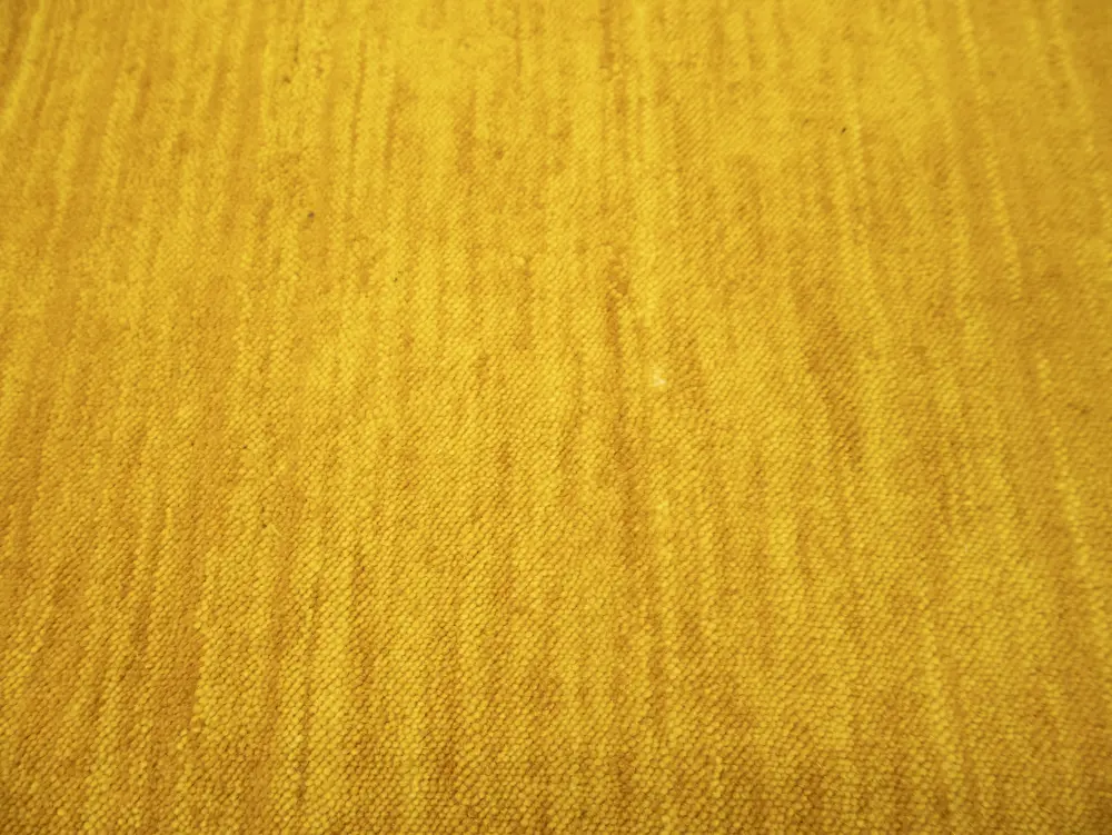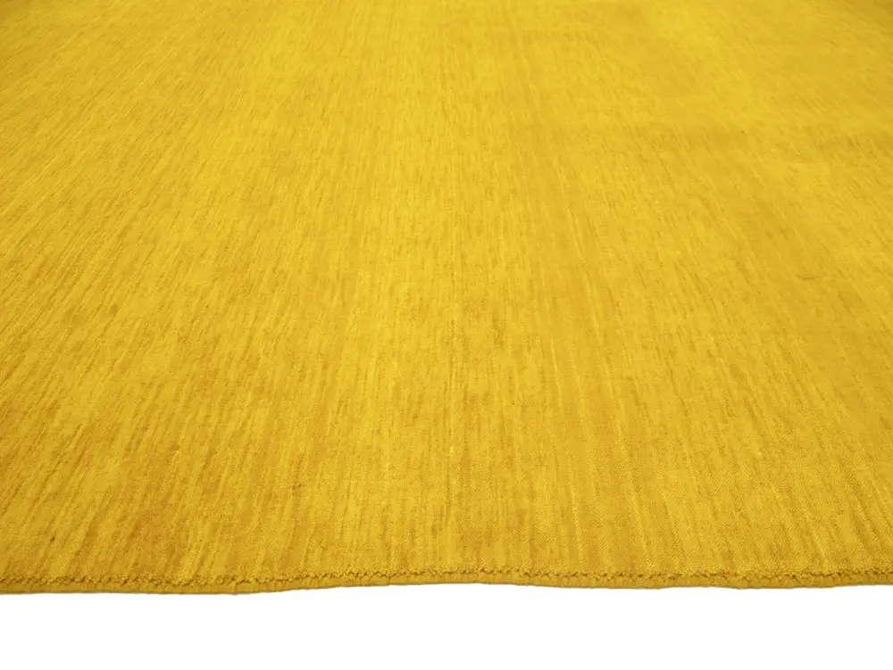 This hand-loomed 8X8 Marigold Oriental Square rug from India features a modern, Solid design that seamlessly integrates traditional craftsmanship with contemporary style, showcasing a striking Marigold primary color. It provides a luxuriant softness and durability underfoot, as it is constructed from premium wool with a cotton foundation. The rug is optimized for high-traffic areas due to its medium pile height and knot density of 100 knots per square inch, which ensures durability and comfort. This rug, which is in exceptional condition and was recently manufactured, is an ideal complement to any contemporary setting, providing both versatility and timeless elegance.