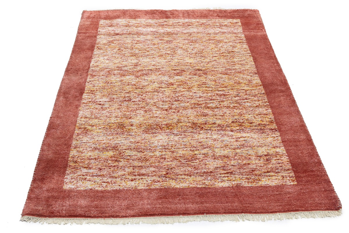 Maroon Red Border Tribal 4'6X6'5 Indo-Gabbeh Oriental Rug
