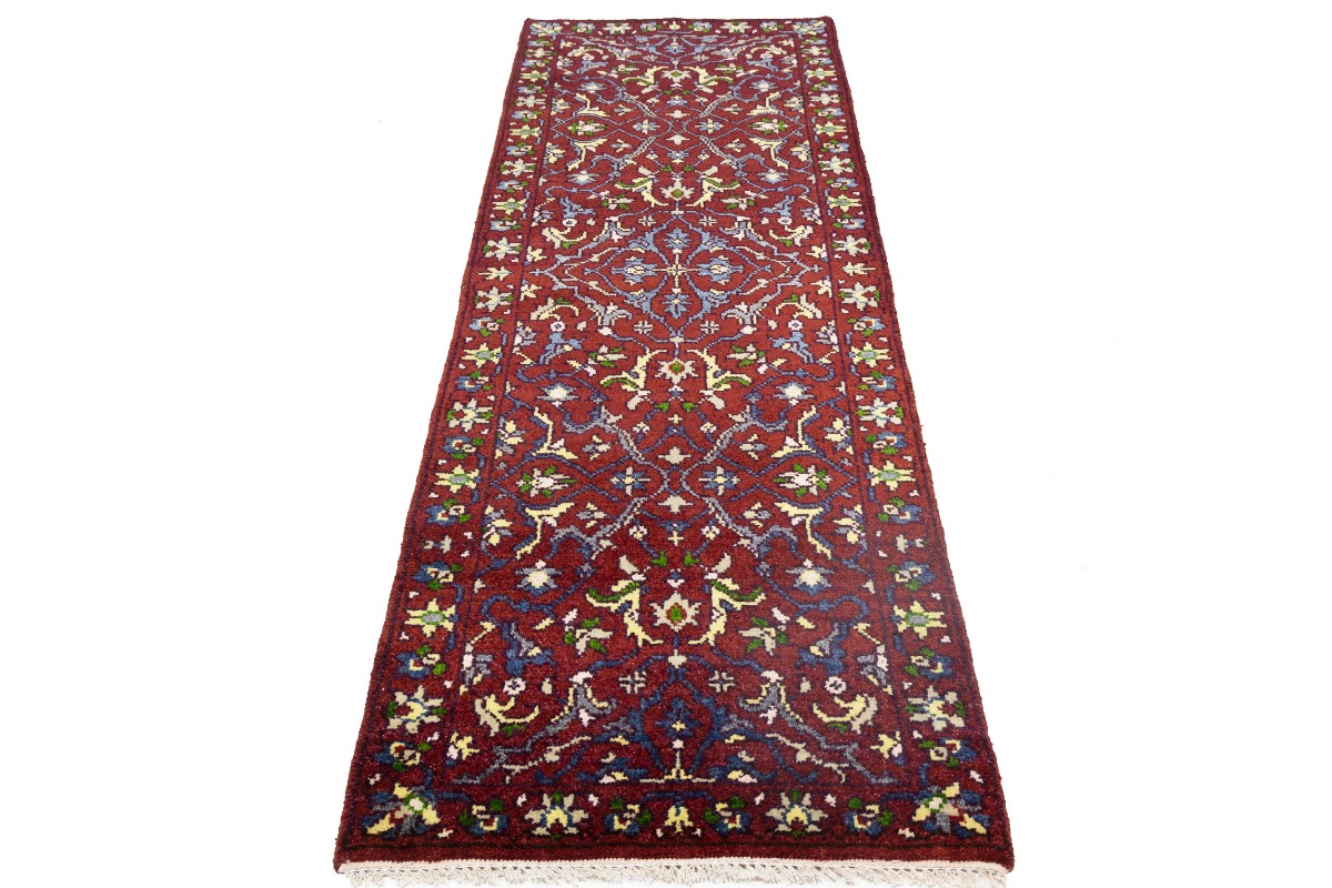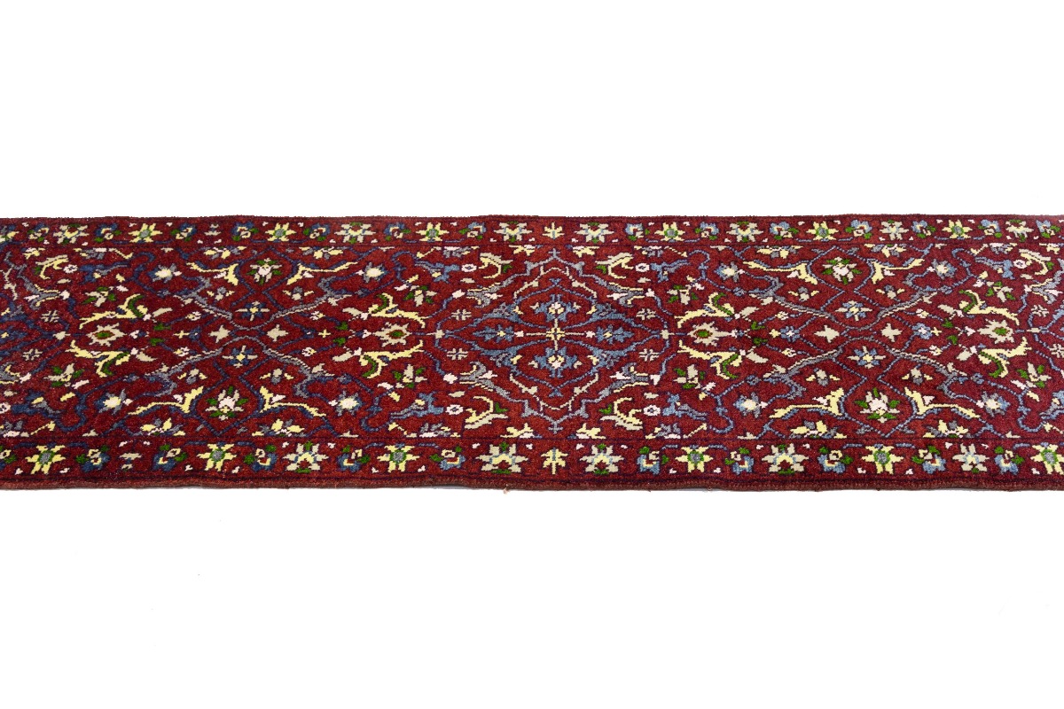 Hand Knotted 3X8 red oriental runner made with vegetable dyes (fine wool pile and cotton foundation), exceptional knot count, and appealing ancient designs. This Oriental runner never will go out of style and would be among your most valuable treasures.