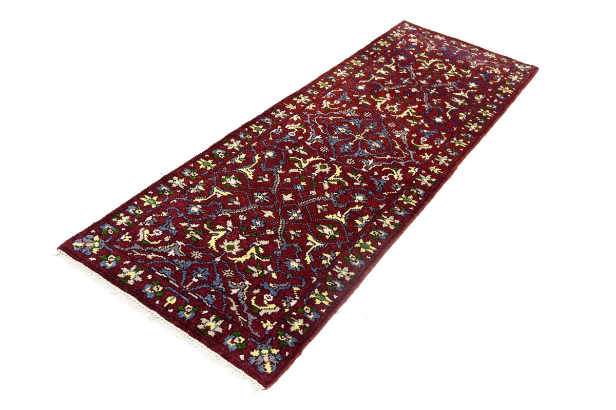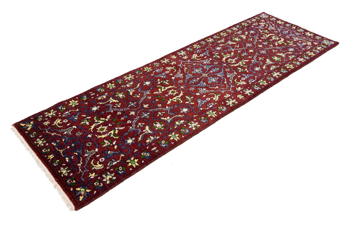 This original 3X8 red new Oriental runner was finely knotted by the hands of weavers influenced by a variety of amazing artistic designs, to recreate the aged look of the exceptional piece with a richness of color and embellished background field. What set this vintage style Oriental area runner from the others are the material and dye used (wool pile and cotton foundation), knot count, antique designs, fantastic grades, and its regional historical connection: it has deep roots, from the story of the people who produced it to the meaning of the symbols and colors displayed across its canvas that have been praised for centuries. This Indian home décor carpet will be completely cozy and inviting that never will go out of style! Also, this Oriental rug would be among your most valuable treasures, it is a great investment that increase in value over time, and it will last a lifetime because was woven with high-quality, all-natural wool. Eco-friendly, opulent yet affordable; this runner will give you an extra pop of character to help define your home environment with luxury and warmth that will capture the eyes and attention of your audience (homeowners, designers, decorators, family and friends). OT-7653