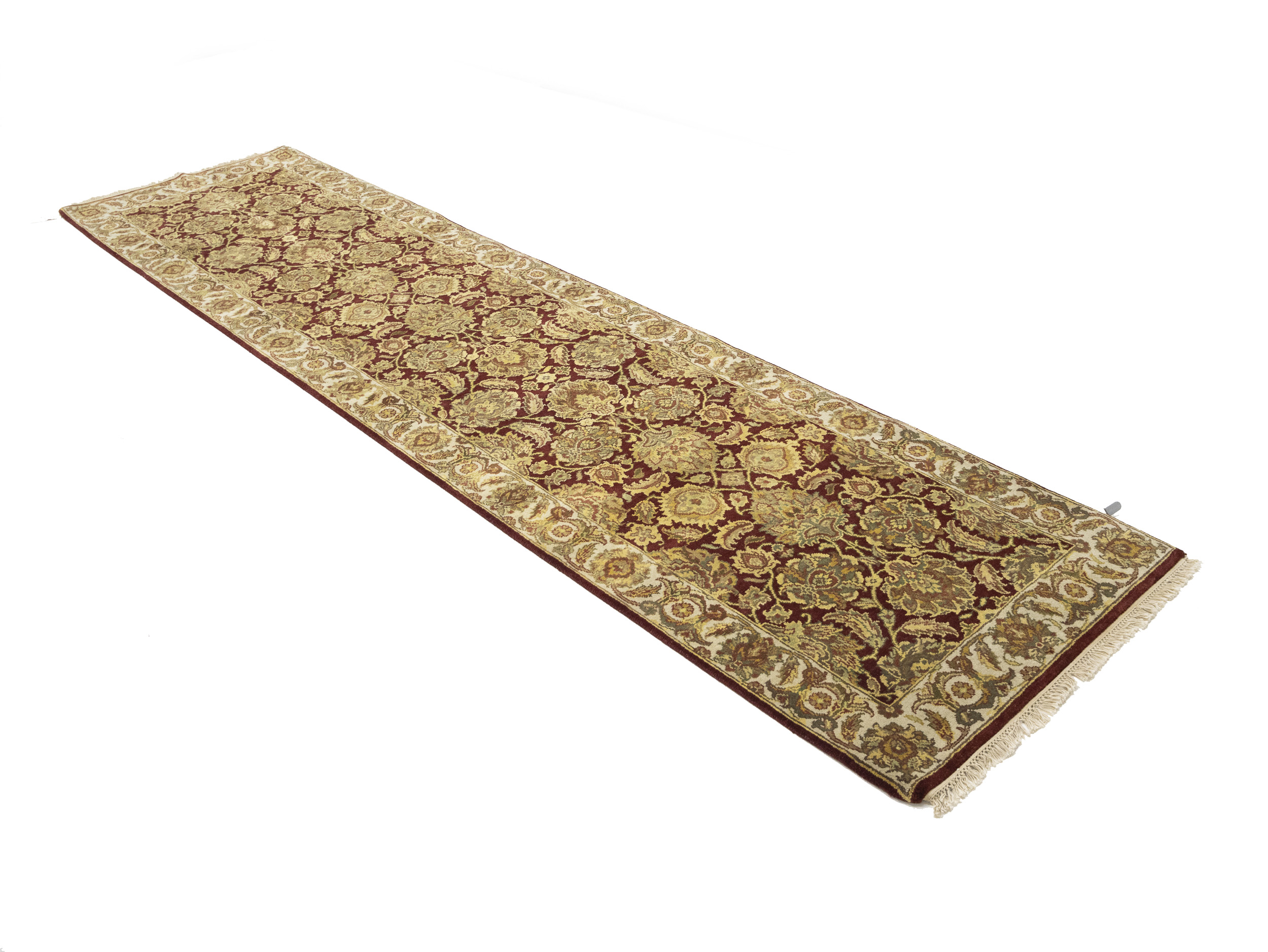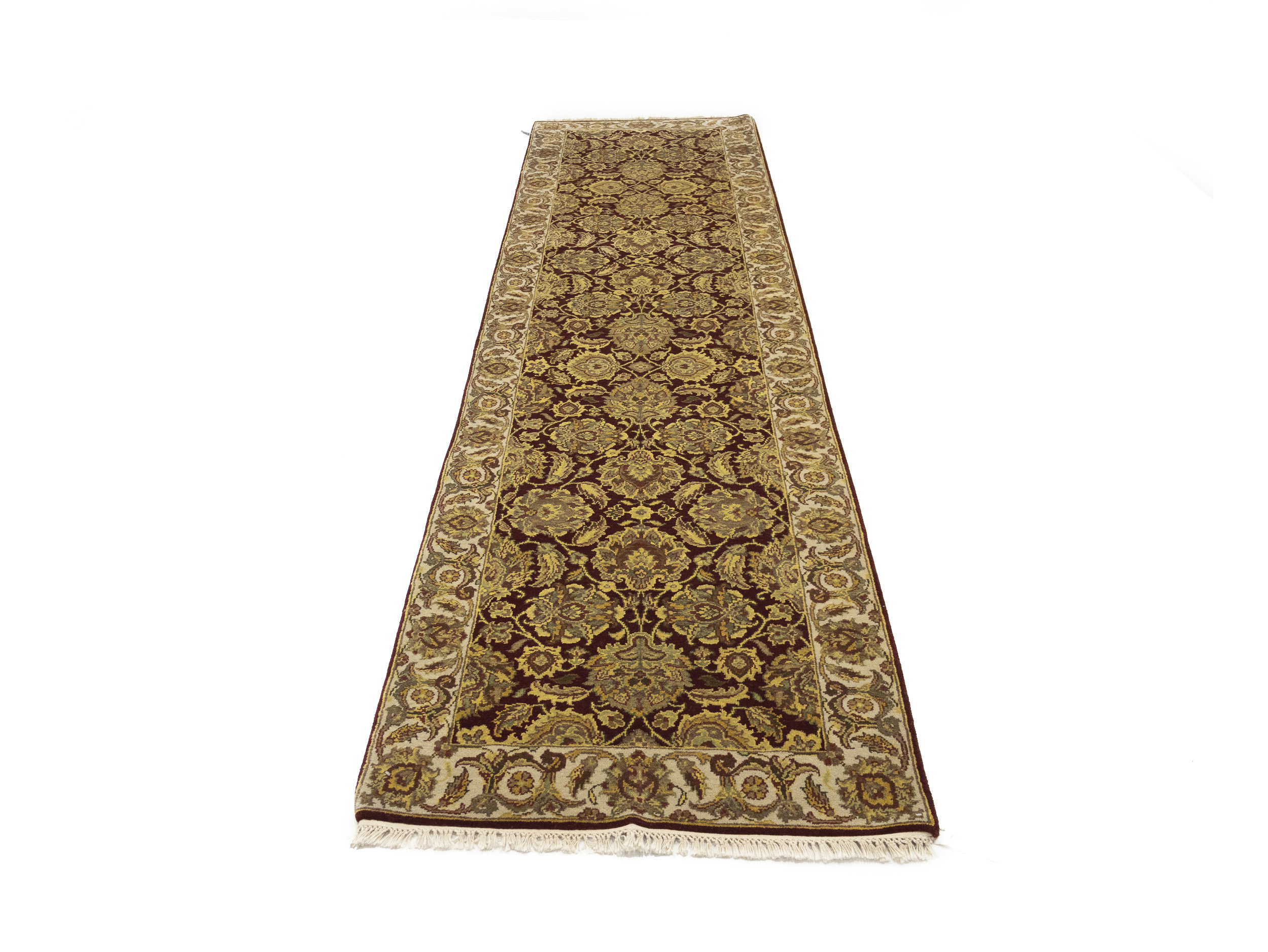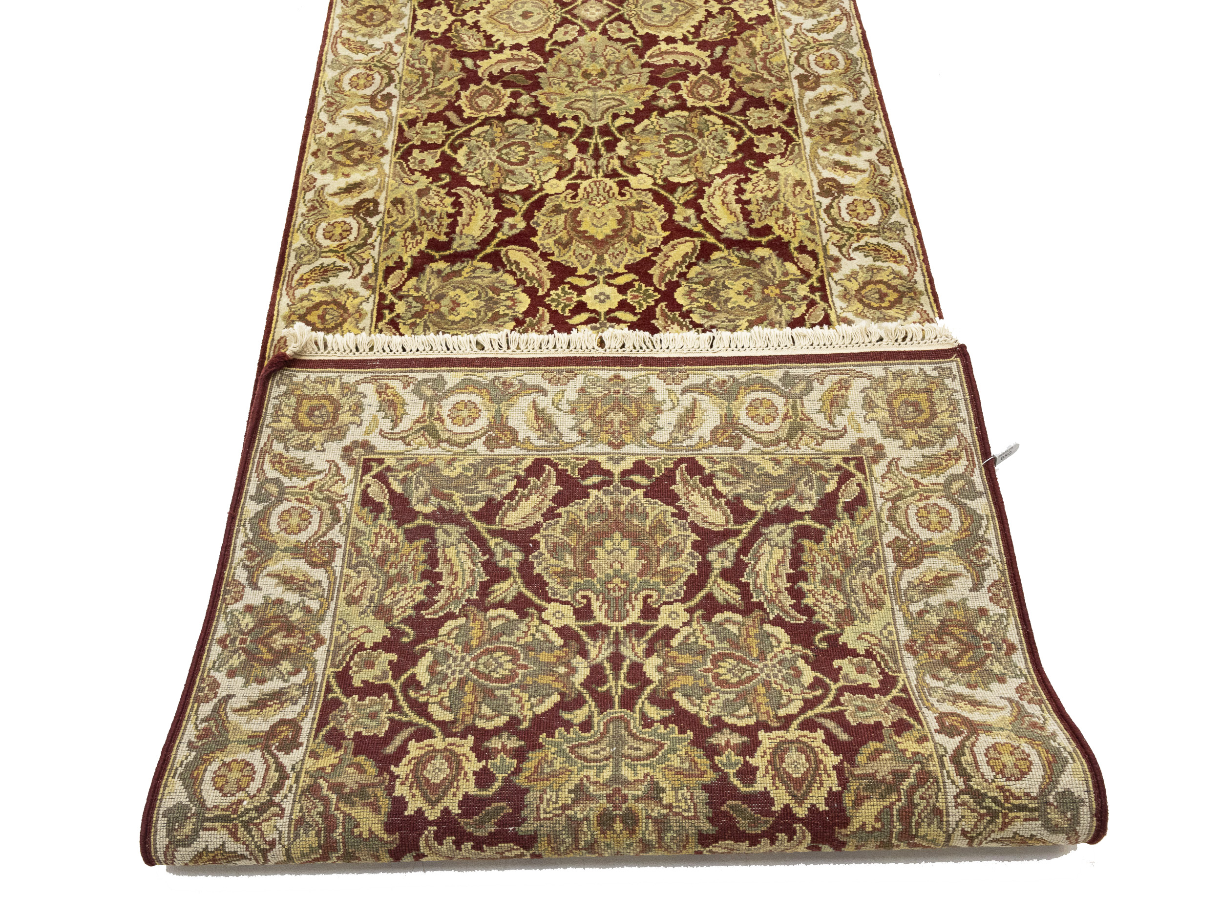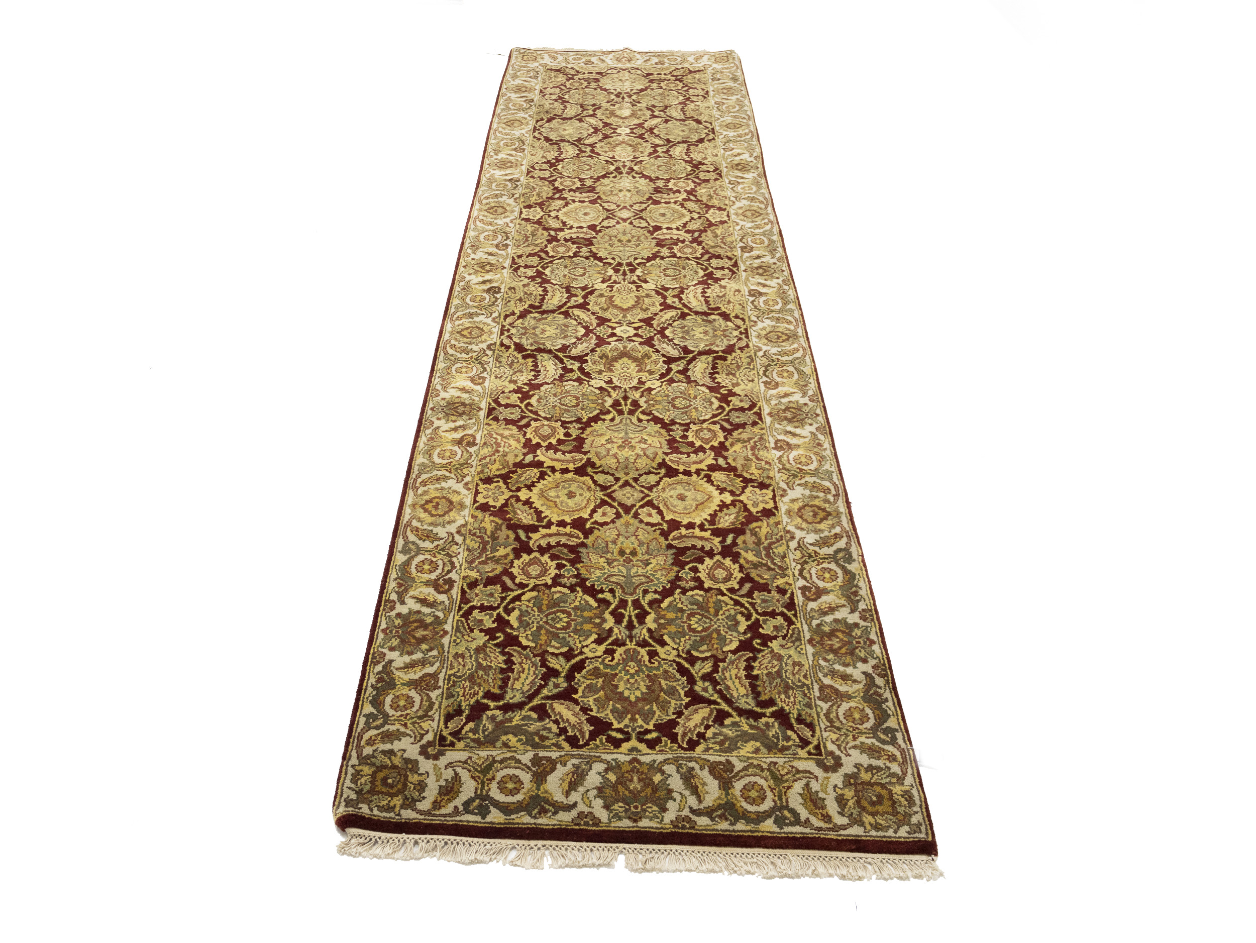 Maroon Red Floral Classic 3X12 Agra Jaipur Oriental Runner Rug