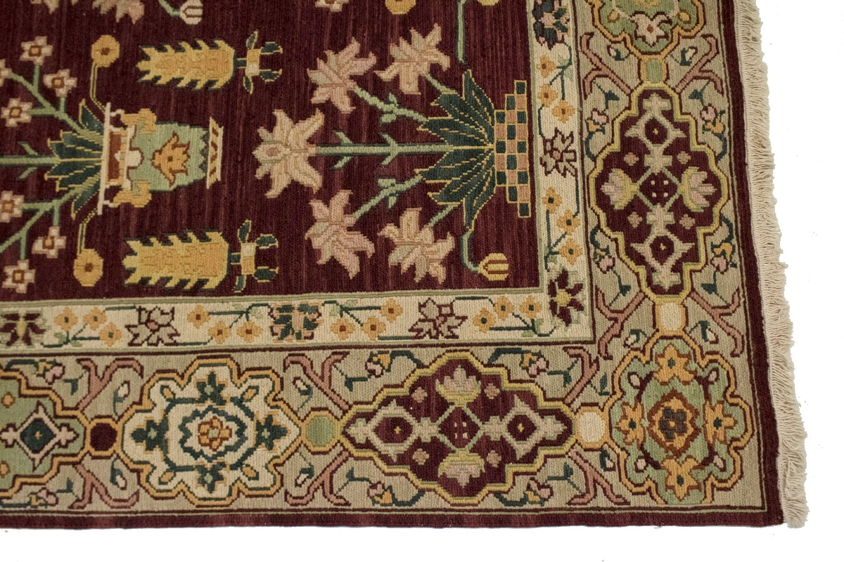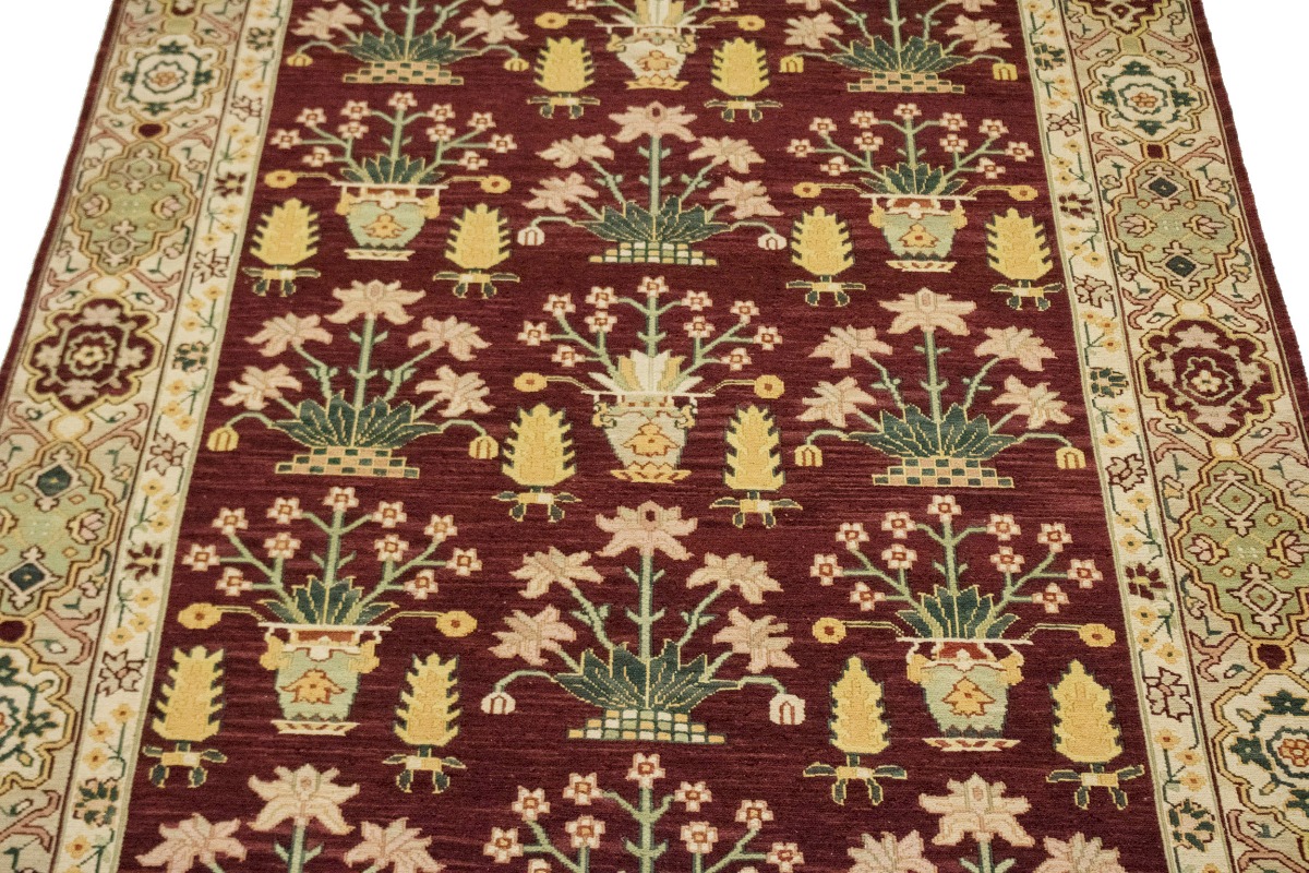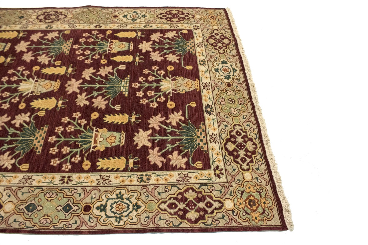 This genuine 6X9 wine red new Oriental rug was made by the hands of gifted weavers inspired by a variety of spectacular artistic designs, to recreate the aged look of the original piece with a richness of color and ornately patterned background field. What set this vintage style Oriental area rug from the others are the material and dye used (wool pile and cotton foundation), knot count, ancient designs, fantastic grades, and its regional historical connection: it has deep roots, from the story of the people who produced it to the meaning of the symbols and colors displayed across its canvas that have been praised for centuries. This Indian home décor carpet will be completely cozy and inviting that never will go out of style! Also, this Oriental rug would be among your most valuable treasures, it is a great investment that accrues value over time, and it will last for generations because was woven with high-quality, all-natural wool. Environmentally friendly, opulent yet affordable; this rug/runner will give you a thorough amount of character to help define your living space with elegance and warmth that will capture the eyes and attention of your audience (homeowners, designers, decorators, family and friends). RT-4097