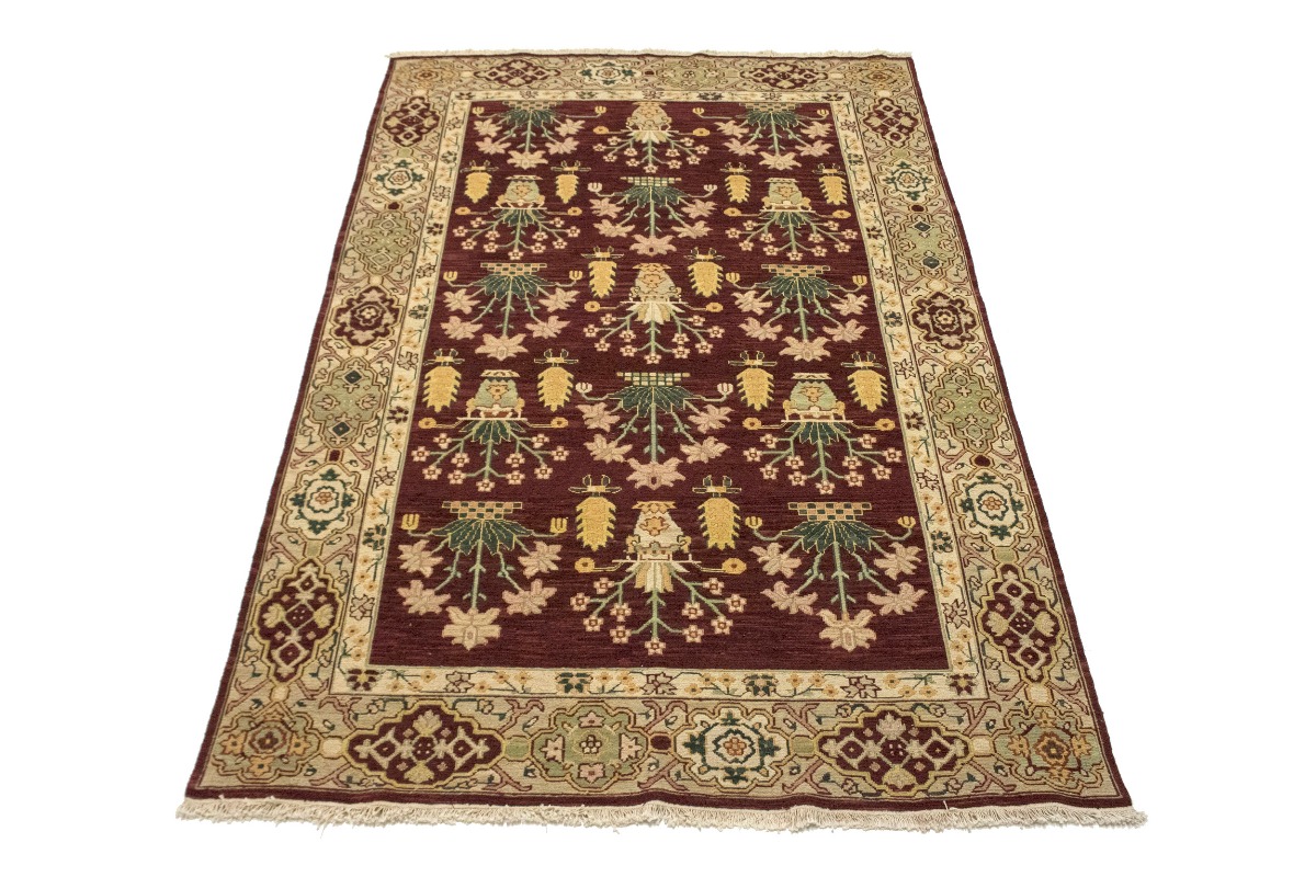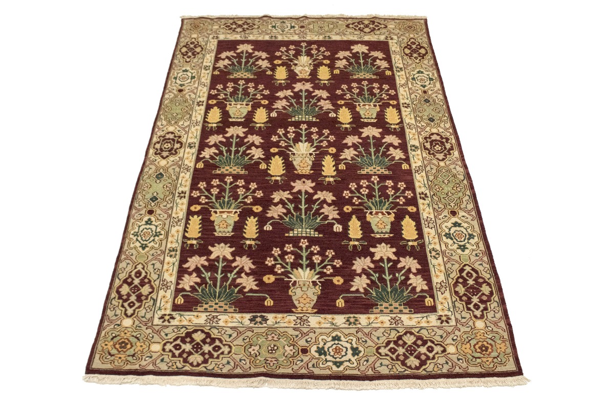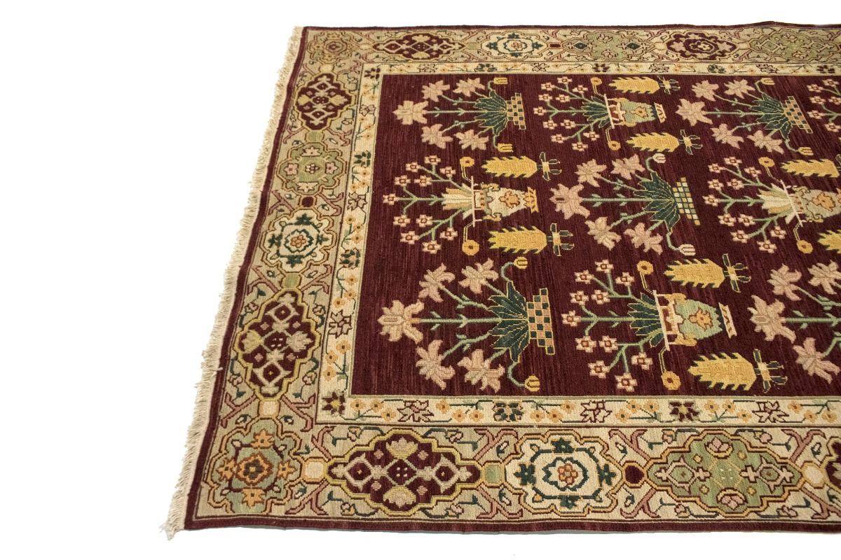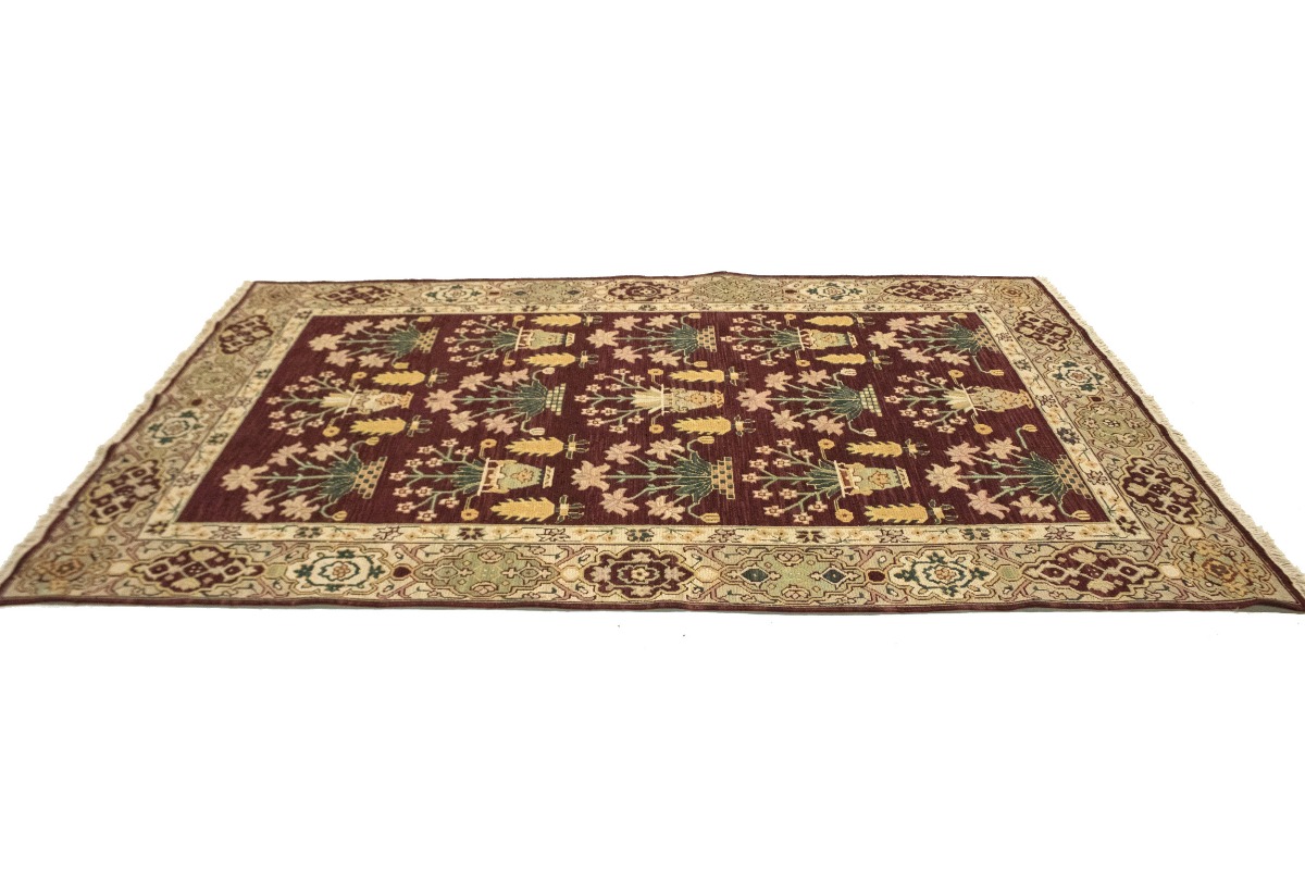 This genuine 6X9 wine red new Oriental rug was made by the hands of gifted weavers inspired by a variety of spectacular artistic designs, to recreate the aged look of the original piece with a richness of color and ornately patterned background field. What set this vintage style Oriental area rug from the others are the material and dye used (wool pile and cotton foundation), knot count, ancient designs, fantastic grades, and its regional historical connection: it has deep roots, from the story of the people who produced it to the meaning of the symbols and colors displayed across its canvas that have been praised for centuries. This Indian home décor carpet will be completely cozy and inviting that never will go out of style! Also, this Oriental rug would be among your most valuable treasures, it is a great investment that accrues value over time, and it will last for generations because was woven with high-quality, all-natural wool. Environmentally friendly, opulent yet affordable; this rug/runner will give you a thorough amount of character to help define your living space with elegance and warmth that will capture the eyes and attention of your audience (homeowners, designers, decorators, family and friends). RT-4097