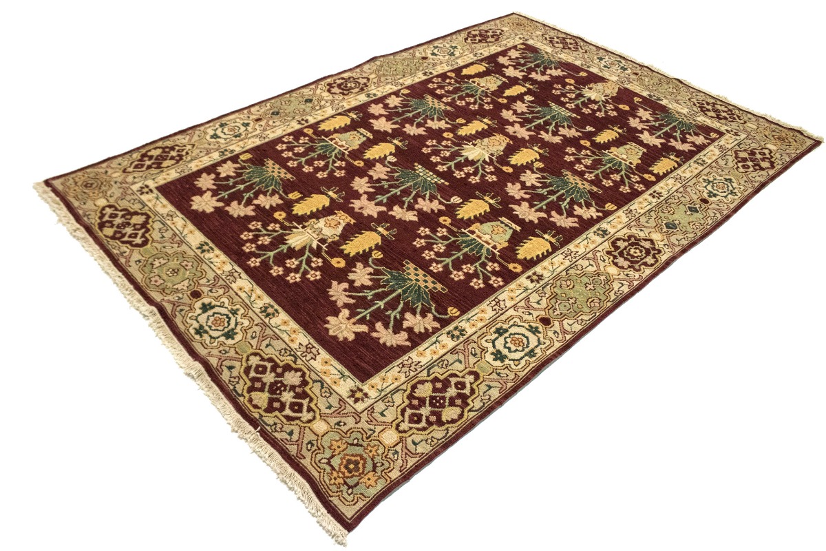 Maroon Red Floral Garden 6X9 Oriental Rug