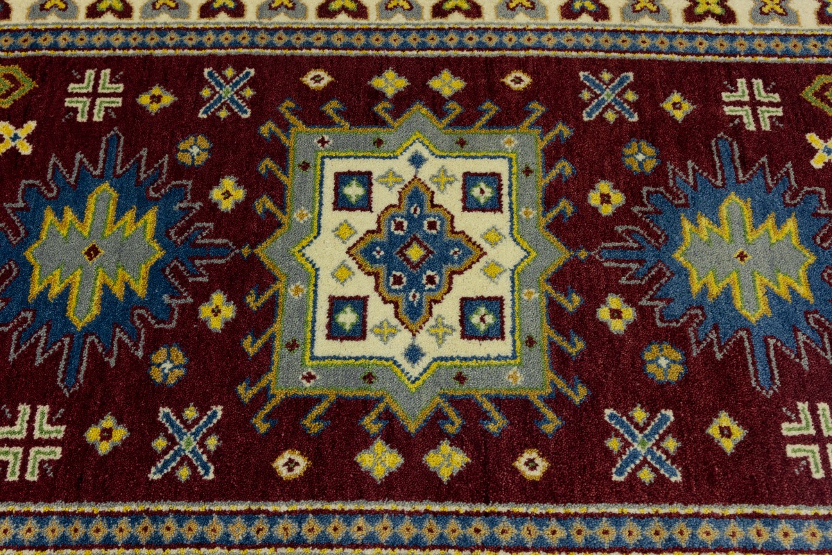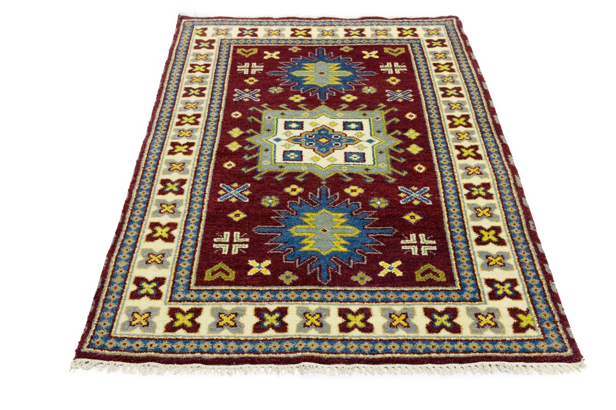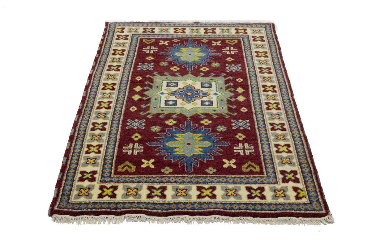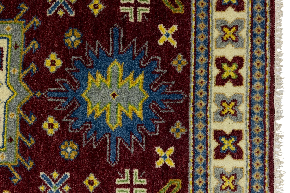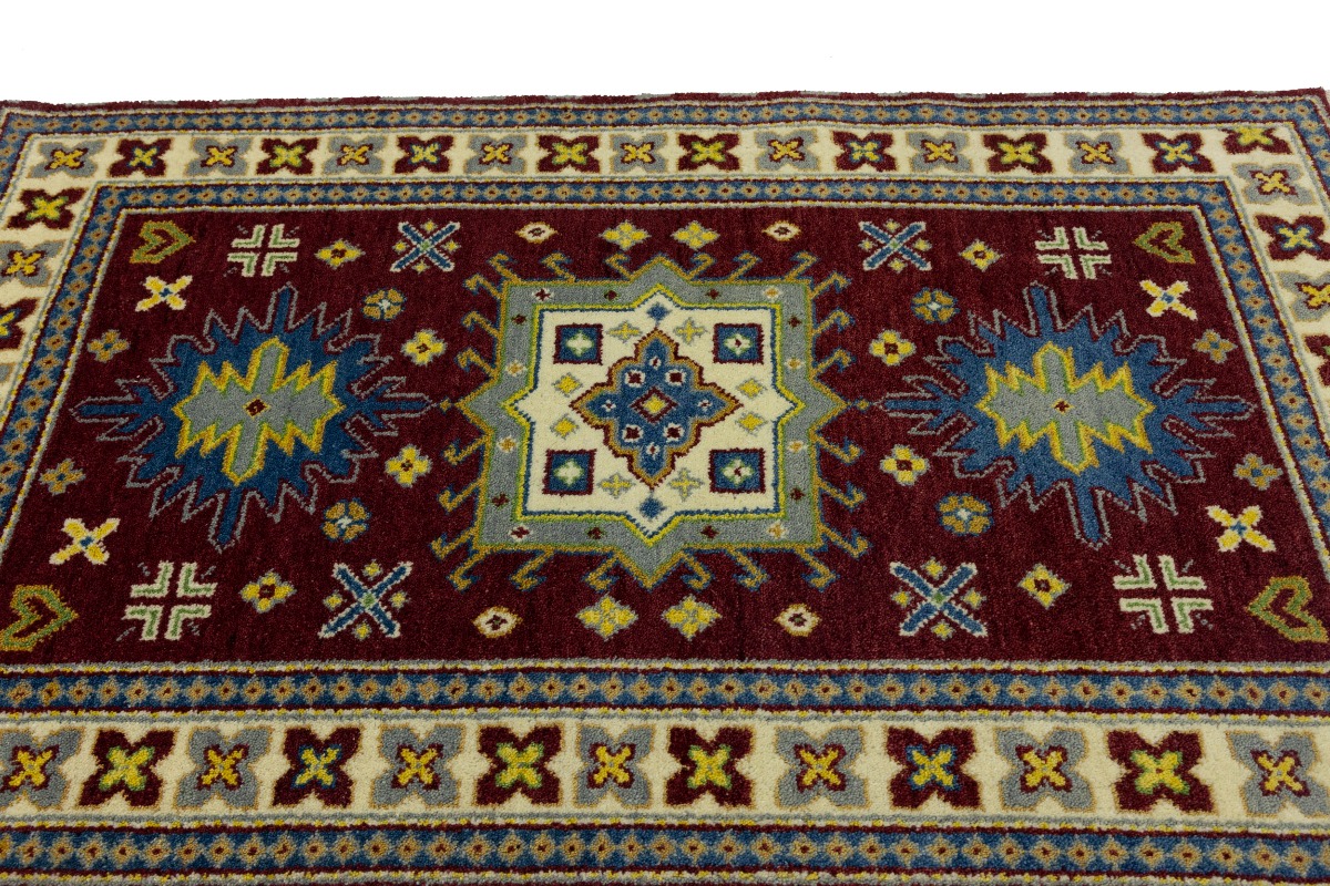 Maroon Red Geometric 4X6 Kazak Oriental Rug