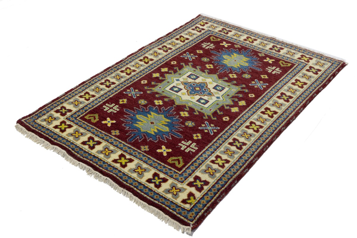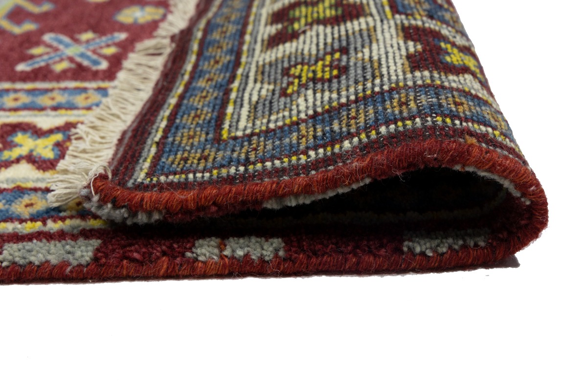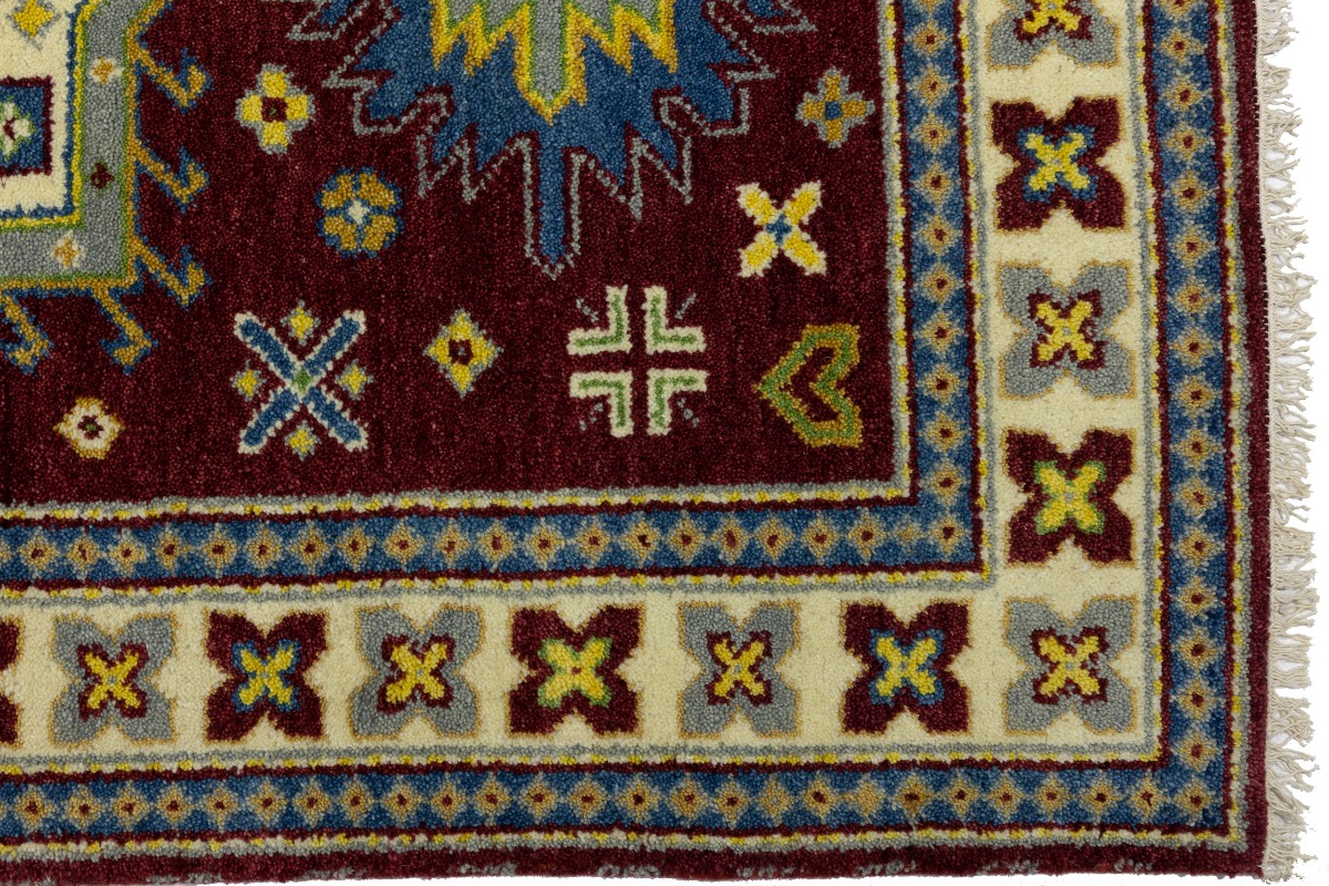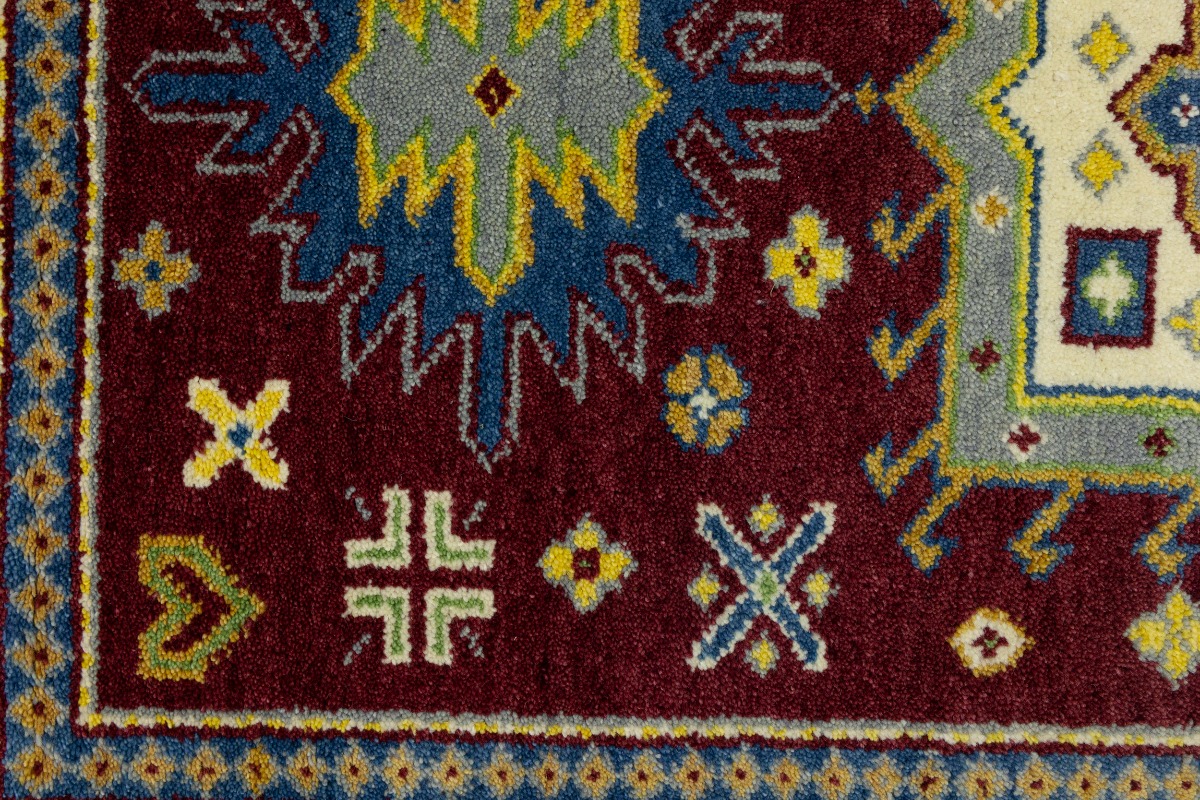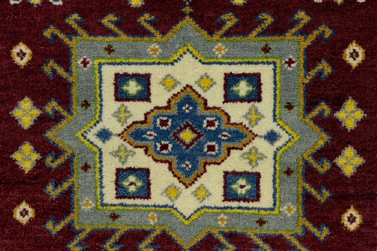 Maroon Red Geometric 4X6 Kazak Oriental Rug