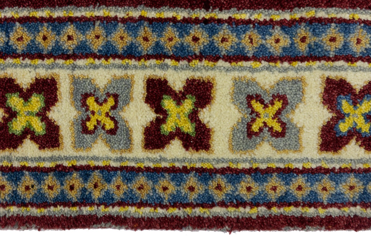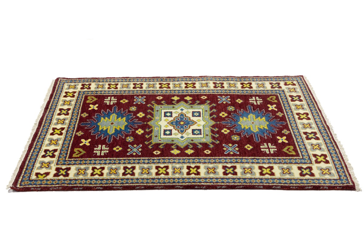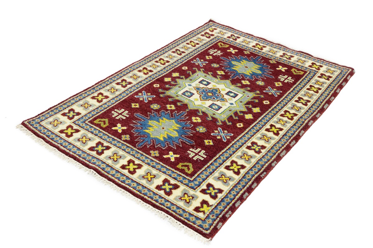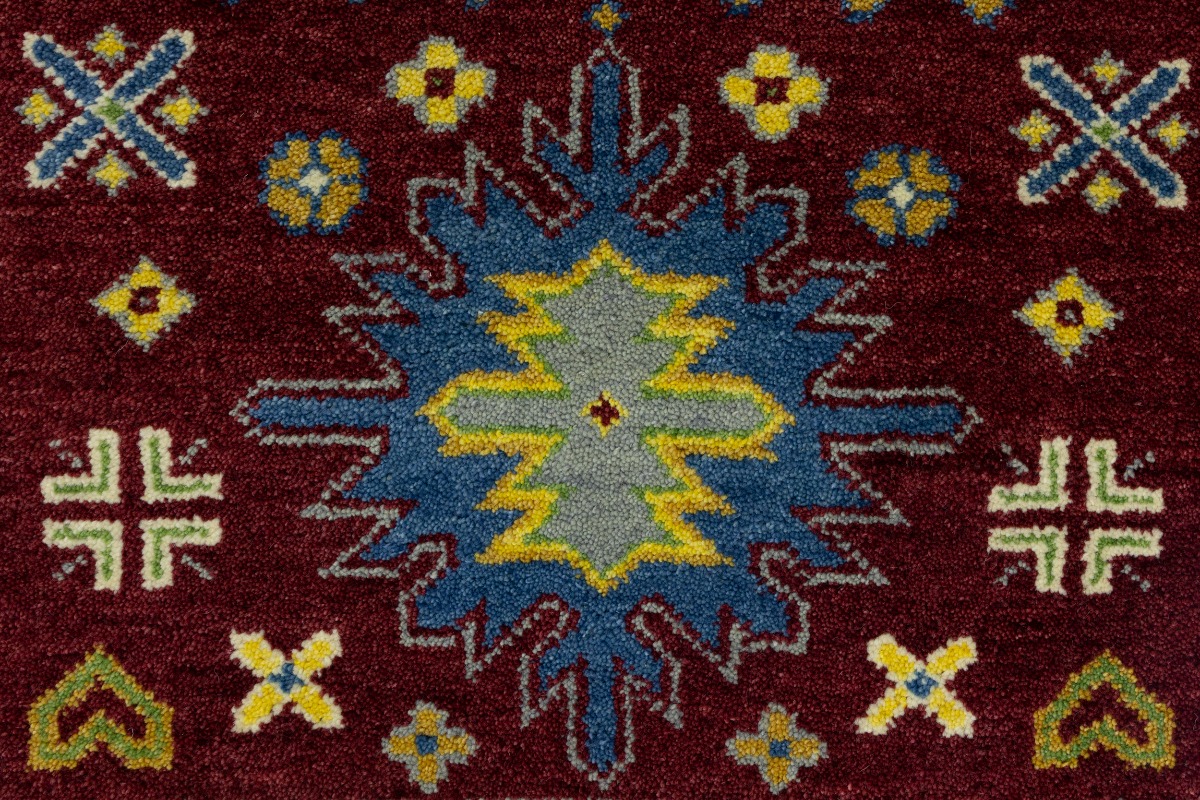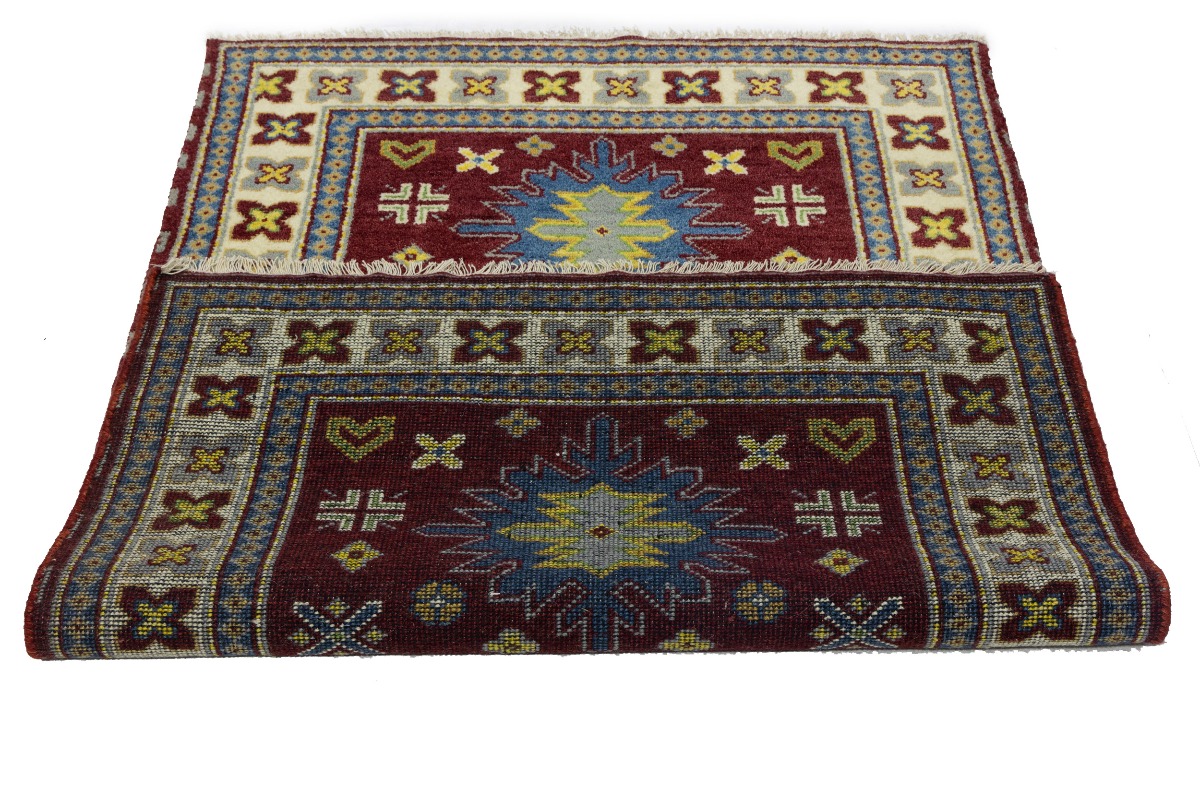 Maroon Red Geometric 4X6 Kazak Oriental Rug