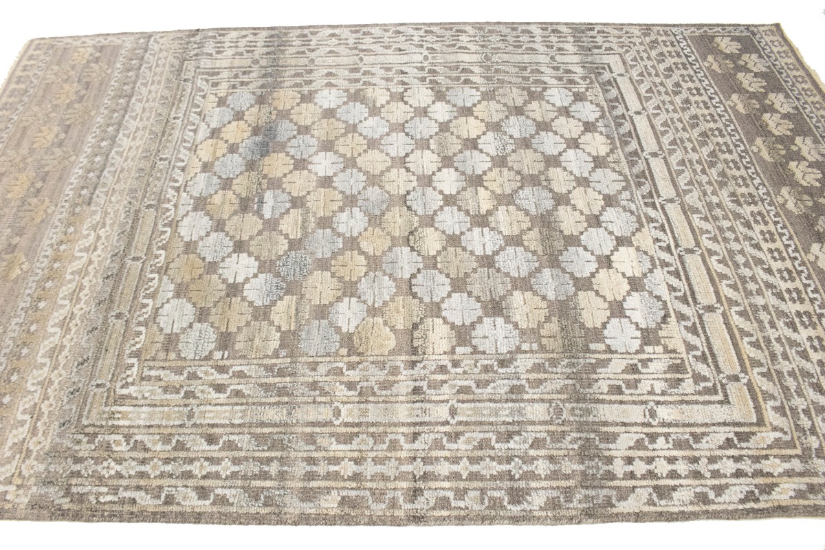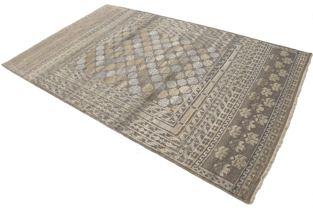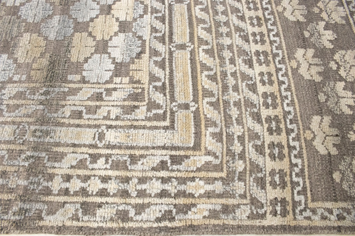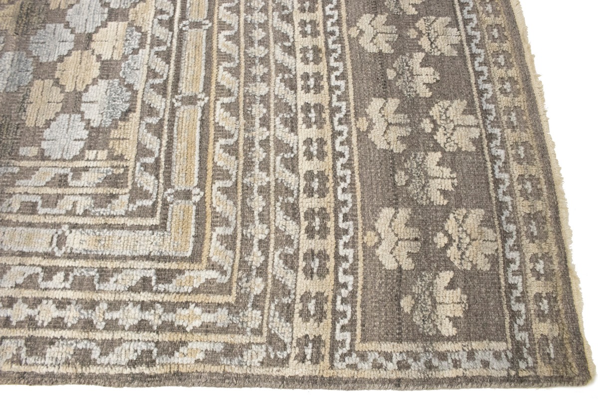Handmade 6X9 brown Oriental rug made with vegetable dyes (fine wool pile and cotton foundation), exceptional knot count, and alluring ancient designs. This Oriental rug never will go out of style and would be among your most valuable treasures.