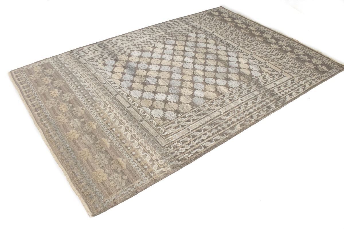 This original 6X9 brown new Oriental rug was made by the hands of talented weavers influenced by a variety of gorgeous symmetrical artistic designs, to recreate the aged look of the unique piece with a richness of color and very balanced background field. What set this vintage style Oriental area rug from the others are the material and dye used (wool pile and cotton foundation), knot count, antique designs, fantastic grades, and its regional historical connection: it has deep roots, from the story of the people who produced it to the meaning of the symbols and colors displayed across its canvas that have been praised for centuries. This Indian home décor carpet will be completely cozy and inviting that never will go out of style! Also, this Oriental rug would be among your most valuable treasures, it is a great investment that accrues value over time, and it will last a lifetime because was woven with high-quality, all-natural wool. Eco-friendly, opulent yet affordable; this rug will give you an extra pop of character to help define your home environment with sophistication and warmth that will capture the eyes and attention of your audience (homeowners, designers, decorators, family and friends). OT-6819