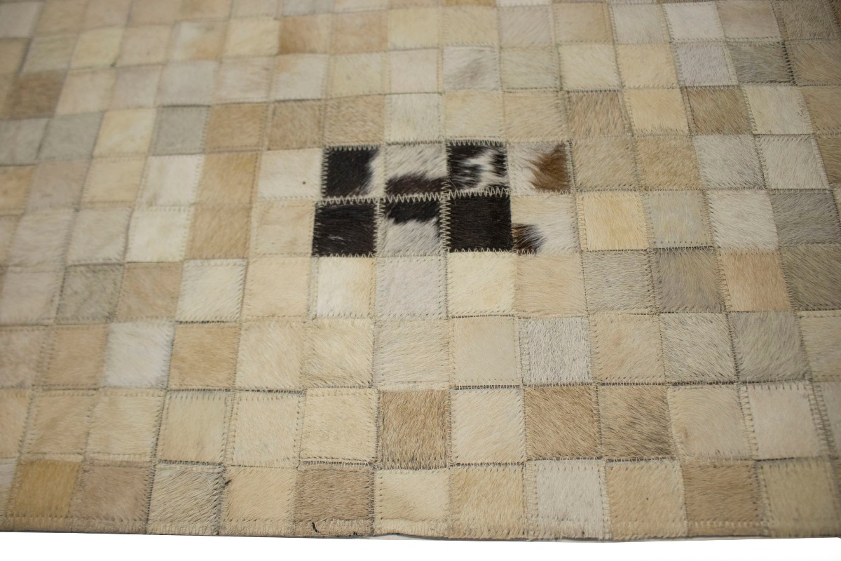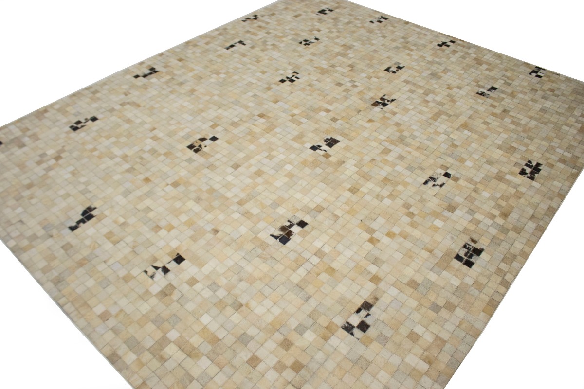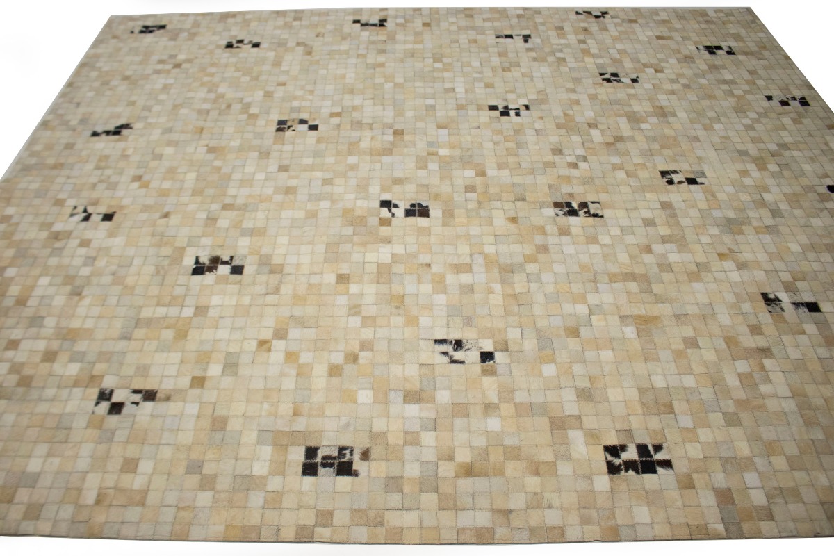 Multi Beige Brown Cowhide 8X10 Modern Leather Rug