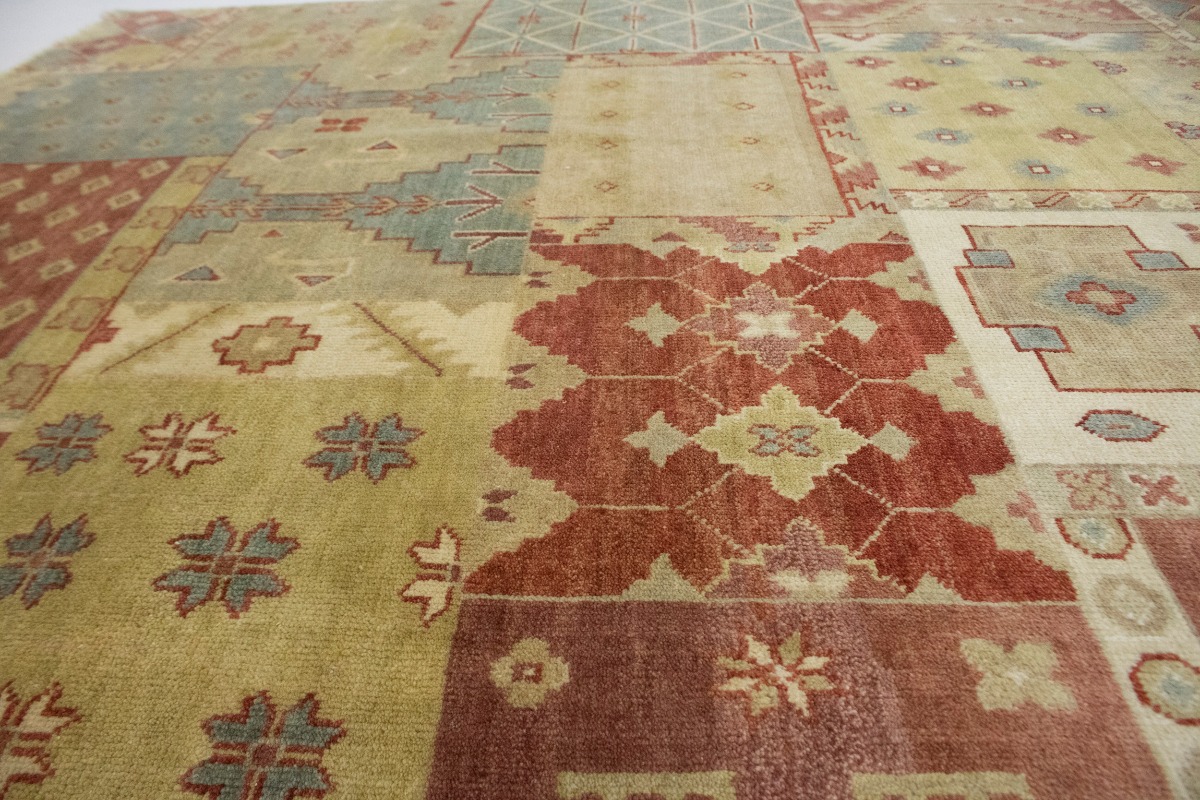 Also, this Geometric Hand-Knotted Oriental rug would be among your most valuable treasures, it is a great investment that increase in value over time, and it will last for generations because was woven with high-quality 100% Wool. Environmentally friendly, opulent yet affordable; this Recently Made Wonderful Patchwork rug will give you a thorough amount of character to help define your living space with sophistication and warmth that will capture the eyes and attention of your audience (homeowners, designers, decorators, family and friends).