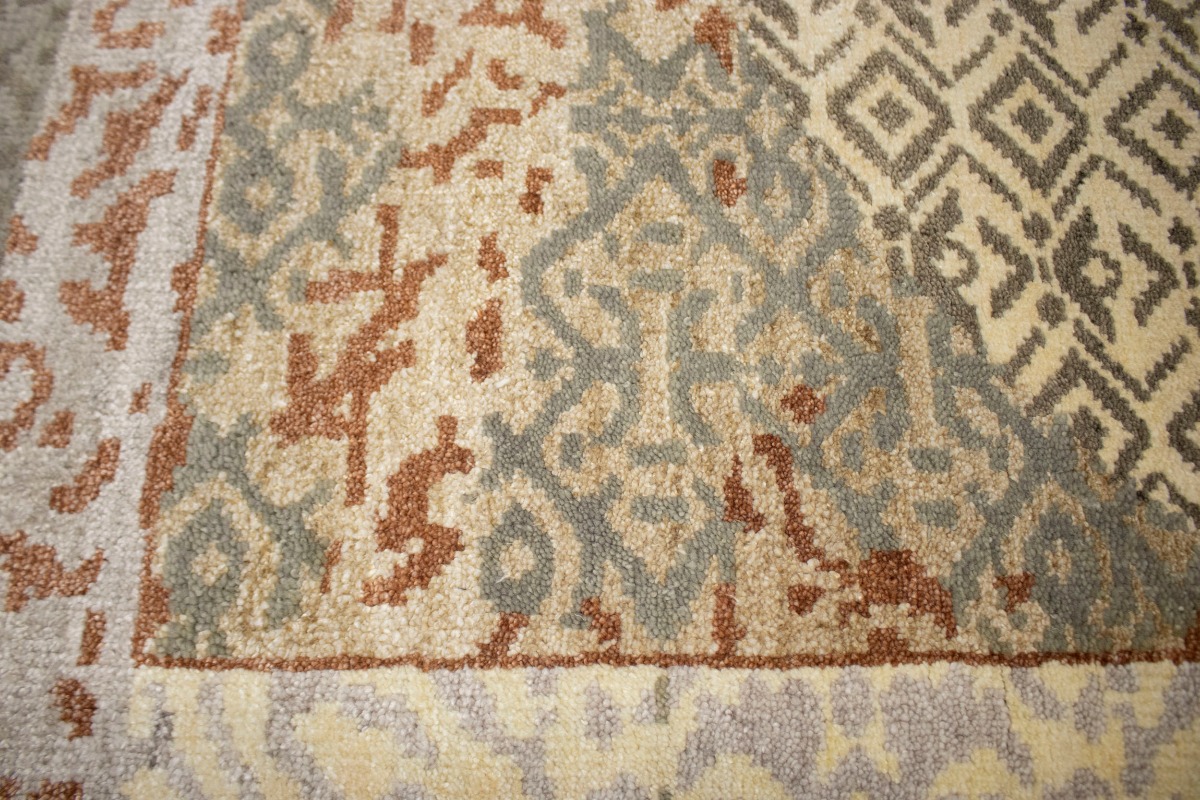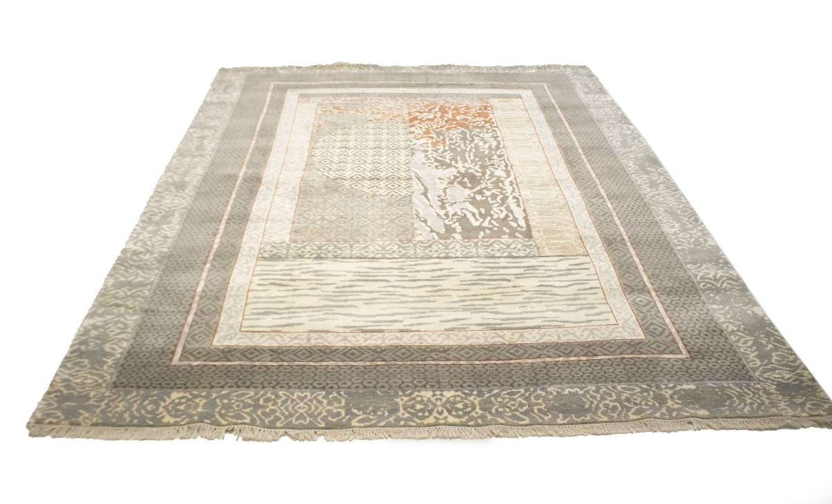 This original 8X10 tan new Oriental rug was made by the hands of talented weavers influenced by a variety of gorgeous symmetrical artistic designs, to recreate the aged look of the unique piece with a richness of color and very balanced background field. What set this vintage style Oriental area rug from the others are the material and dye used (wool pile and cotton foundation), knot count, antique designs, fantastic grades, and its regional historical connection: it has deep roots, from the story of the people who produced it to the meaning of the symbols and colors displayed across its canvas that have been praised for centuries. This Indian home décor carpet will be completely cozy and inviting that never will go out of style! Also, this Oriental rug would be among your most valuable treasures, it is a great investment that accrues value over time, and it will last a lifetime because was woven with high-quality, all-natural wool. Eco-friendly, opulent yet affordable; this rug will give you an extra pop of character to help define your home environment with sophistication and warmth that will capture the eyes and attention of your audience (homeowners, designers, decorators, family and friends). OT-4041