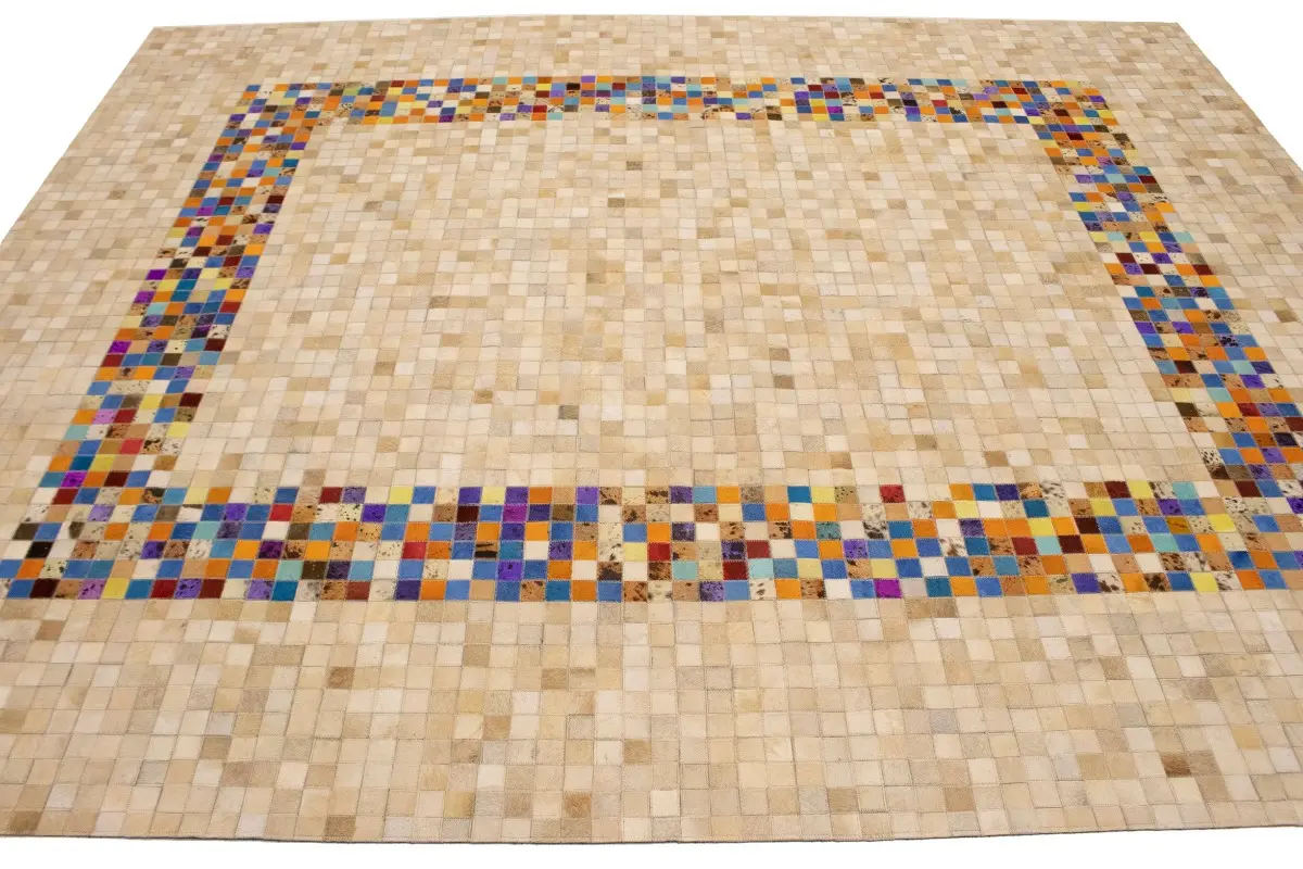 Multicolored Modern Leather Rug Large 8X10 Contemporary Cowhide Decor Carpet