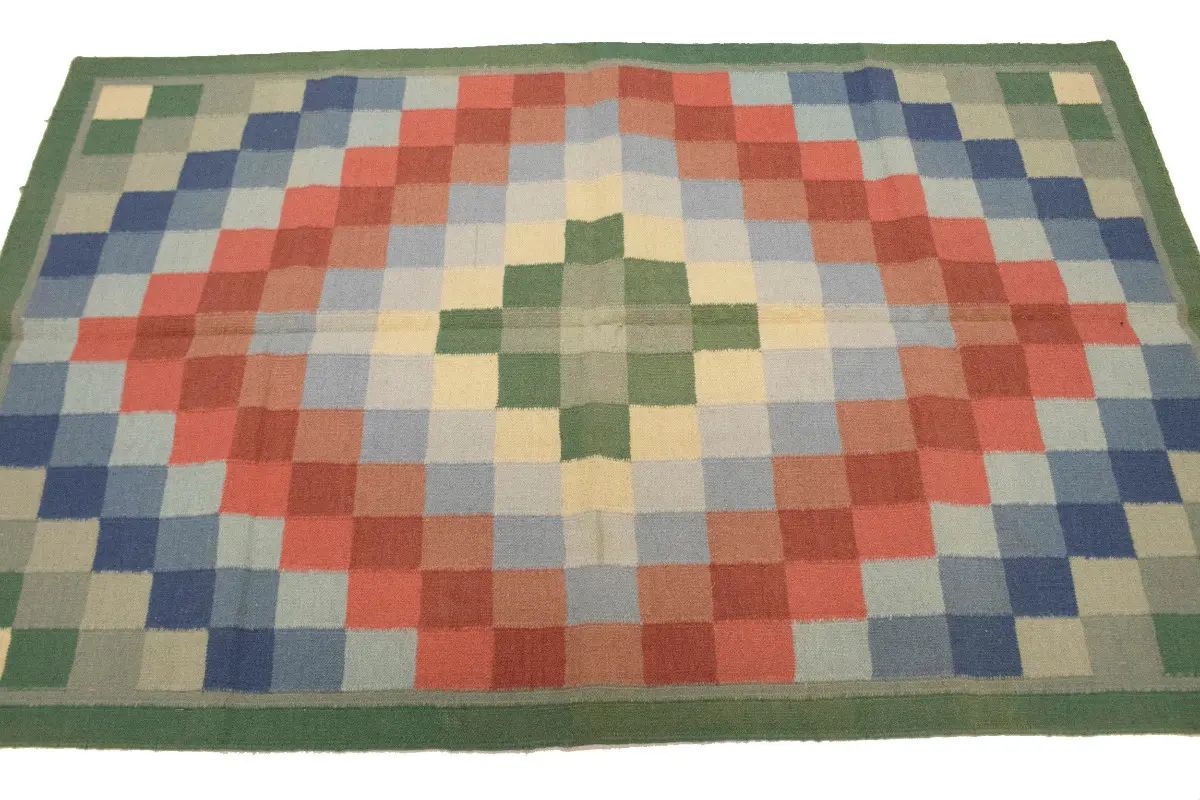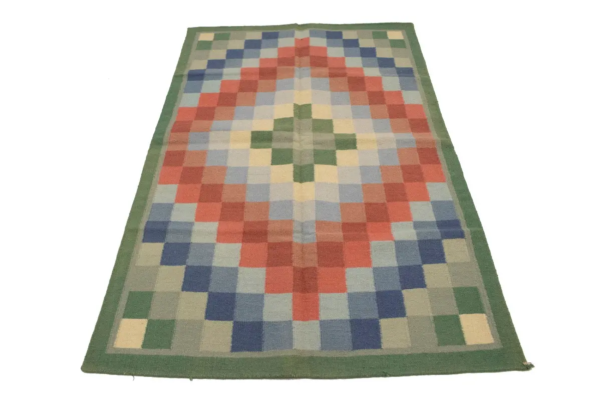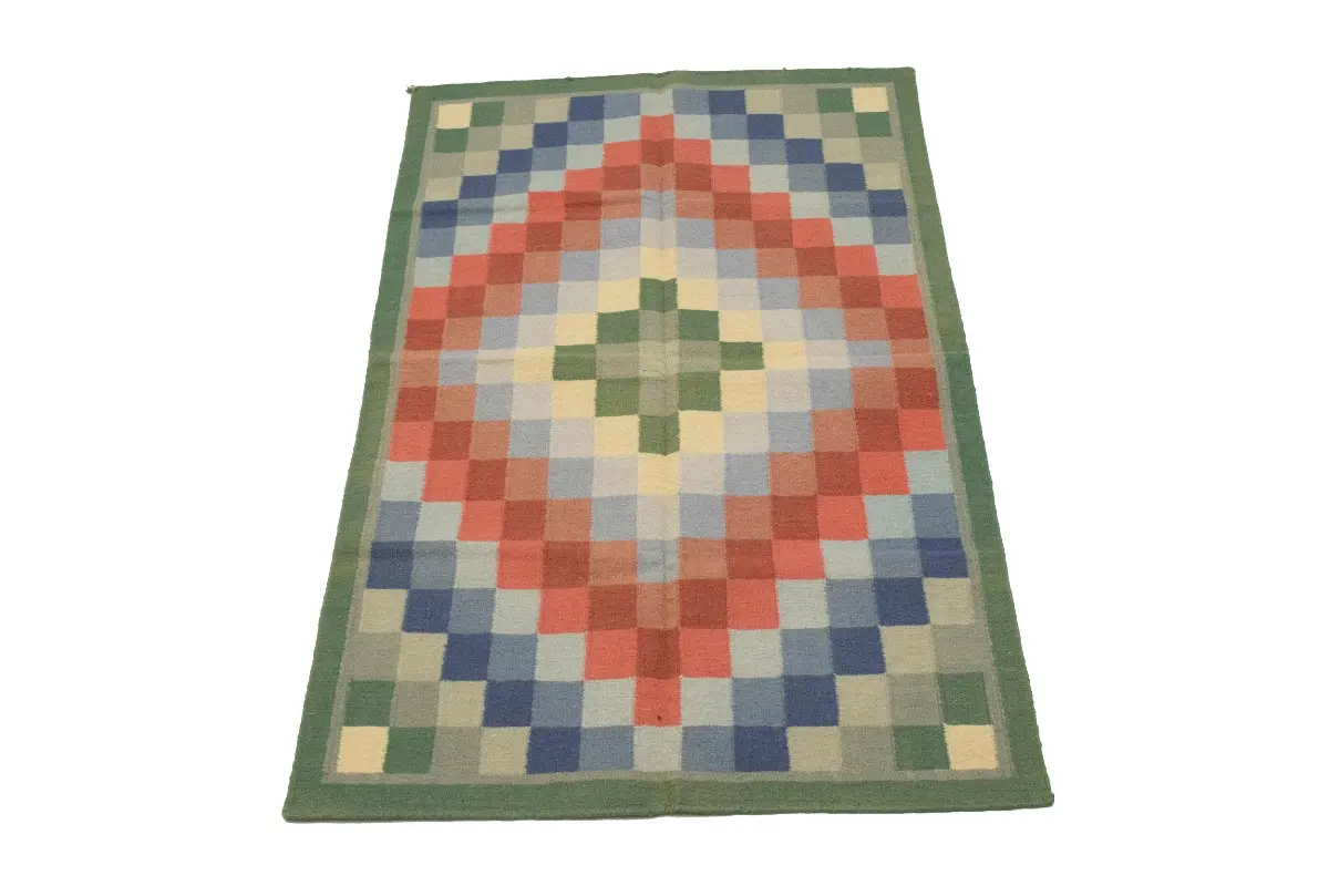 Multicolored Geometric Dhurrie 4X6 Indian Oriental Rug