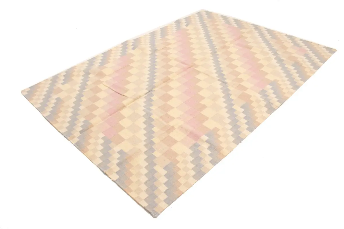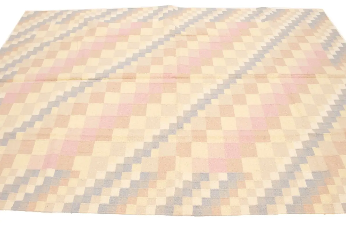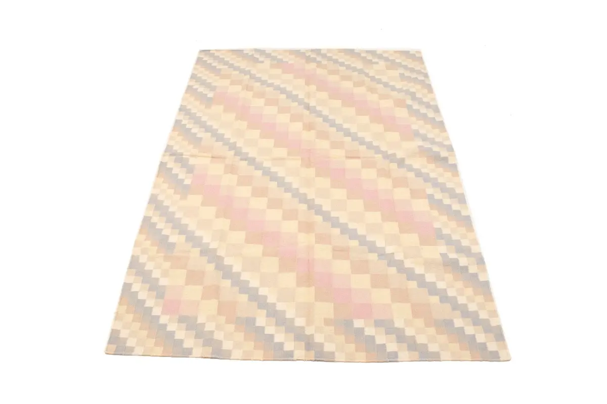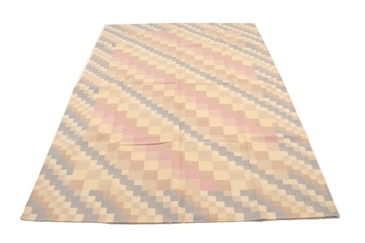 Multicolored Geometric Dhurrie 5'8X8'4 Indian Oriental Rug