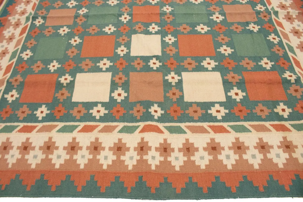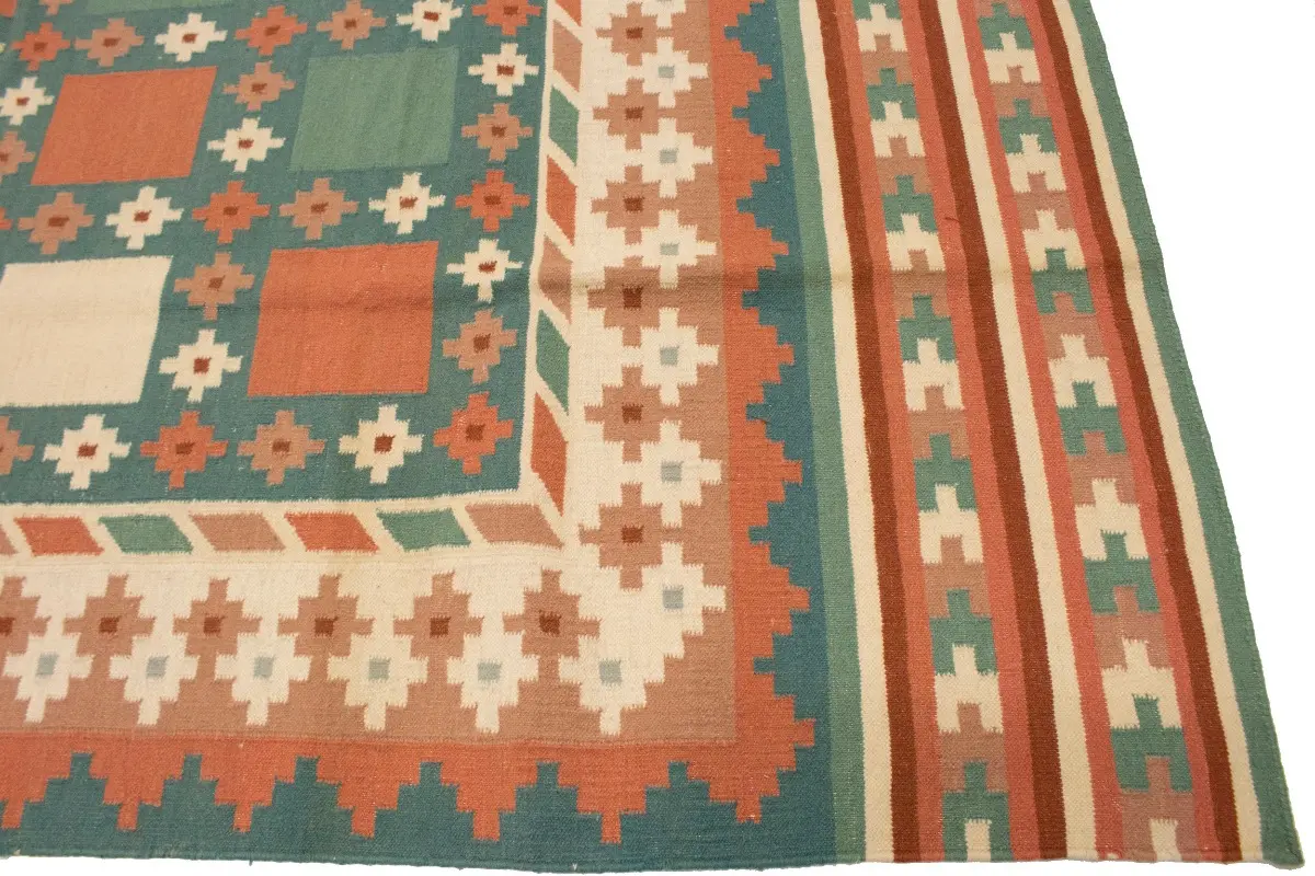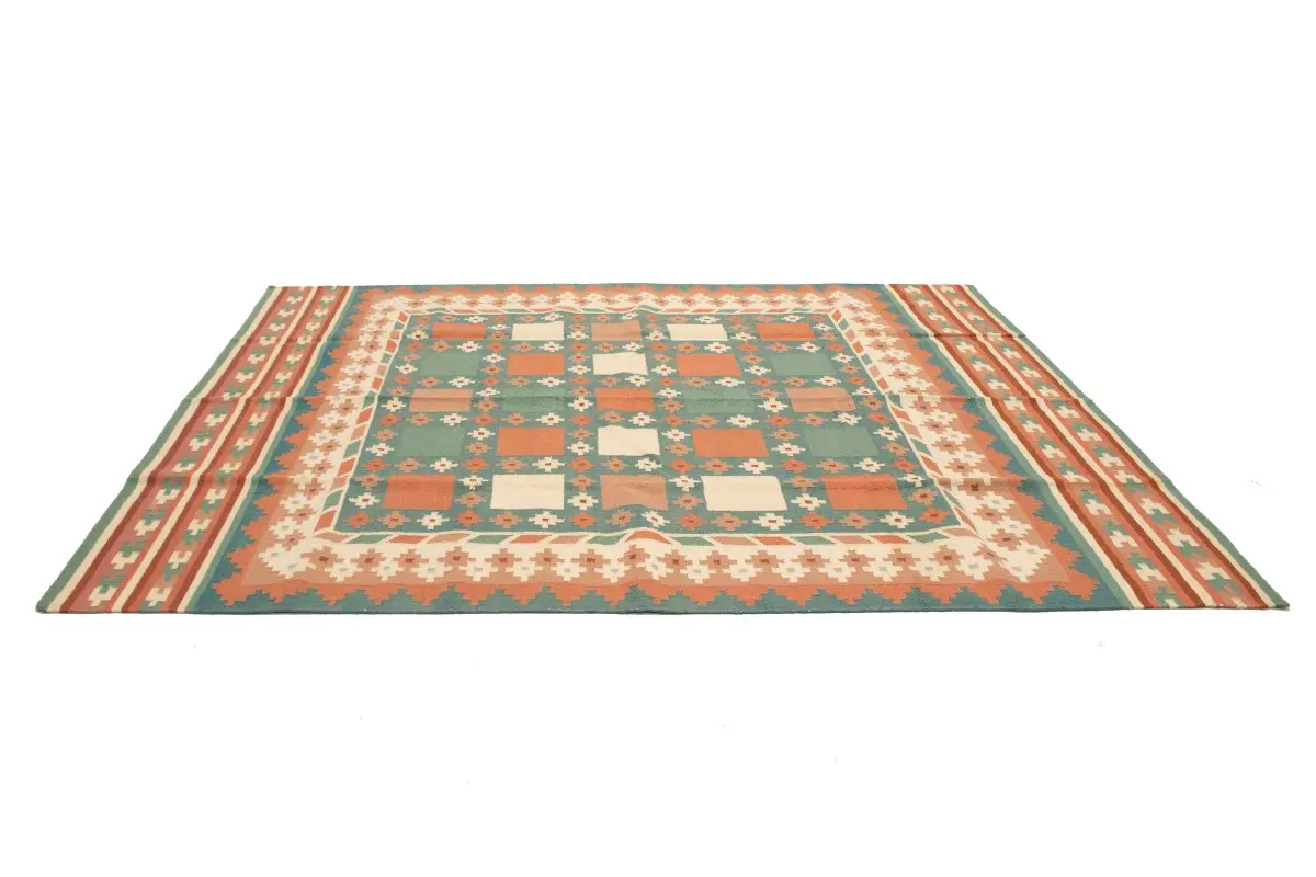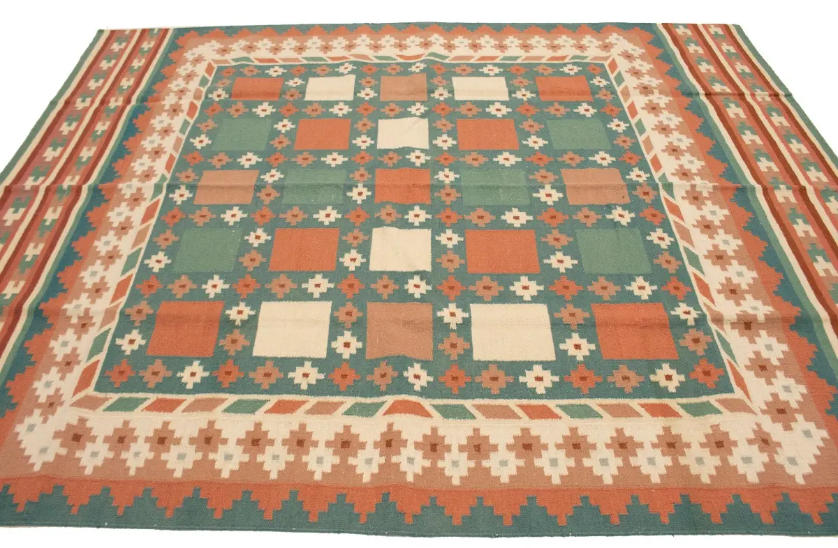 Multicolored Geometric Dhurrie 7'5X9'4 Indian Oriental Rug