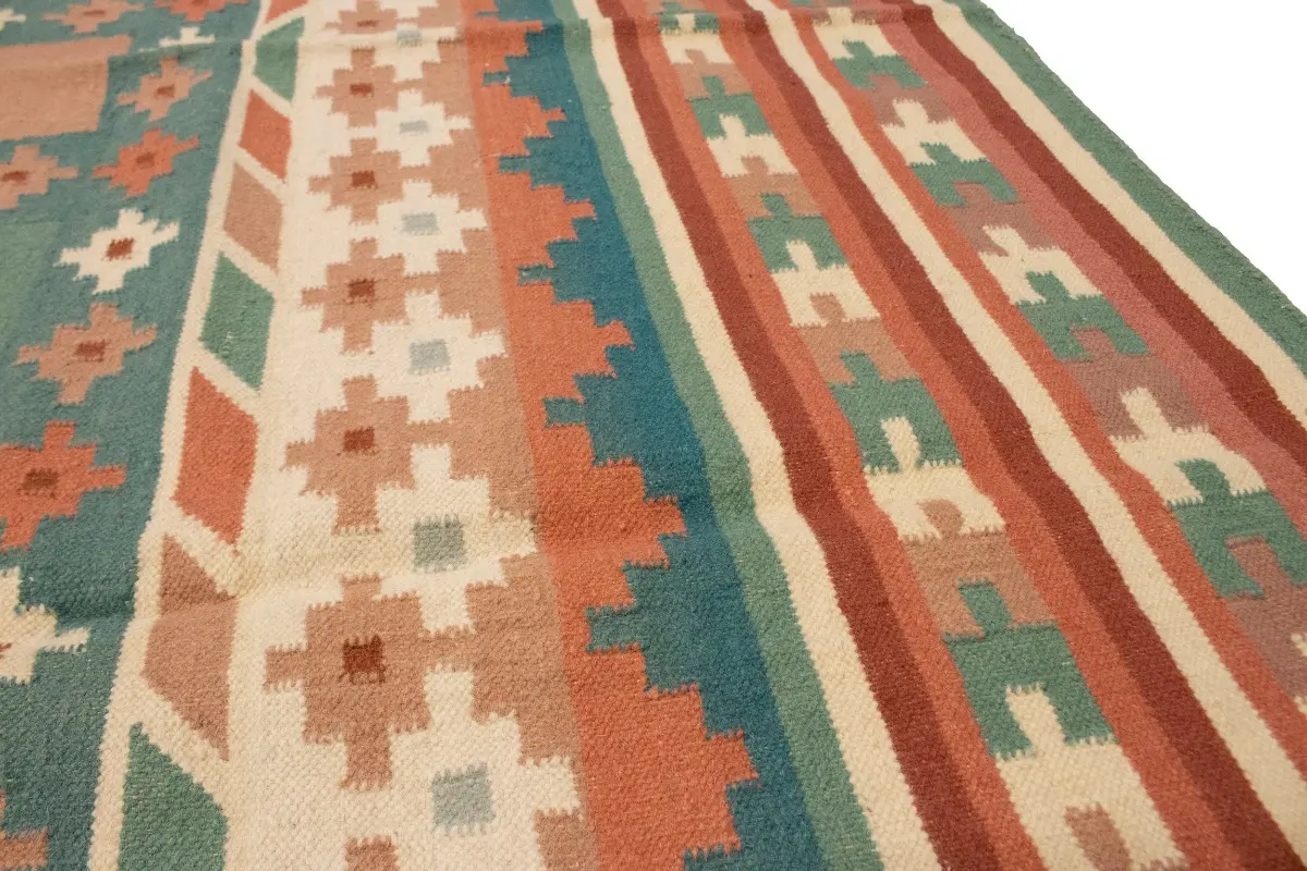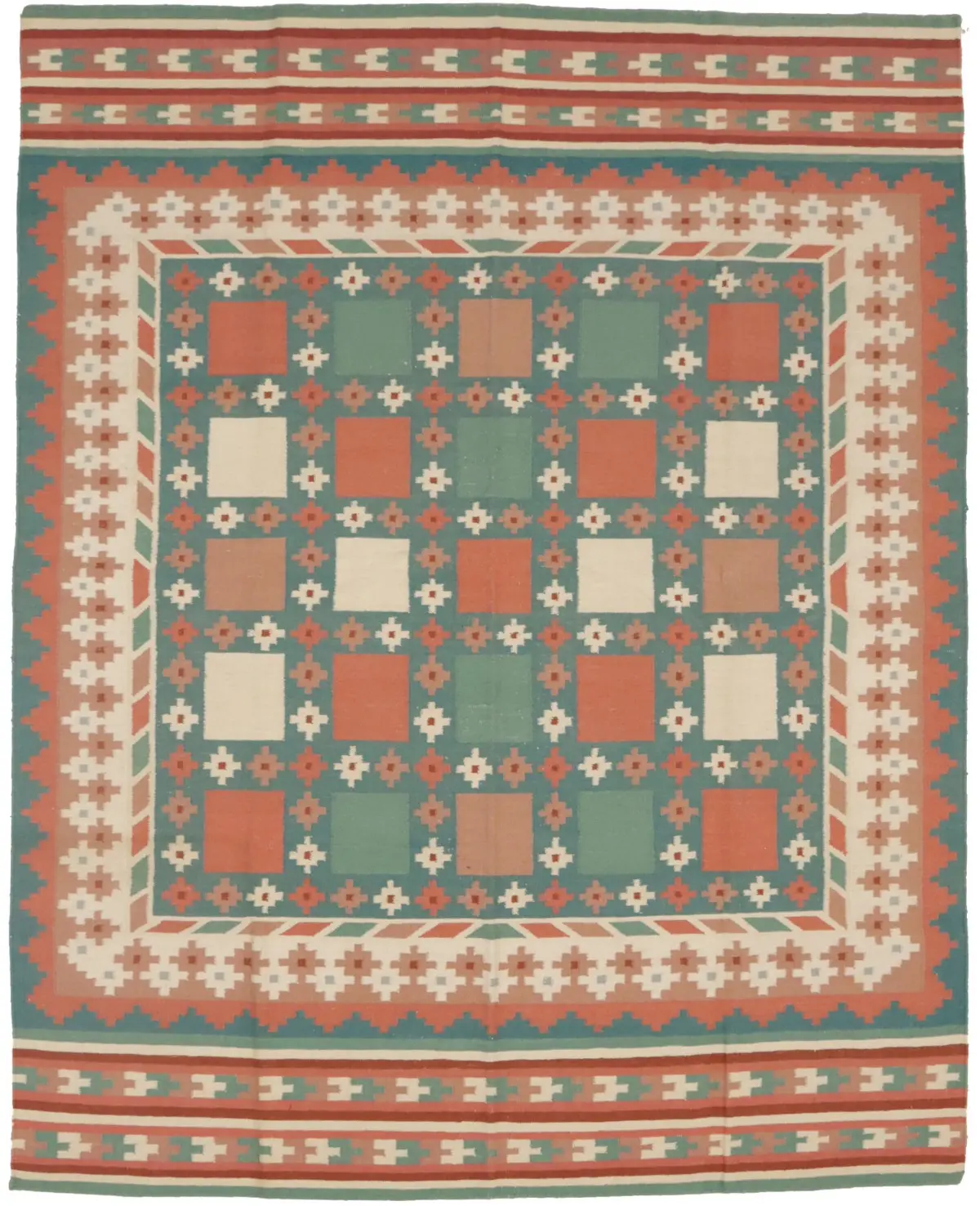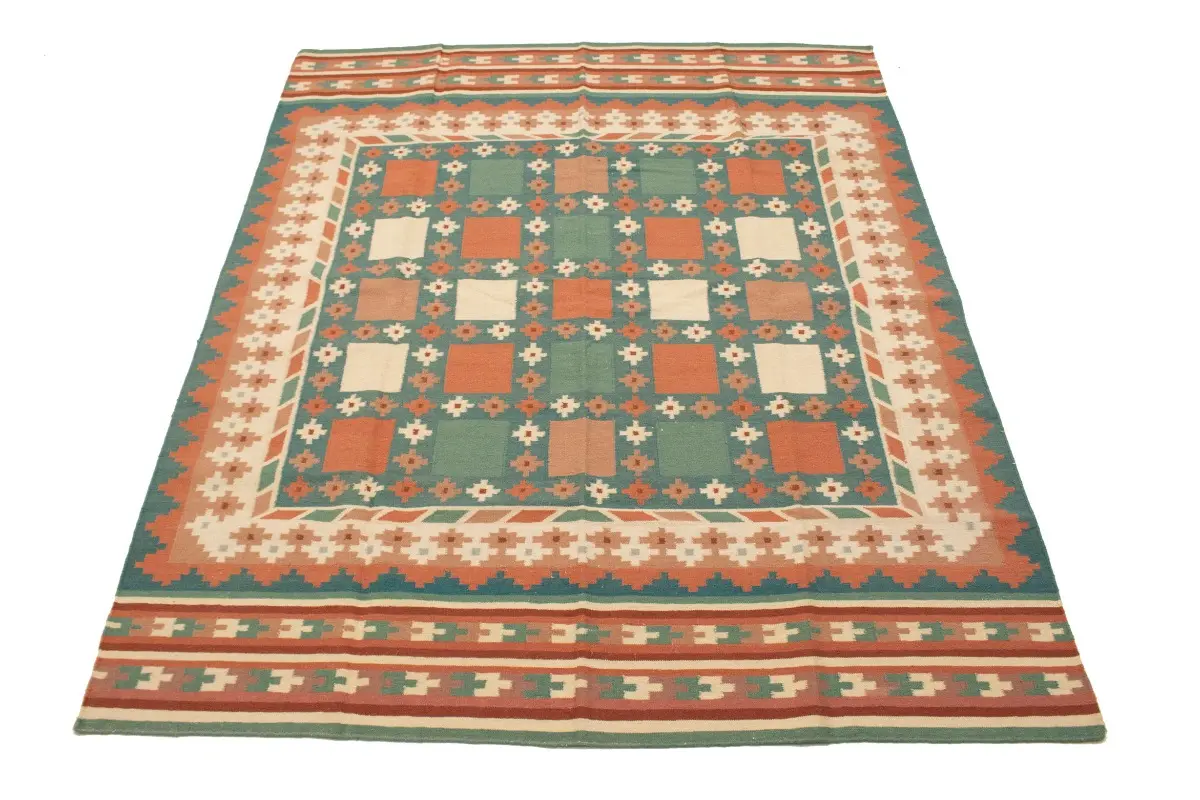 Multicolored Geometric Dhurrie 7'5X9'4 Indian Oriental Rug
