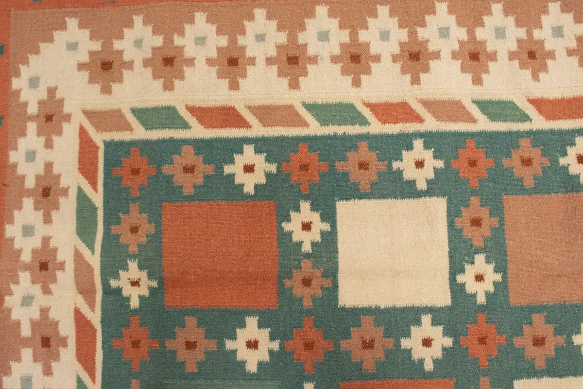 Hand-Woven 7'5X9'4 teal Oriental rug made with natural dyes (fine wool pile and cotton foundation), superior knot count, and appealing ancient designs. This Oriental rug never will go out of style and would be among your most valuable treasures.
