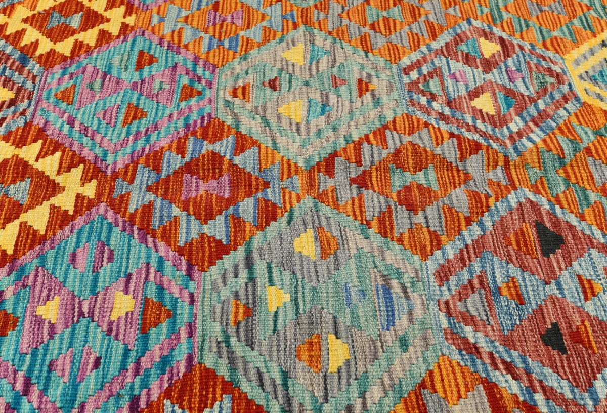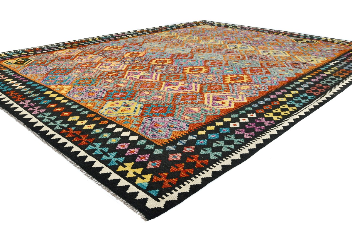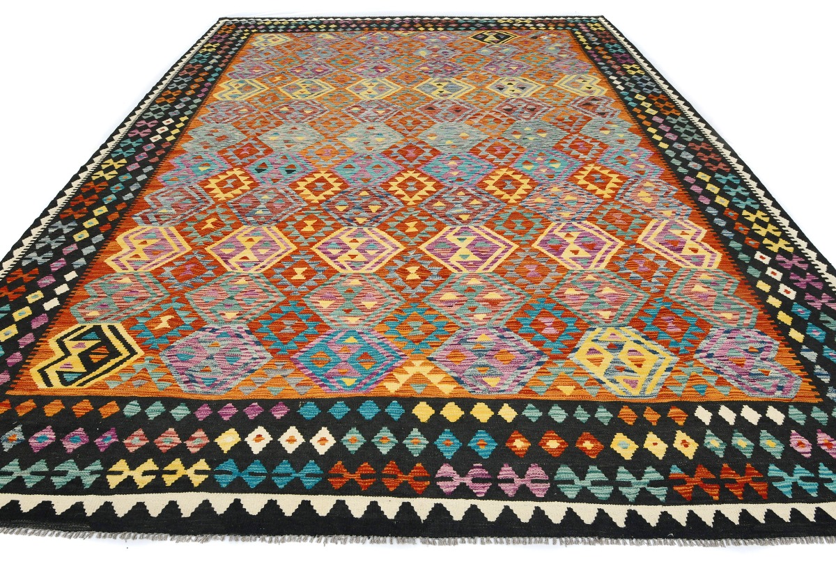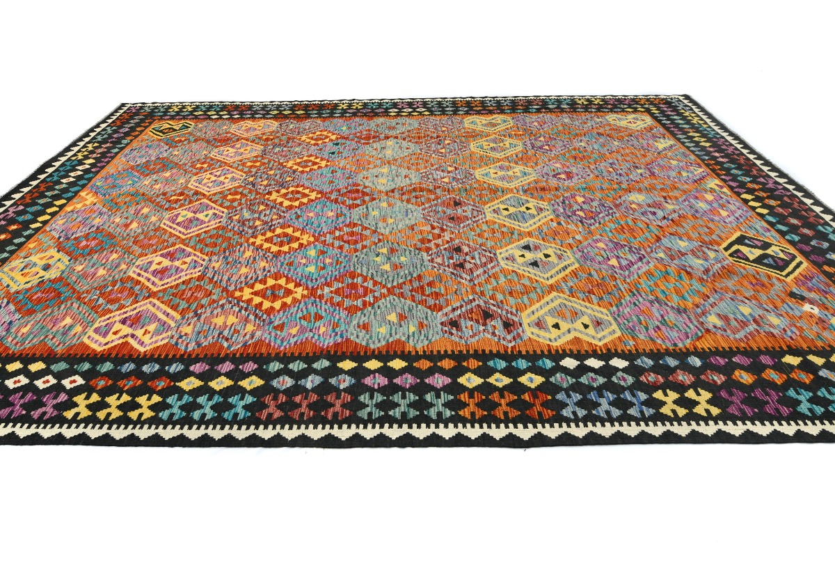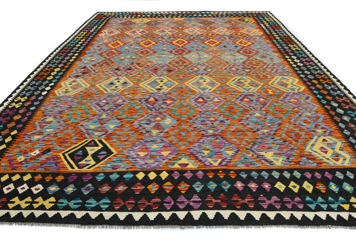 Multicolored Geometric Reversible 10X13 Kilim Oriental Rug