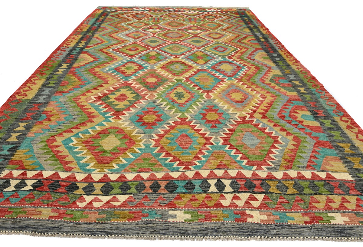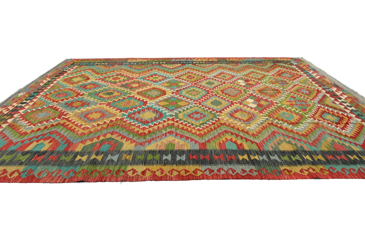 Multicolored Geometric Reversible 11X16 Kilim Oriental Rug